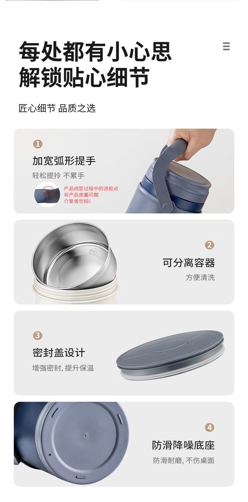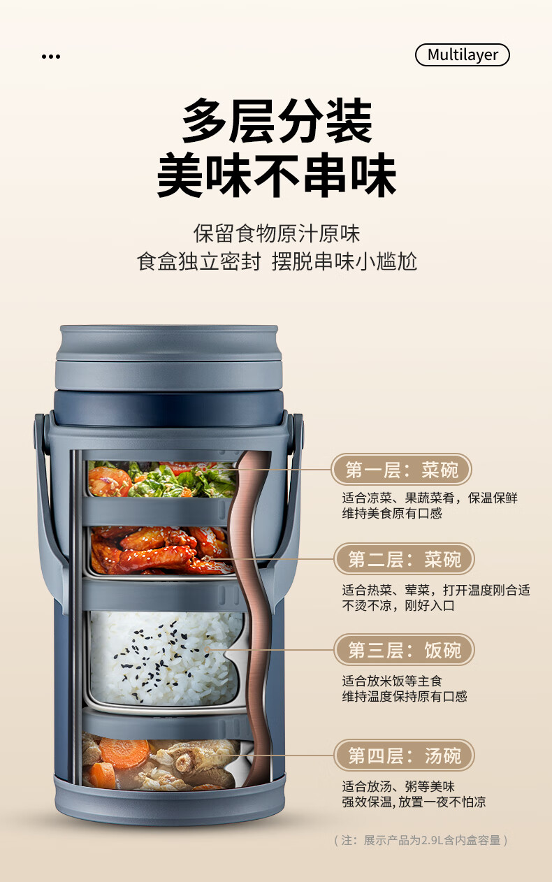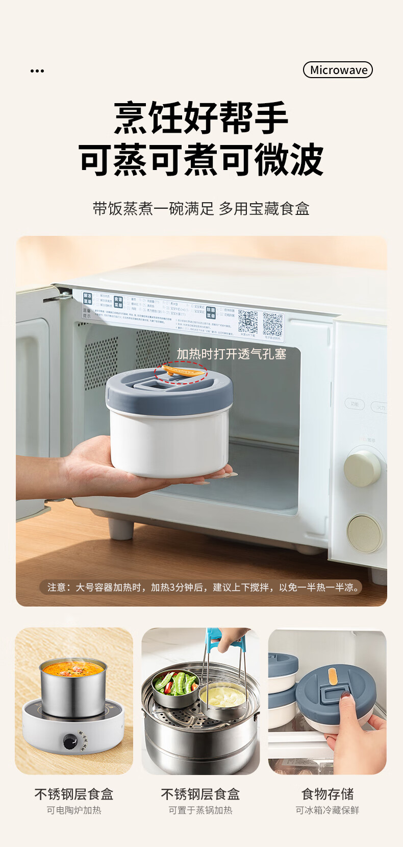 泰福高(TAFUCO)保温饭盒316不锈钢学生便携保温桶上班族大容量便当盒食品级T0290