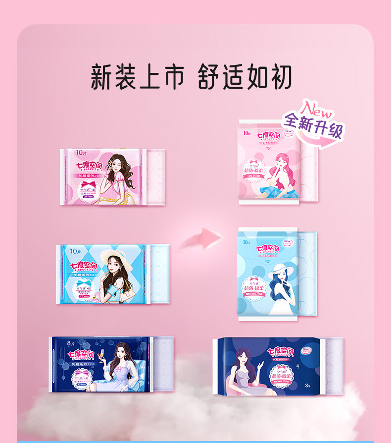 七度空间卫生巾日夜用套装优雅棉柔组合姨妈巾套装整箱批发 【新旧交替】优雅日夜用组合26片
