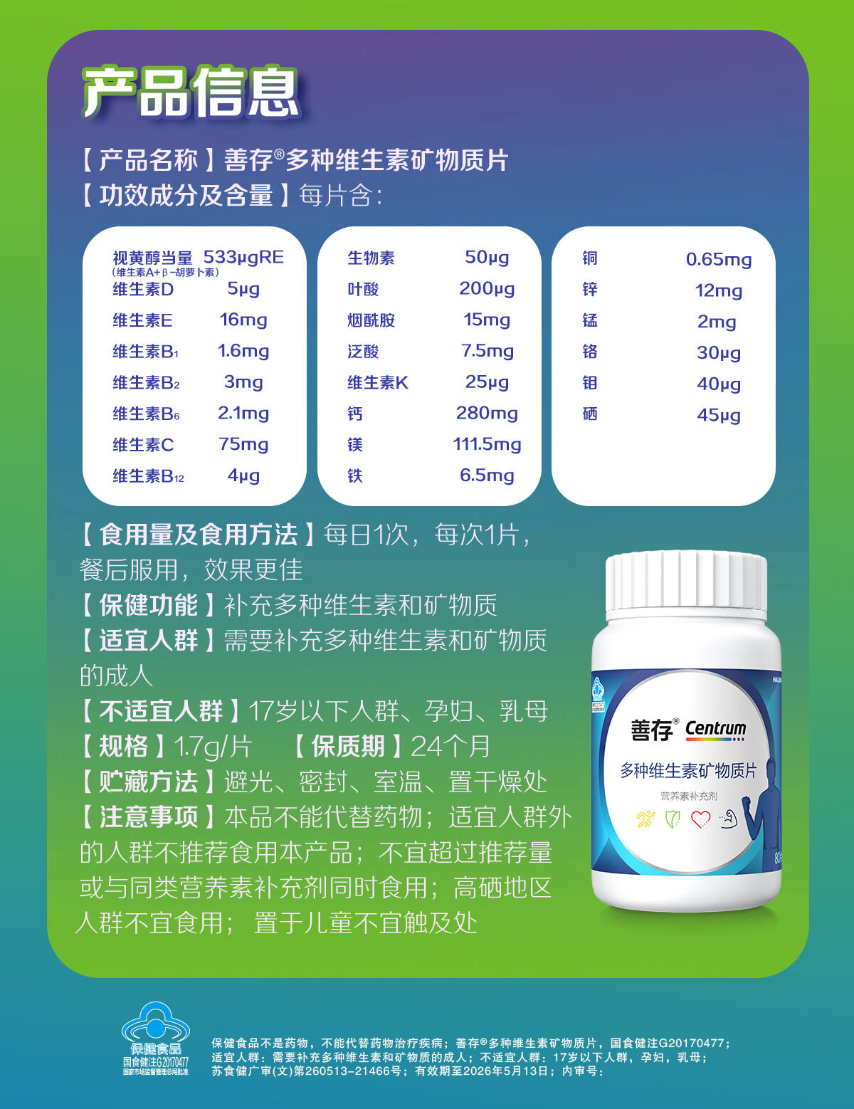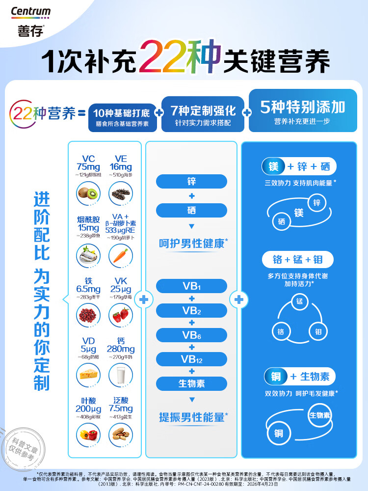 善存男士复合维生素80片维生素b维生素c维生素e补vd3锌硒22种营养