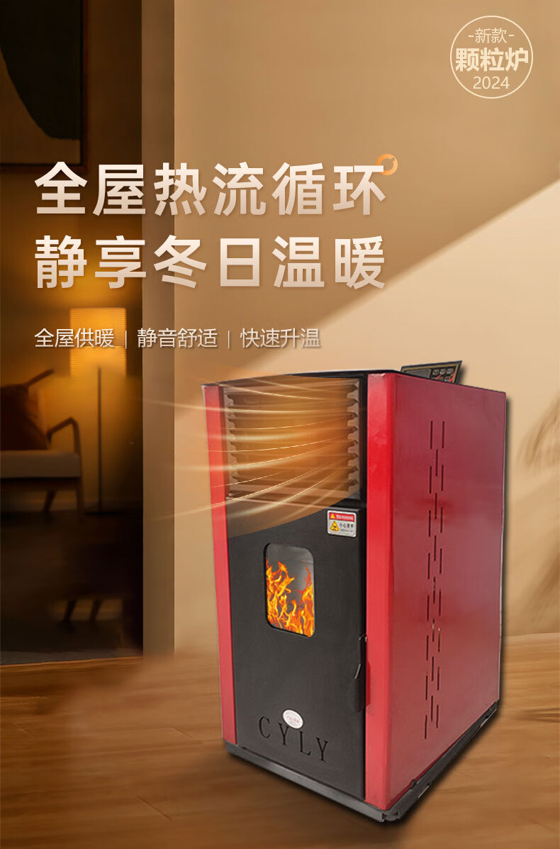 颗粒取暖炉家用商用全自动智能燃料风暖节能室内速热采暖炉无烟 2025自动除焦200型【可烧水】