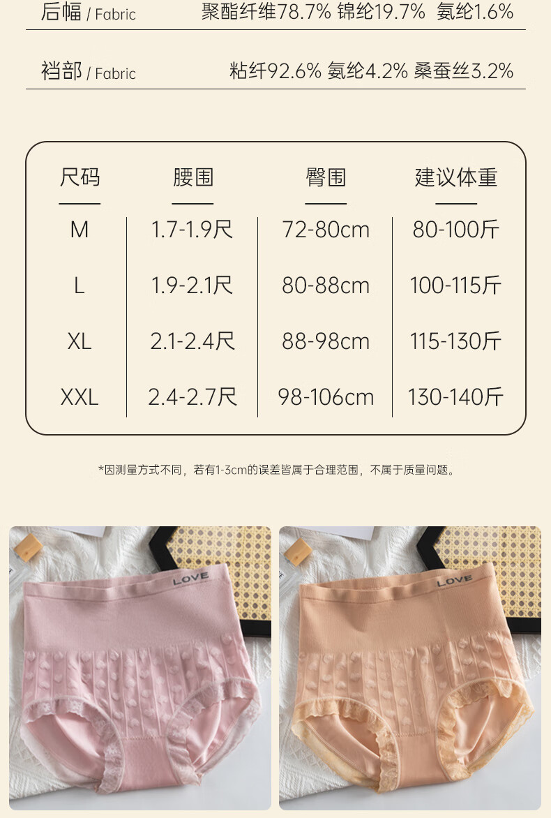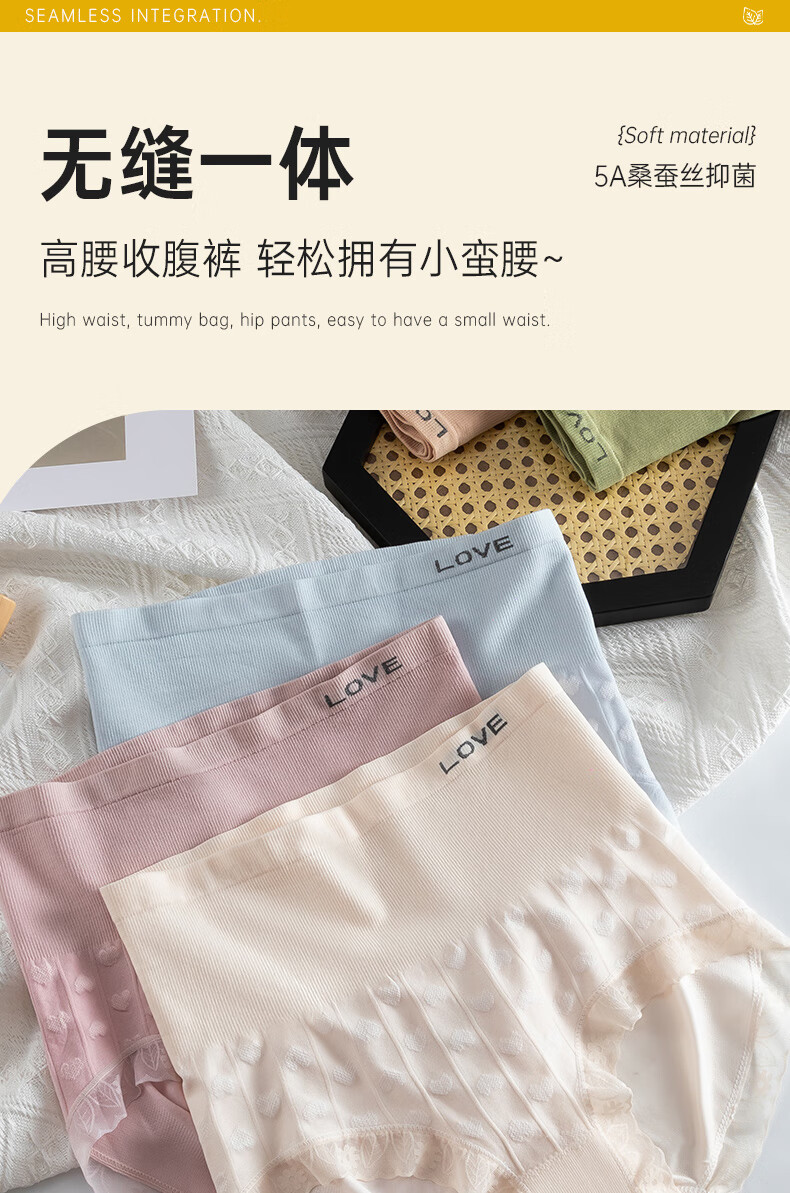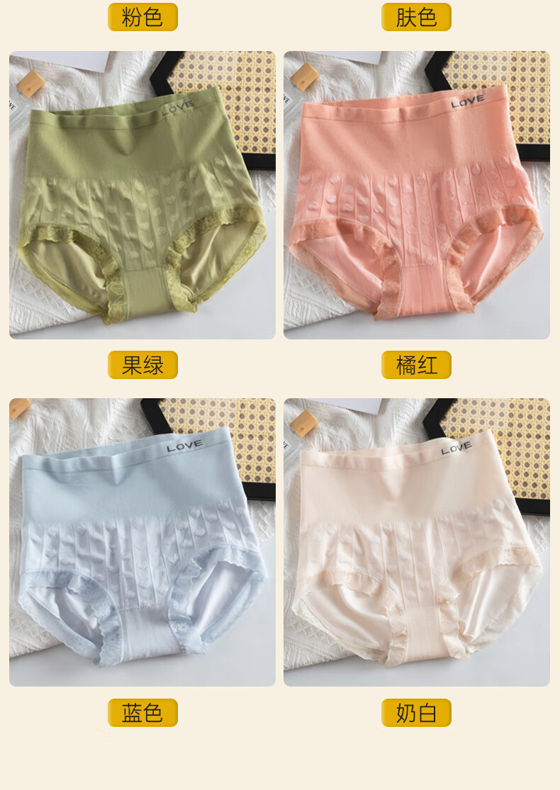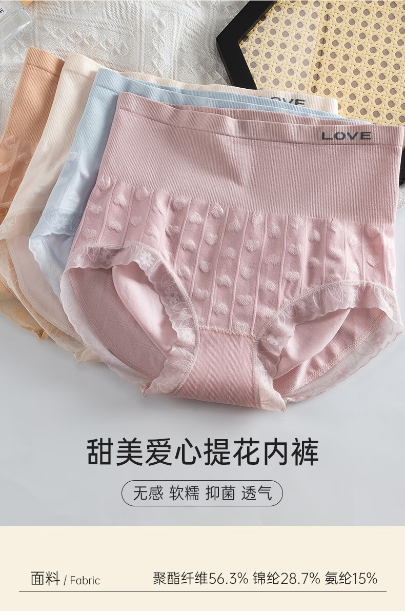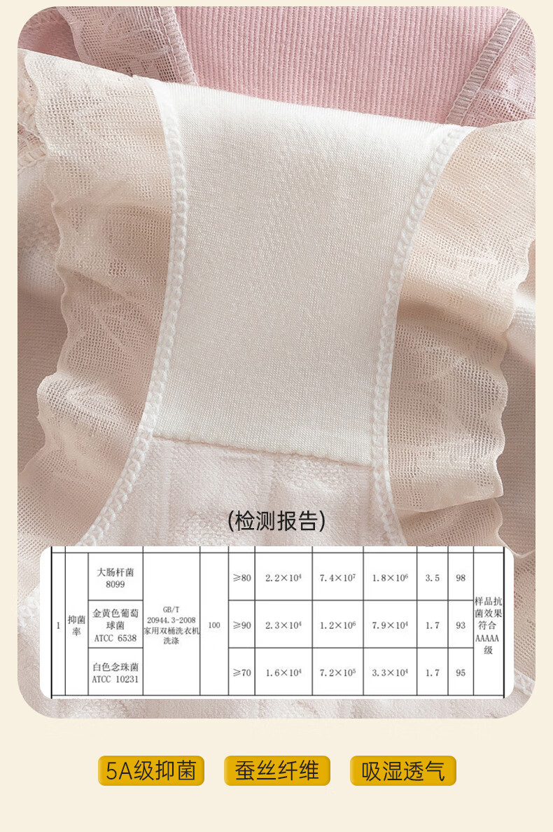 雅鹿高腰收腹内裤女士性感蕾丝内裤大码5A级桑蚕丝抑菌底裆底裤头 粉色+肤色+果绿 2XL (建议体重130-140斤)