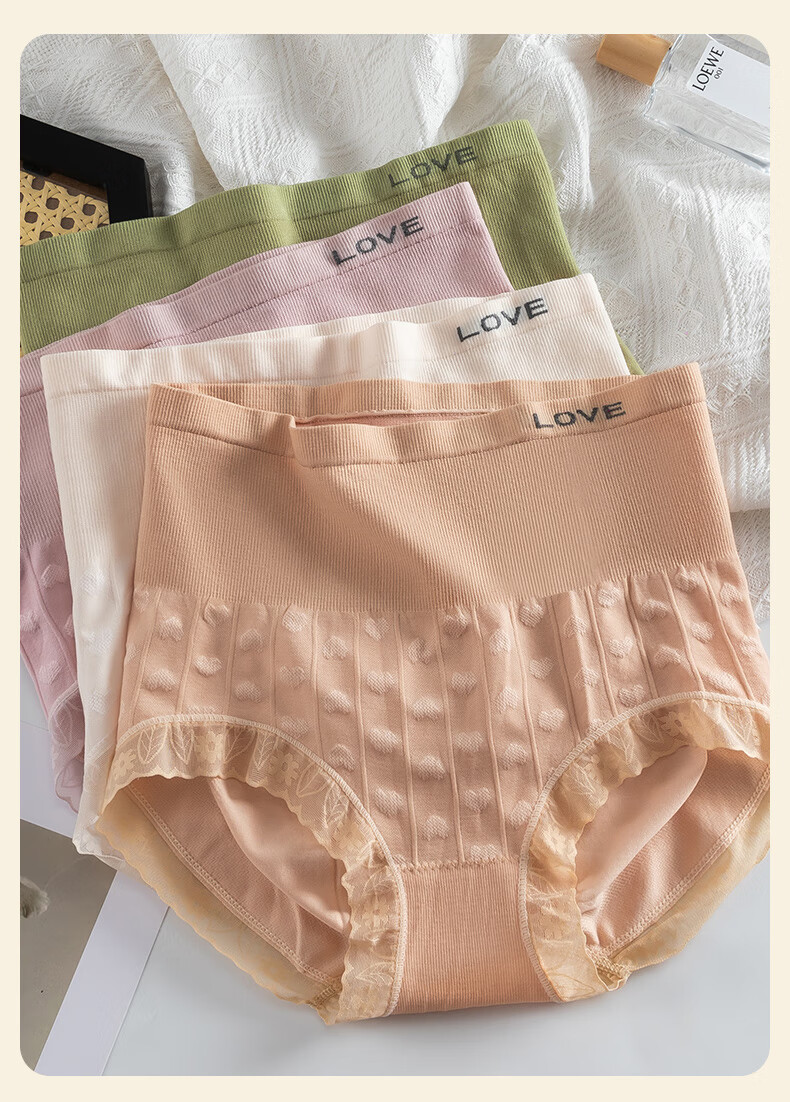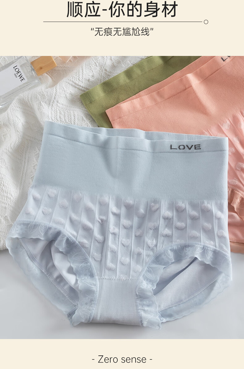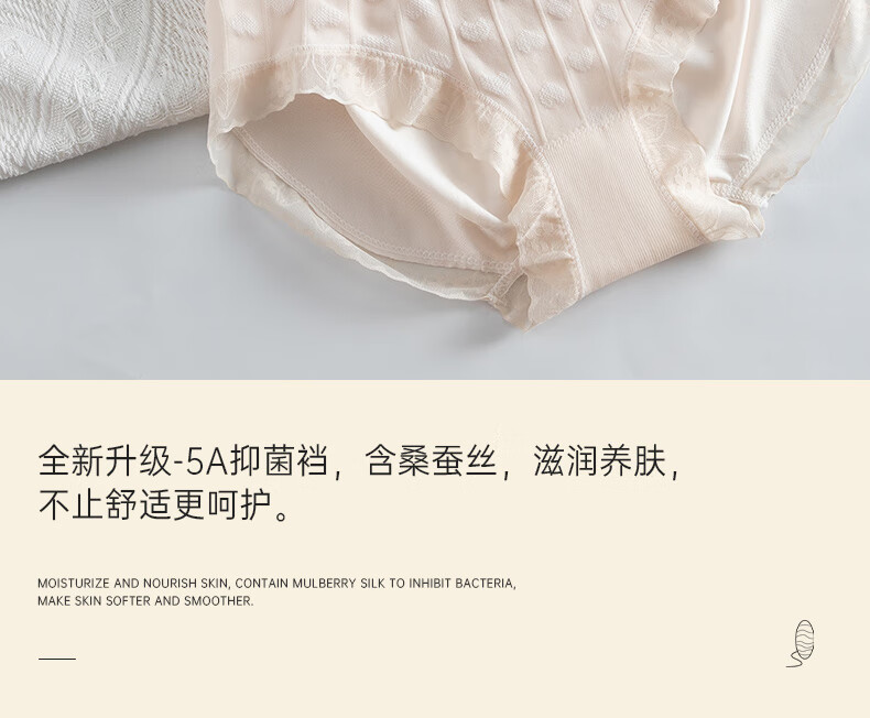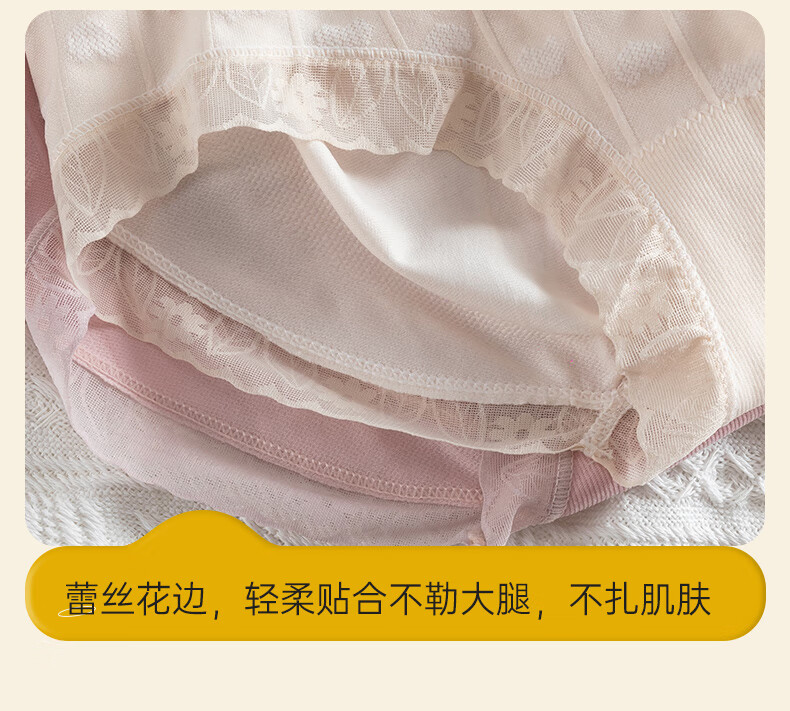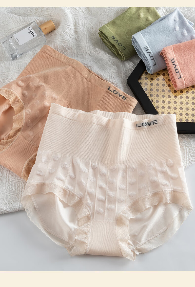 雅鹿高腰收腹内裤女士性感蕾丝内裤大码5A级桑蚕丝抑菌底裆底裤头 粉色+肤色+果绿 2XL (建议体重130-140斤)