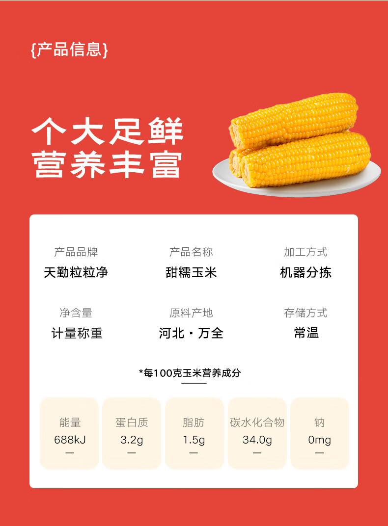 天勤粒粒净有机黄糯玉米棒10穗*200g 真空锁鲜 源头直发 一件包邮 粗粮低脂