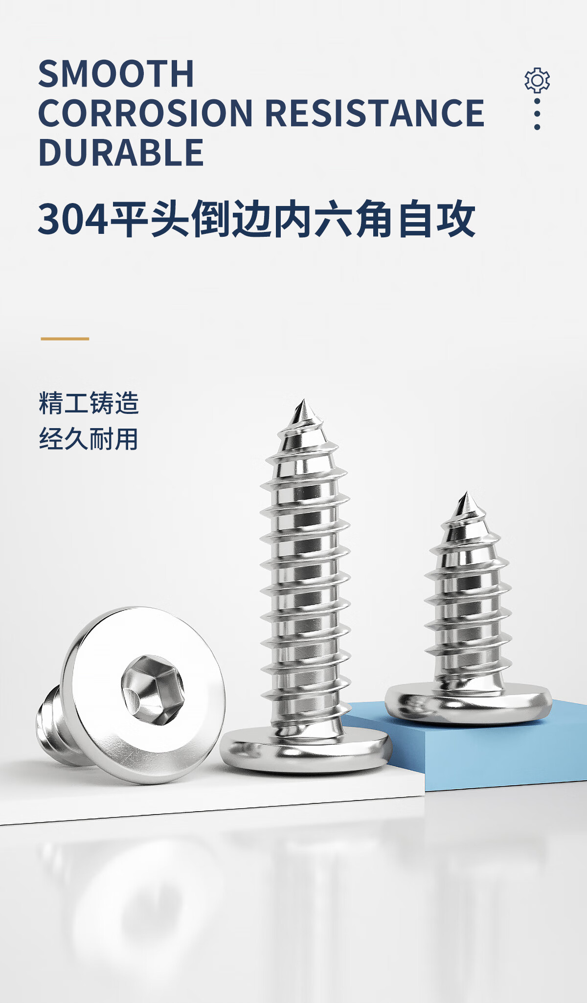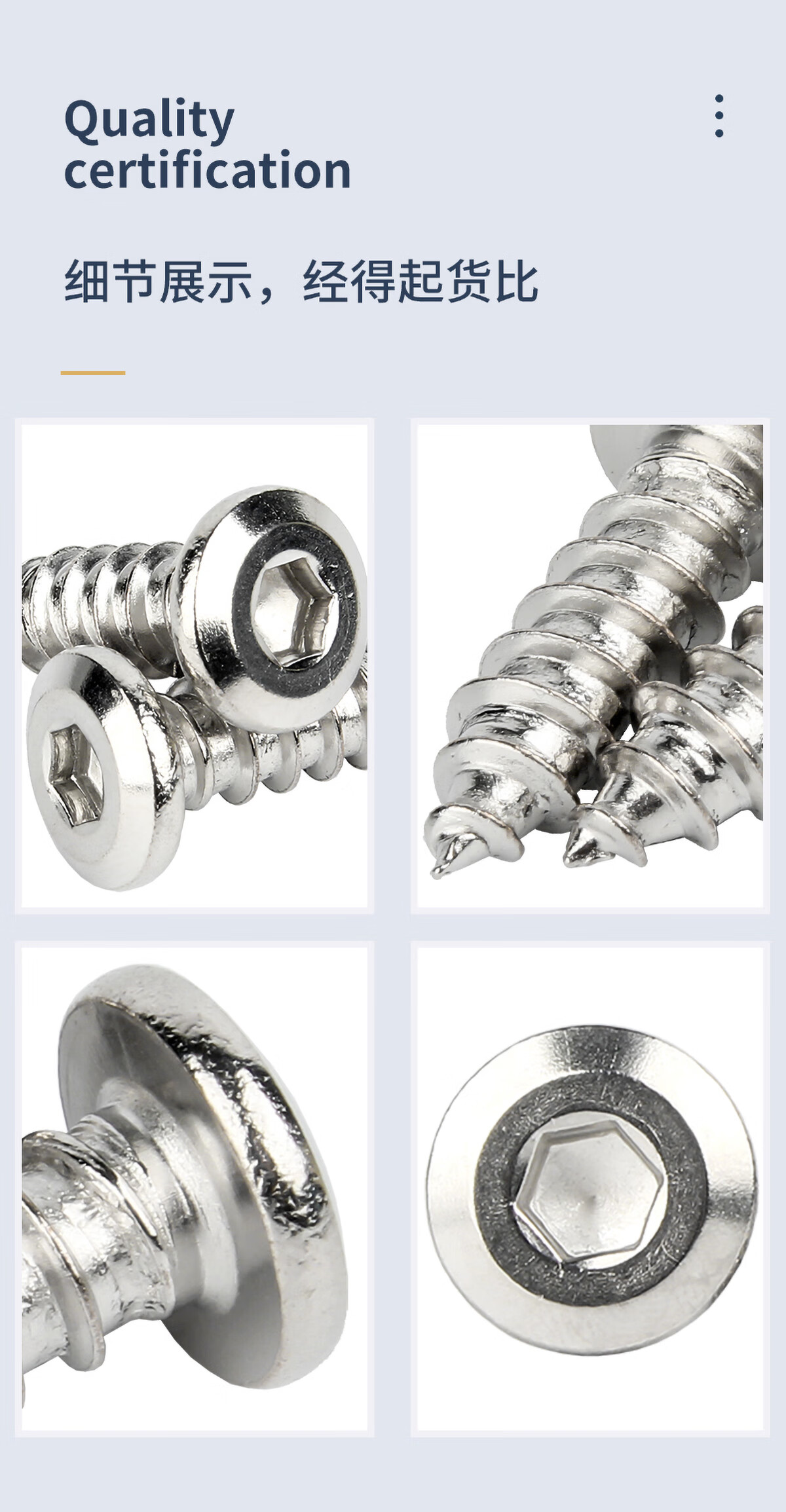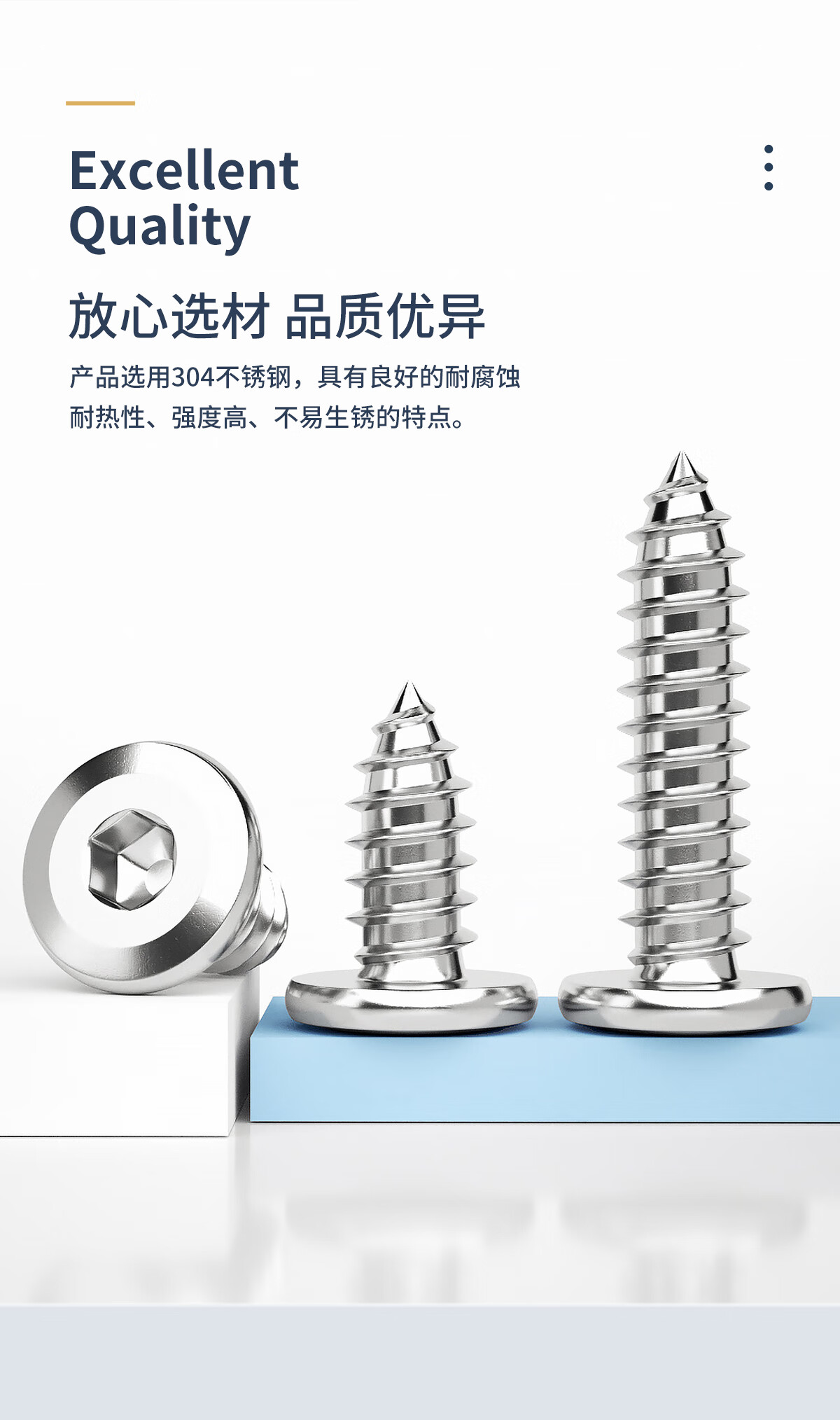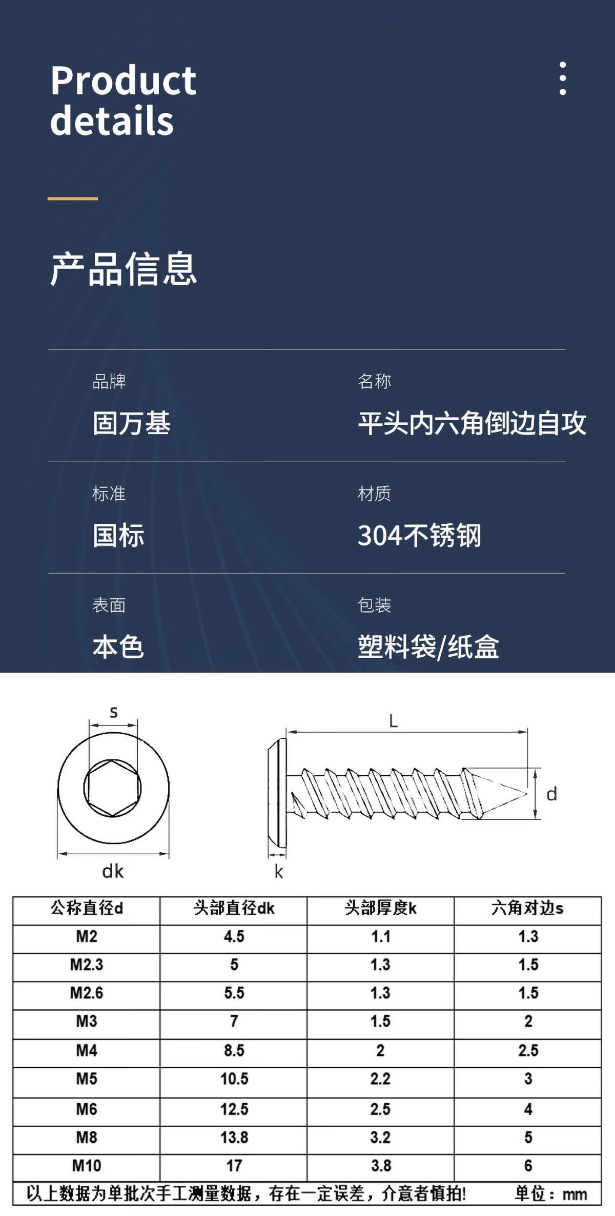GUWANJI304不锈钢倒边内六角自攻螺钉家具螺丝大平头木螺钉M2-M10 M2x4[500只]