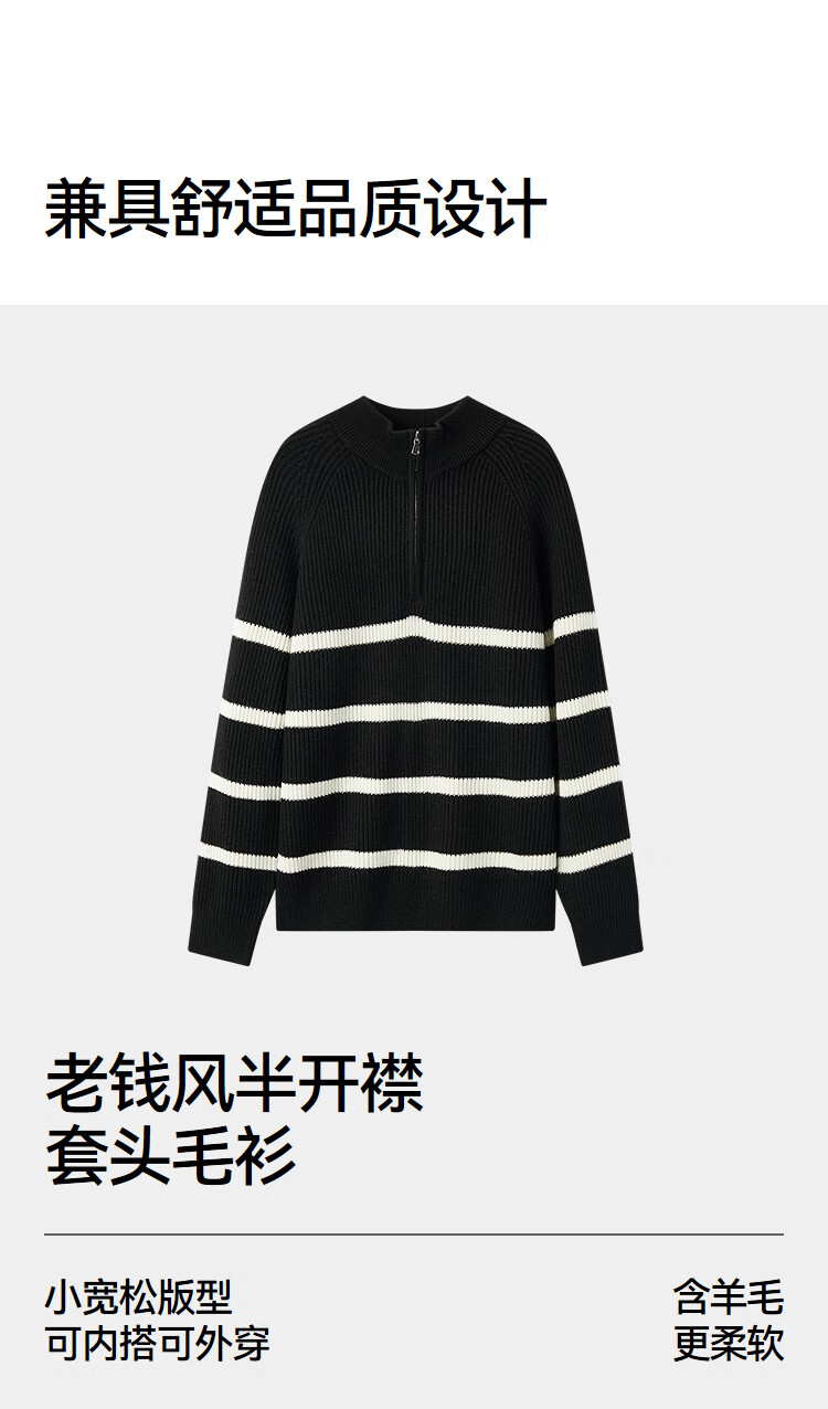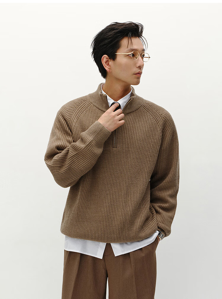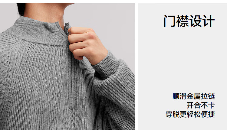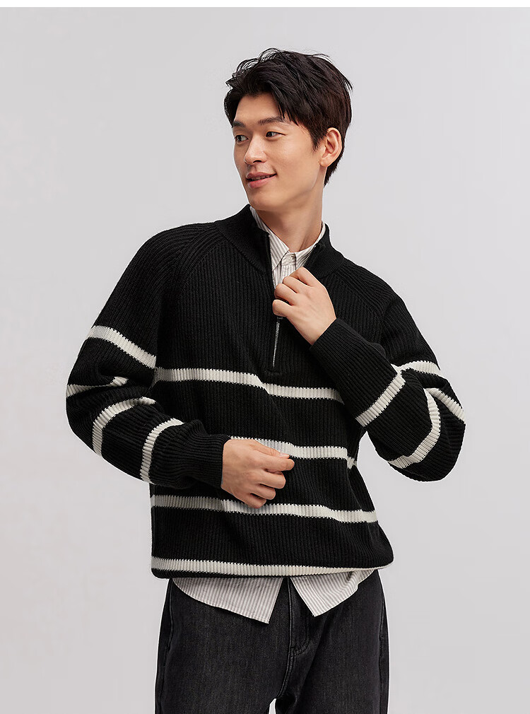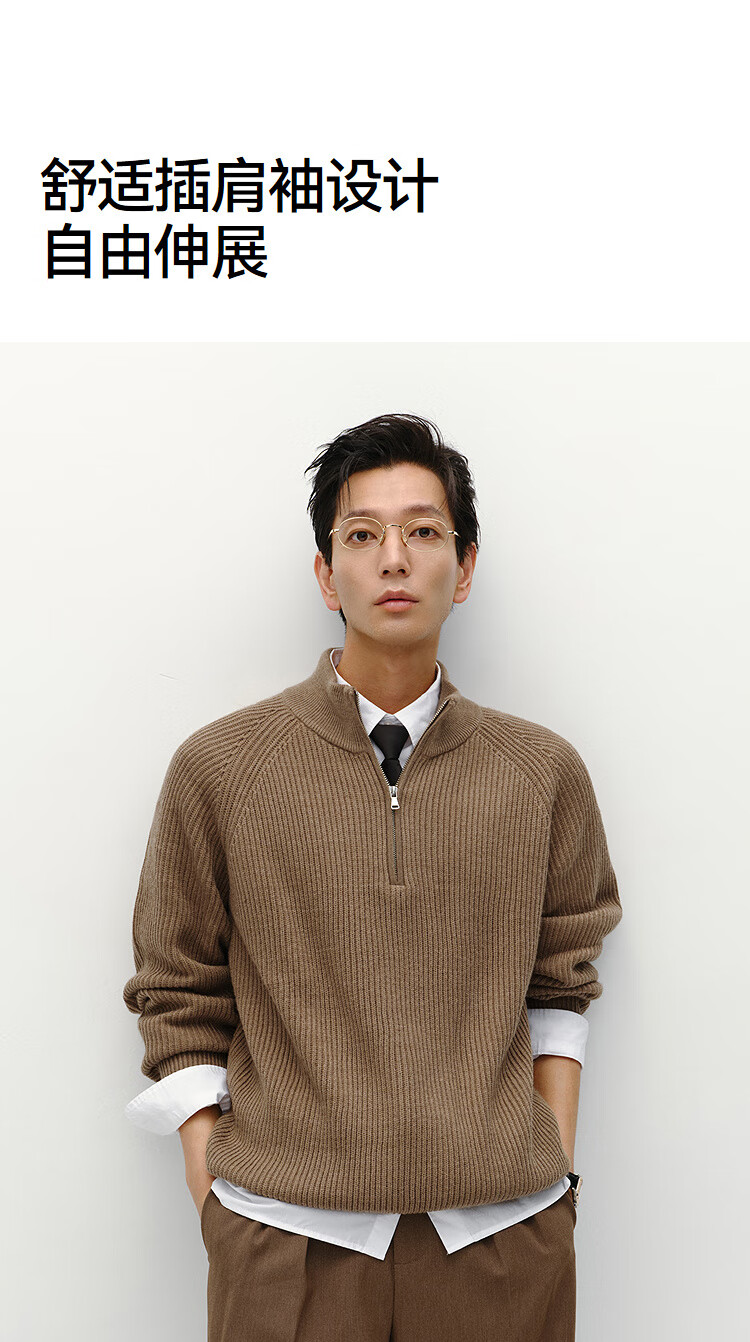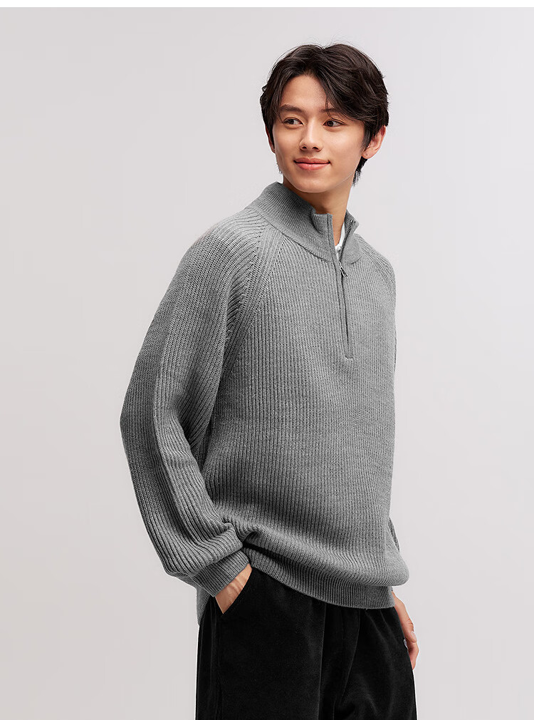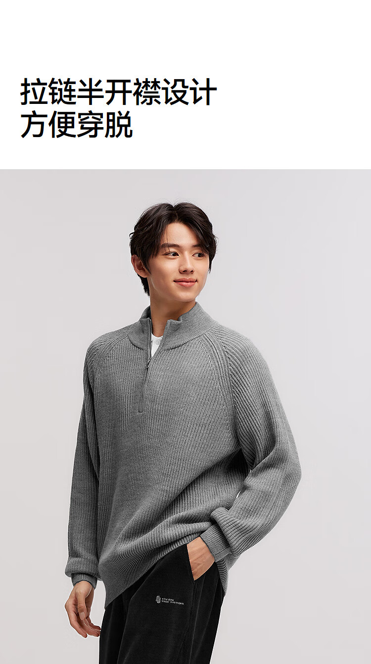 森马(Semir)森柔|毛衫男冬季含羊毛针织衫半开襟毛衣情侣内搭101724107206