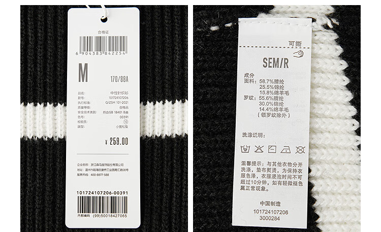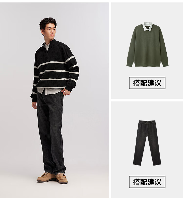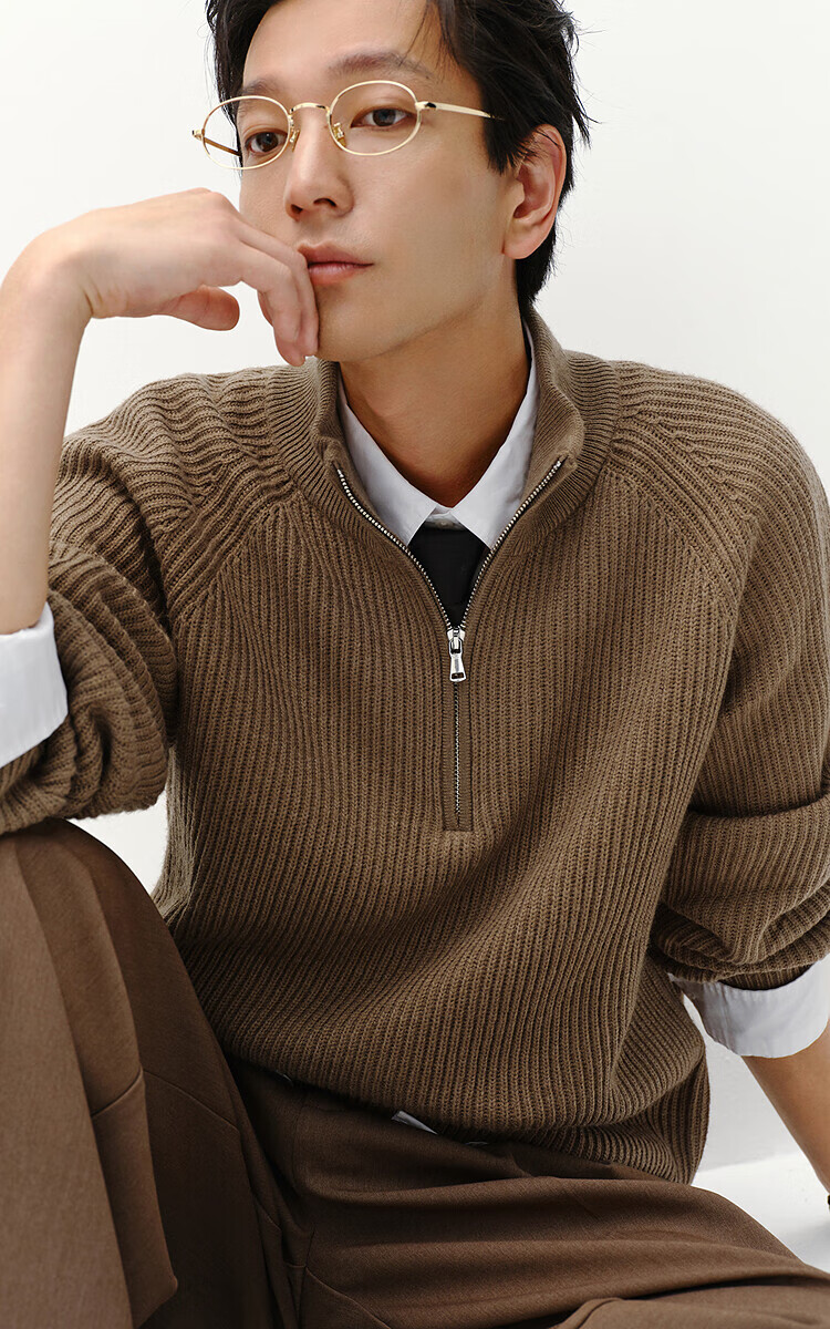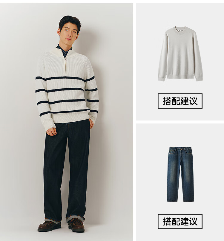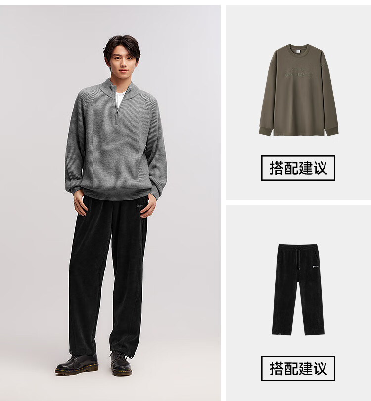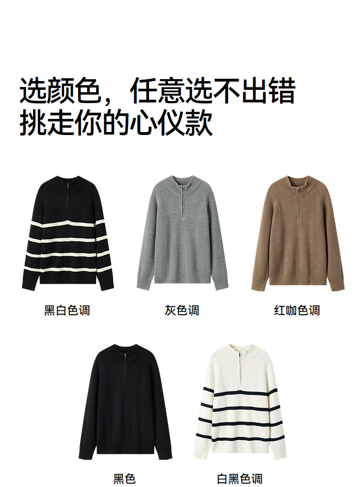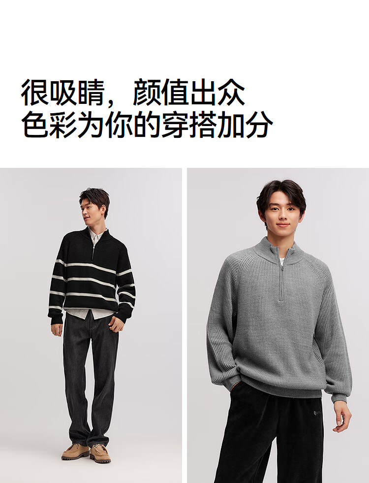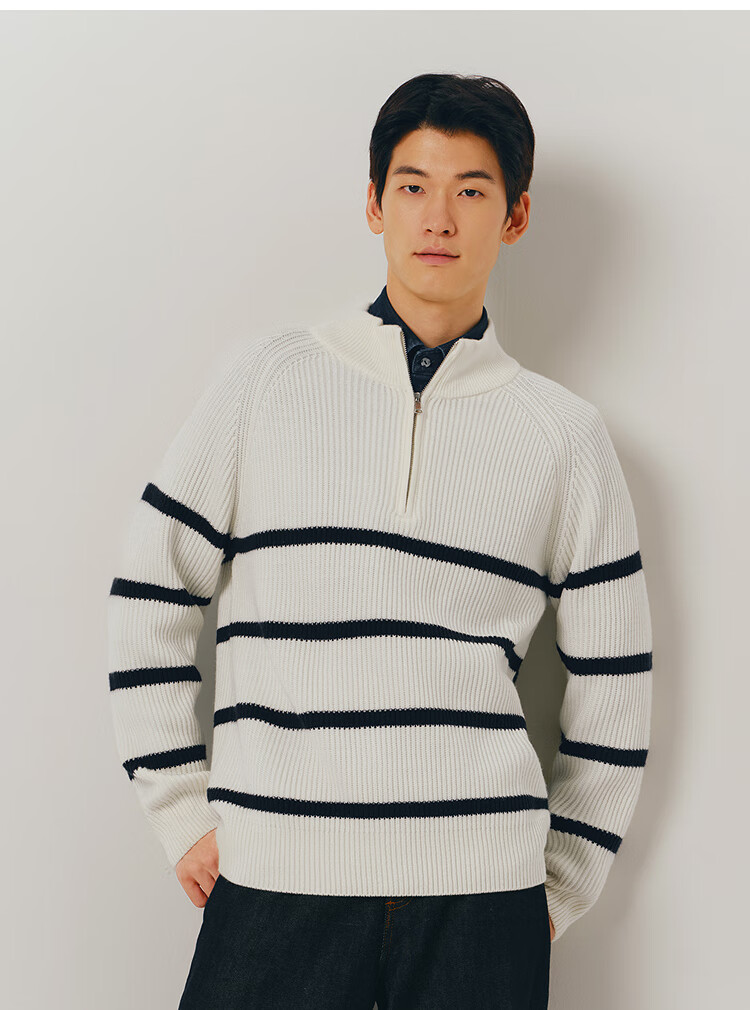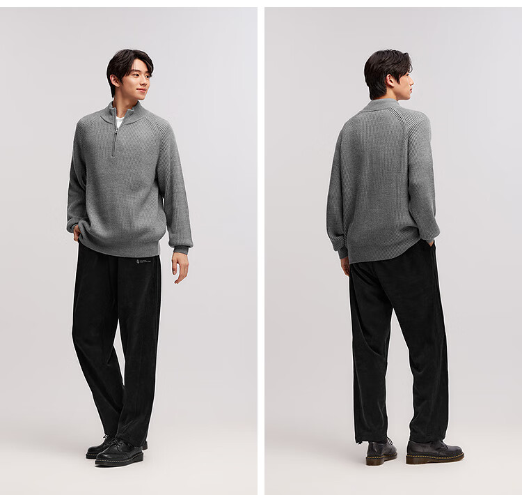 森马(Semir)森柔|毛衫男冬季含羊毛针织衫半开襟毛衣情侣内搭101724107206