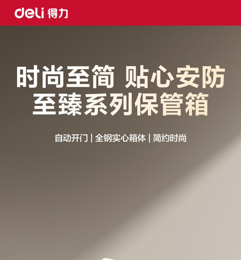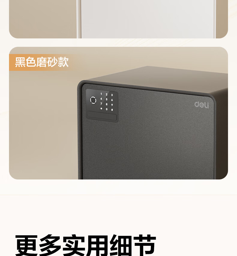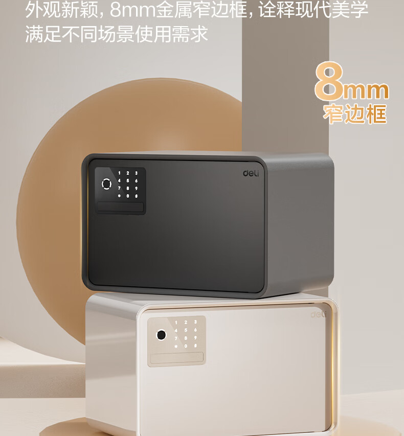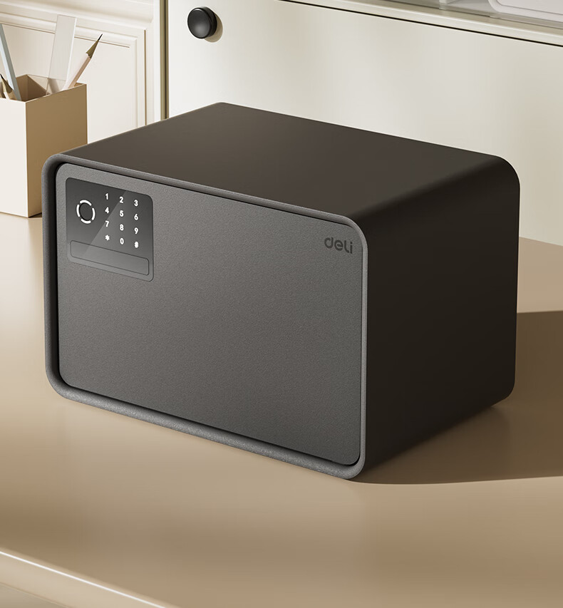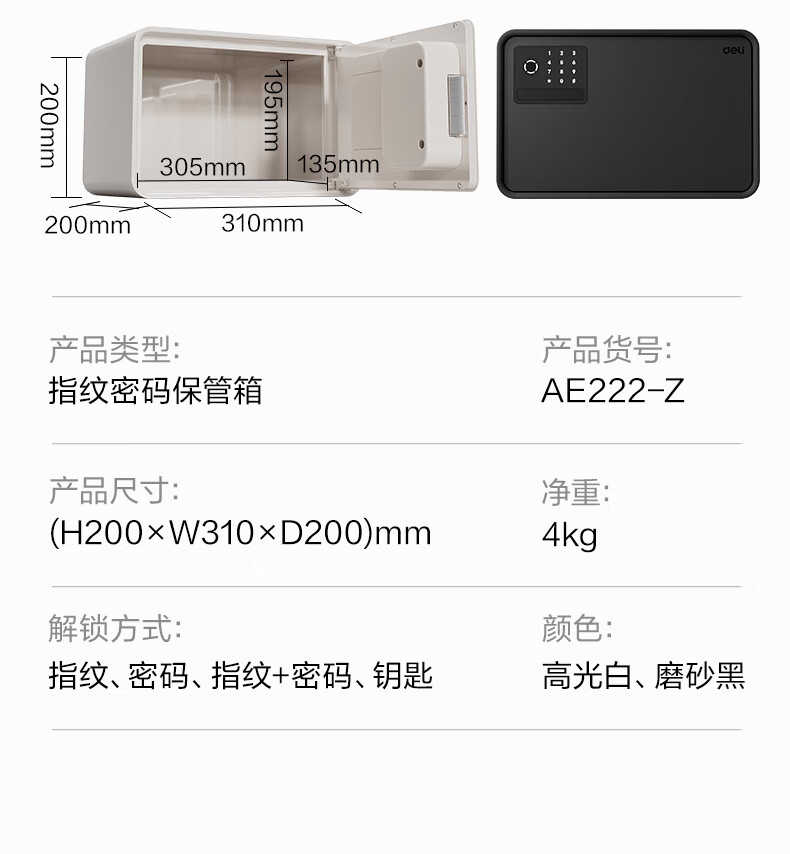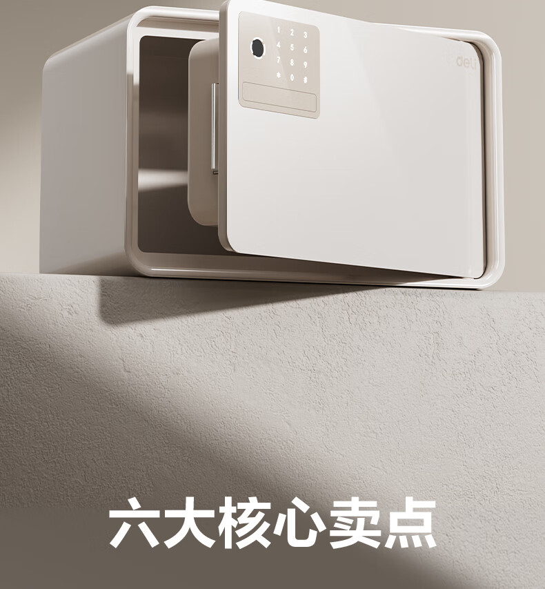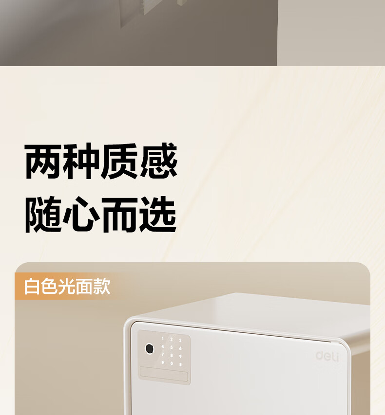得力(deli)保险柜 25年新款保险箱 家用指纹密码保管箱 自动开门 20cm AE222-Z象牙黑