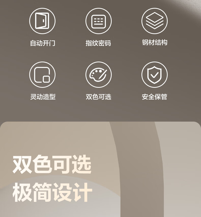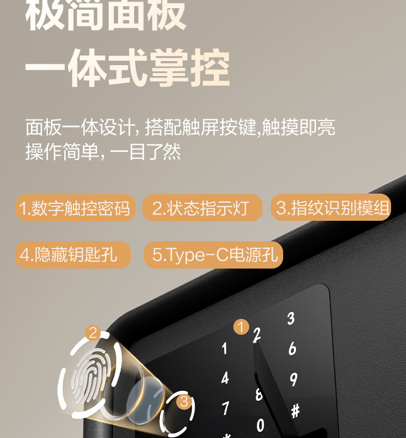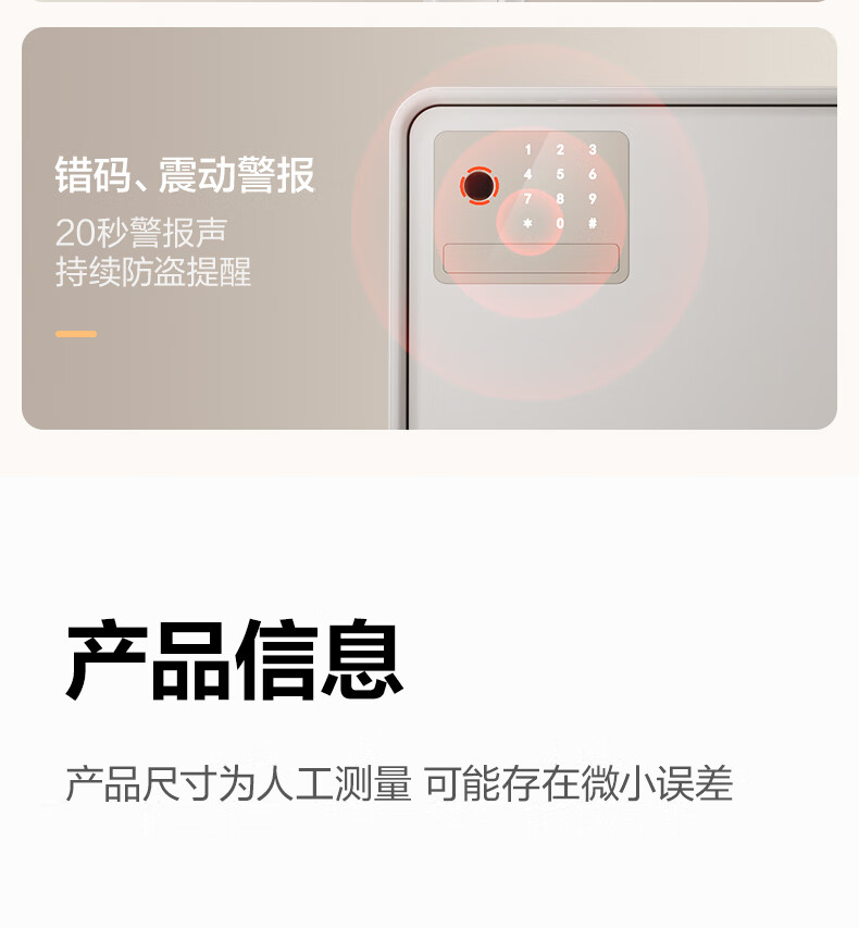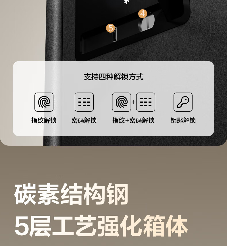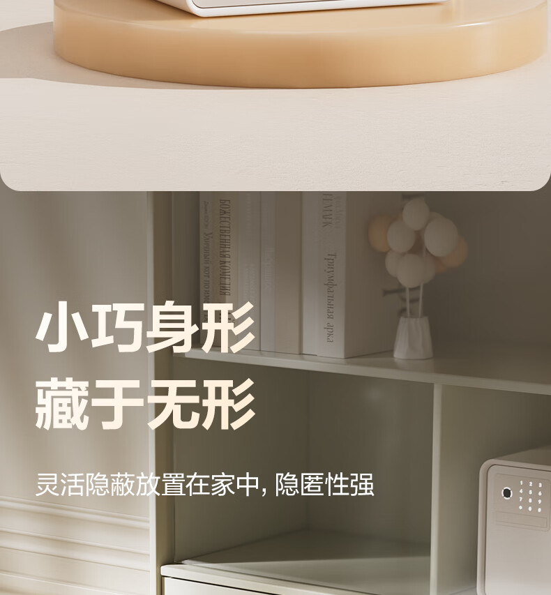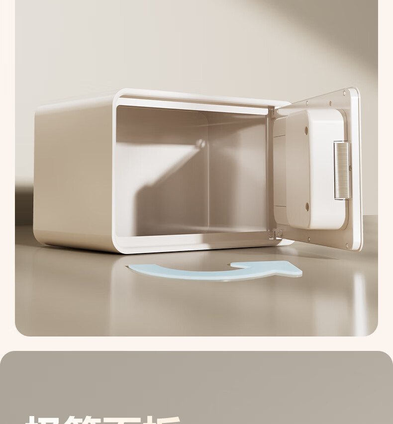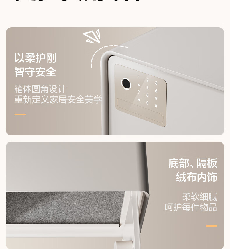 得力(deli)保险柜 25年新款保险箱 家用指纹密码保管箱 自动开门 20cm AE222-Z象牙黑