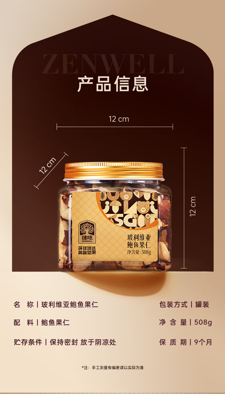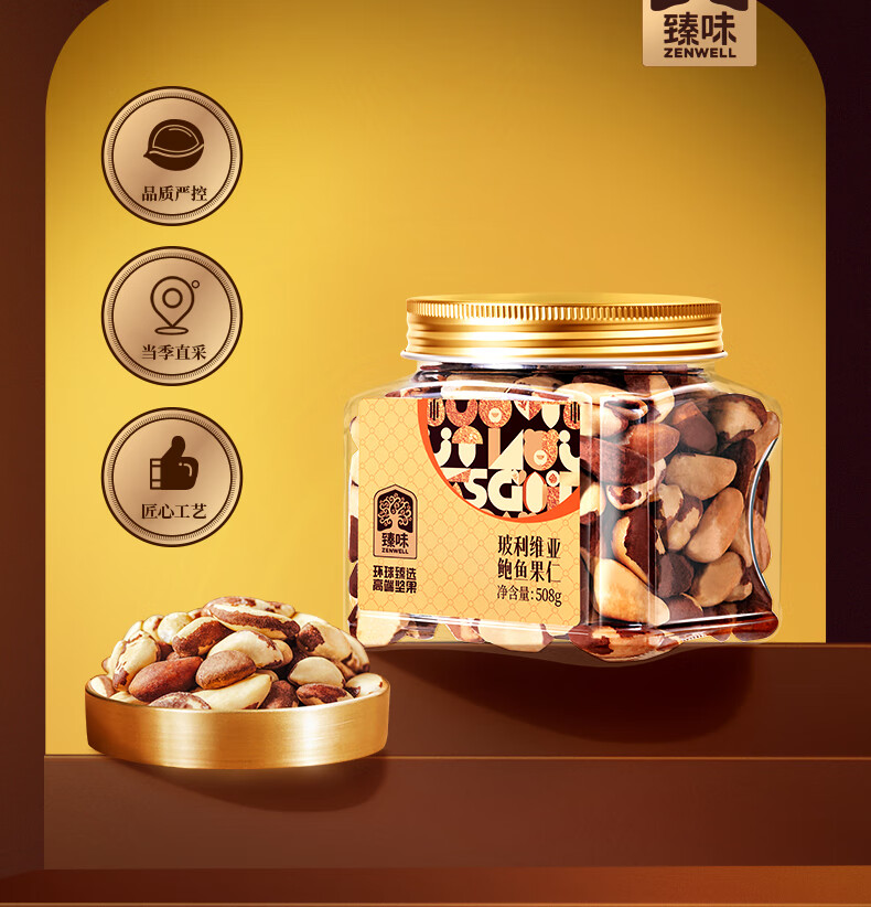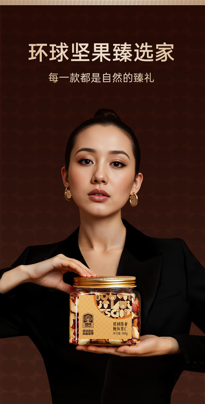 臻味鲍鱼果仁508g富硒巴西坚果炒货0添加原味休闲儿童孕妇零食