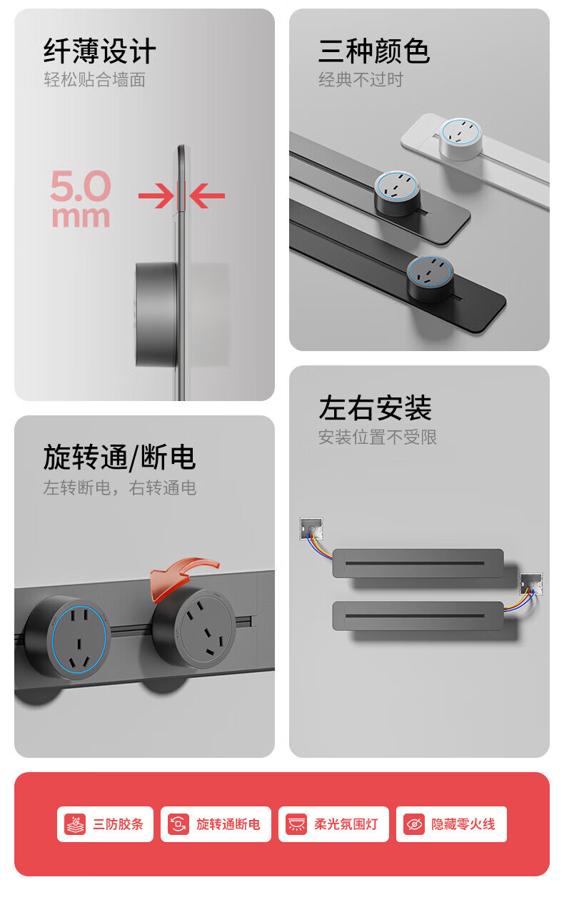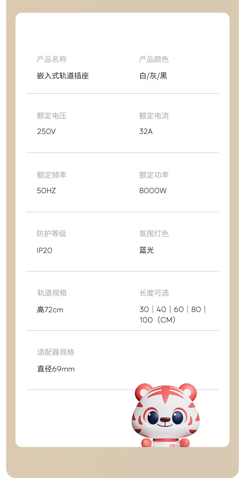 国际电工(FDD)暗装超薄轨道插座可移动嵌入式滑轨轨道插板家用岛台电力插排 超薄暗装轨道40cm+2个大五孔+U/C(蓝灯)