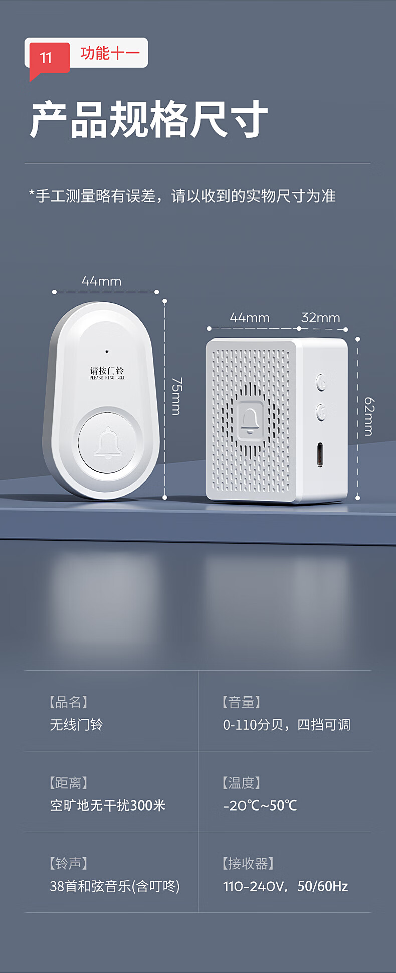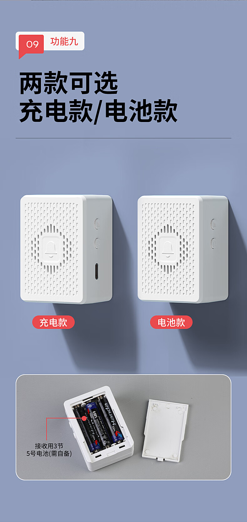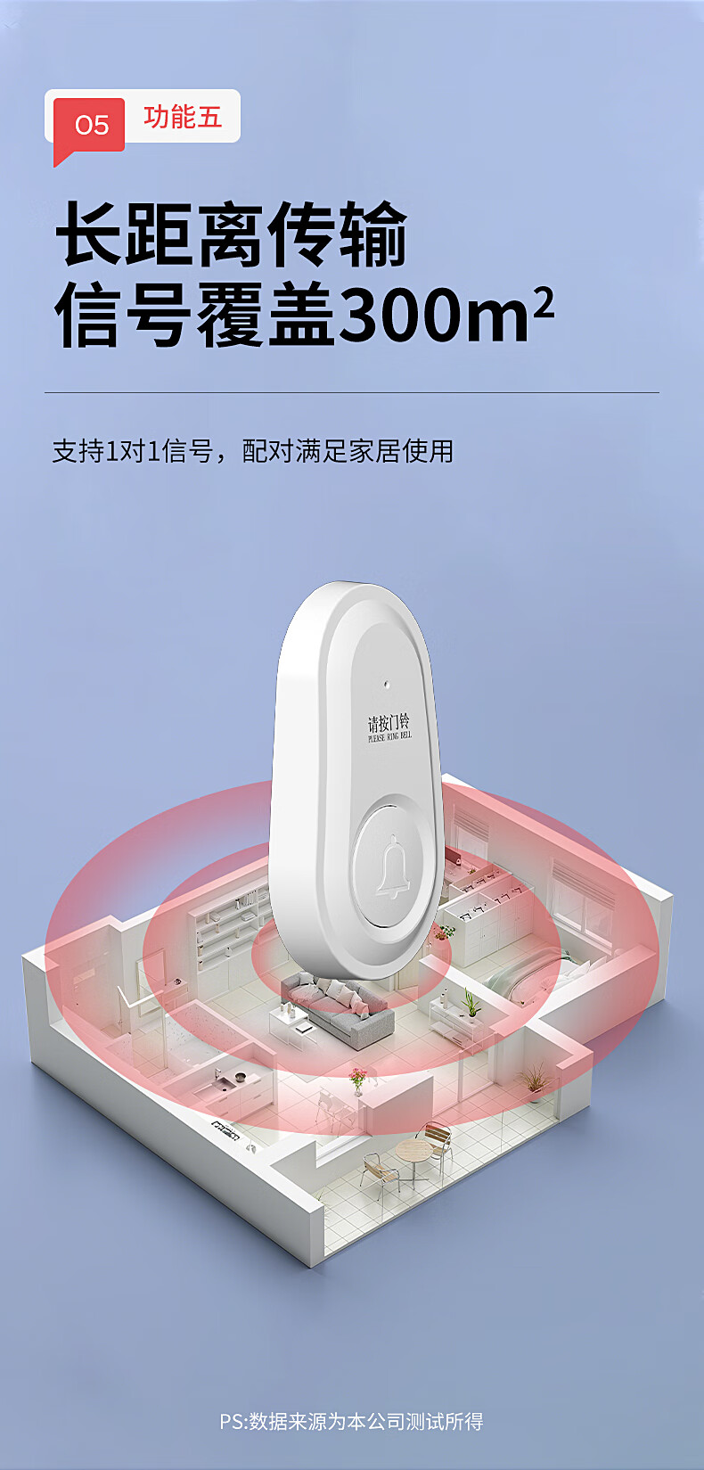 FDD国际电工无线门铃家用距离远声音大黏贴即用免插电穿透力强老人紧急呼叫器 充电款白色【一个按键+一个响铃】