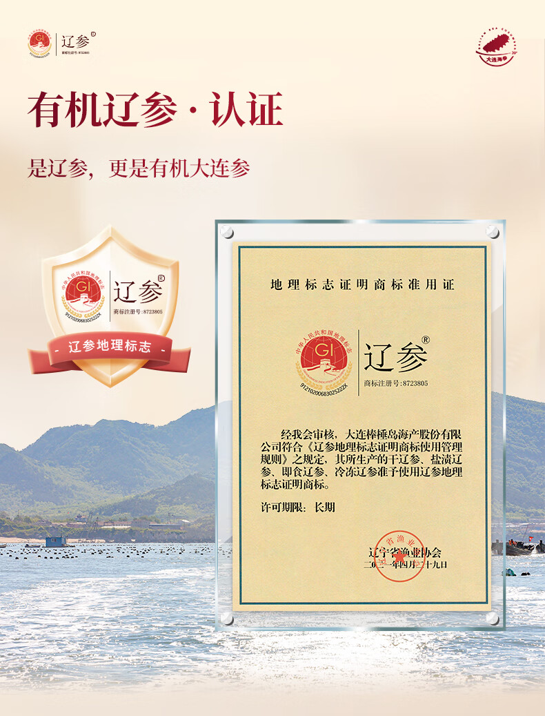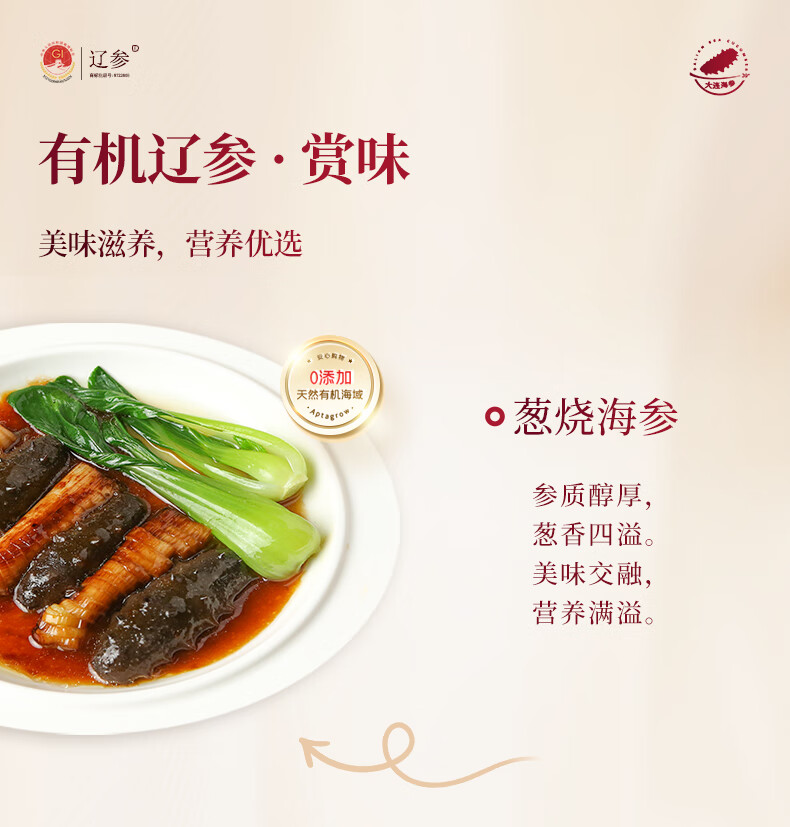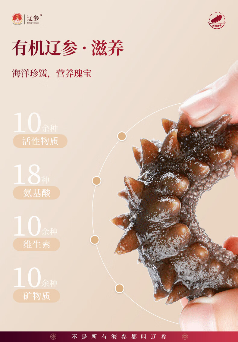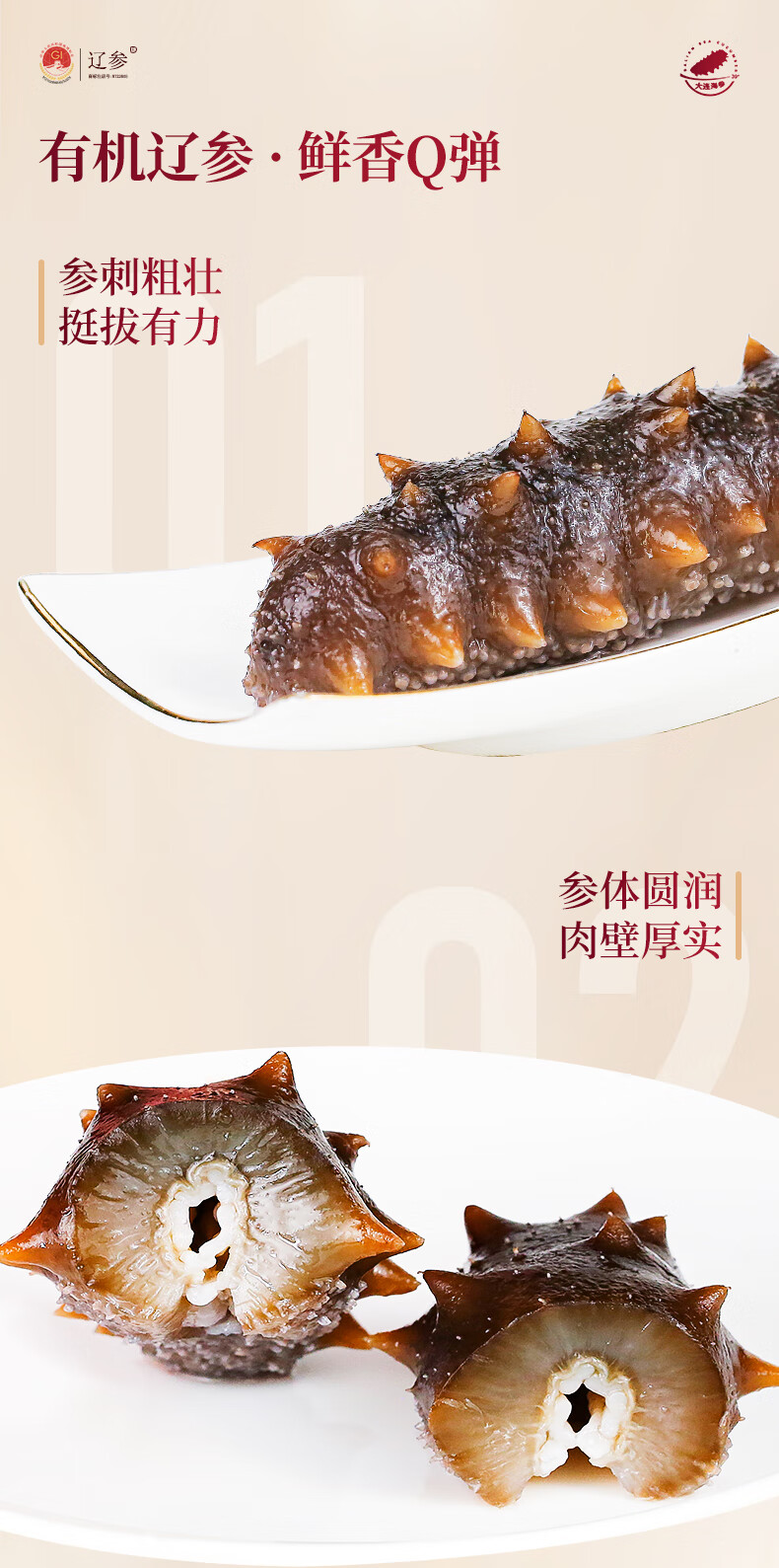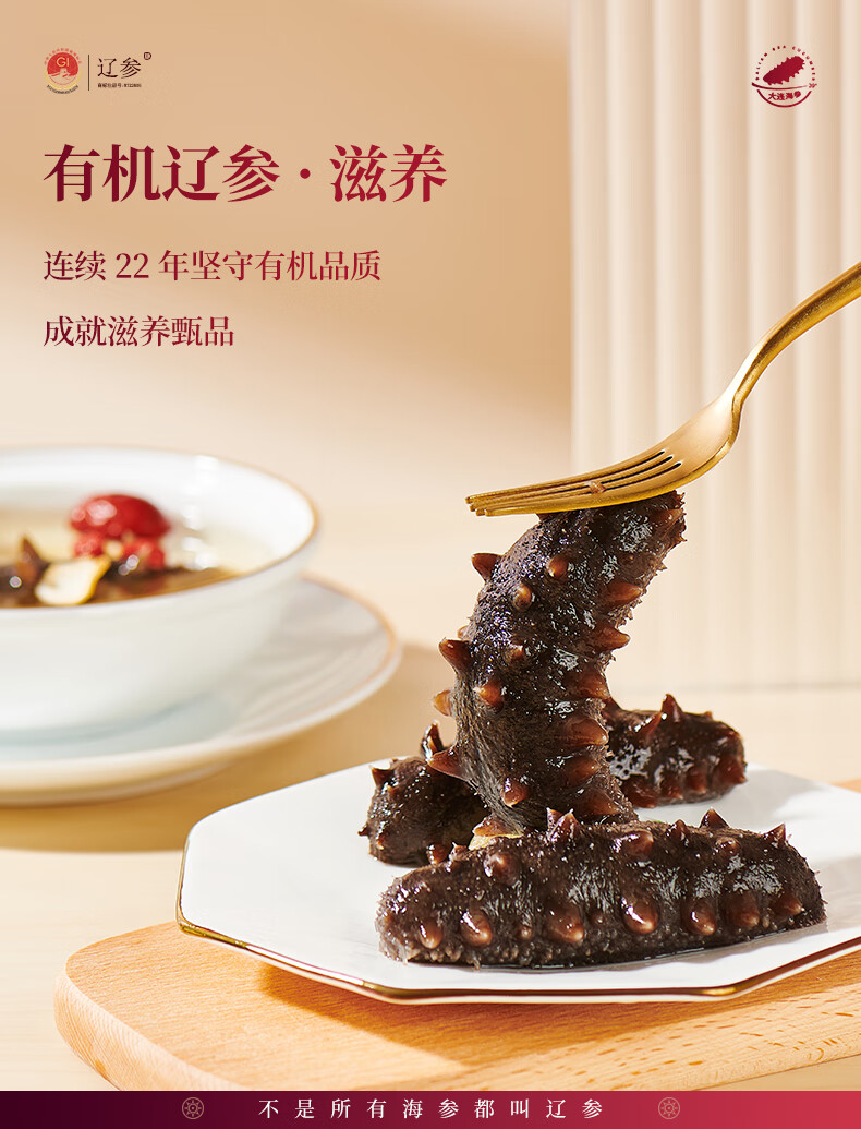 辽参大连有机冷冻海参300克6-8只非即食京东自营旗舰店独立包装正品