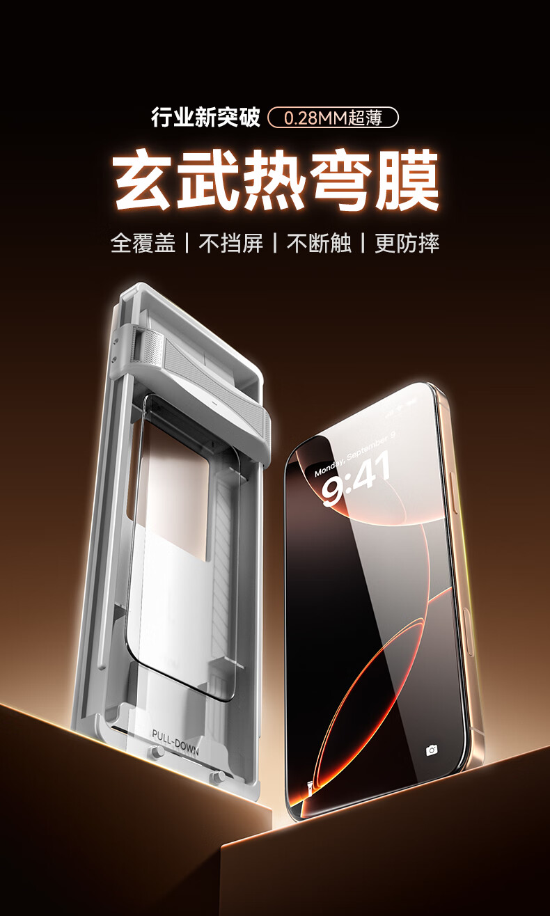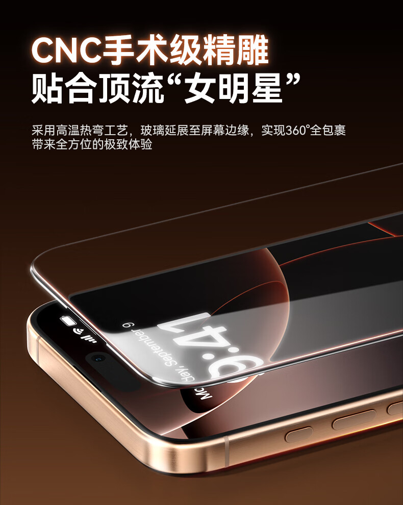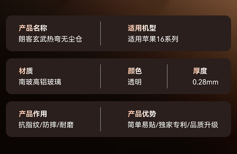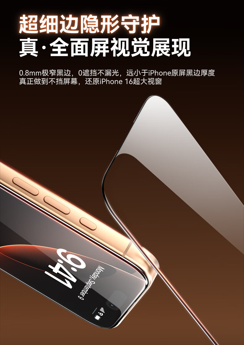 朗客苹果16Pro钢化膜 iPhone16Pro手机膜高清超薄热弯曲面全屏覆盖防尘防摔不沾指纹保护贴膜无尘仓