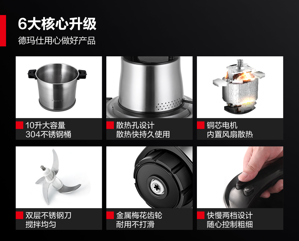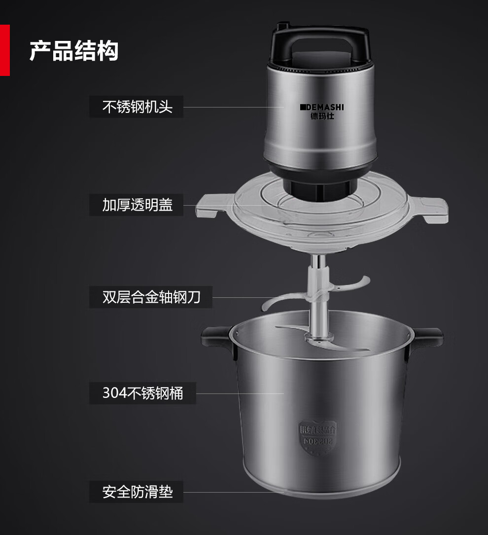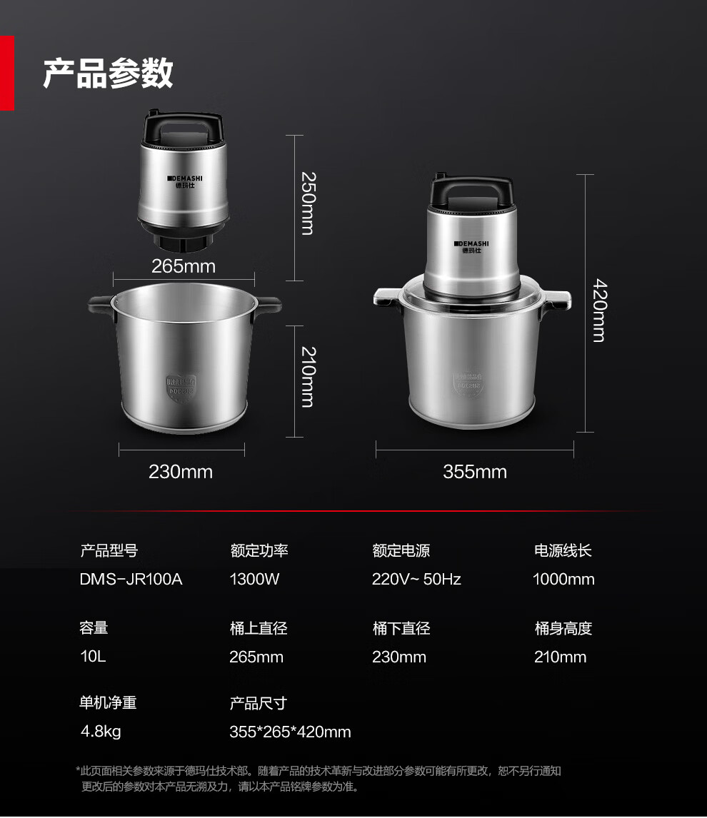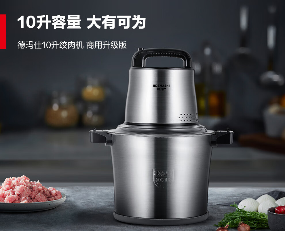 德玛仕(DEMASHI)大容量绞肉机 家用商用电动不锈钢大功率绞馅机 碎肉打肉料理机JR100A(10升容量)