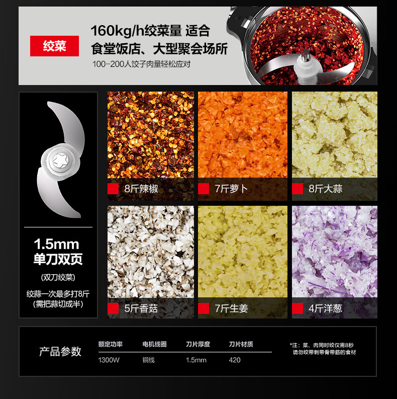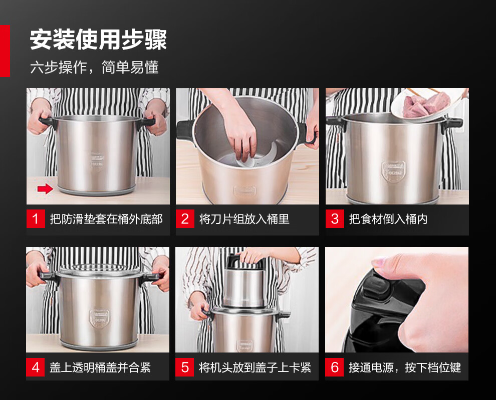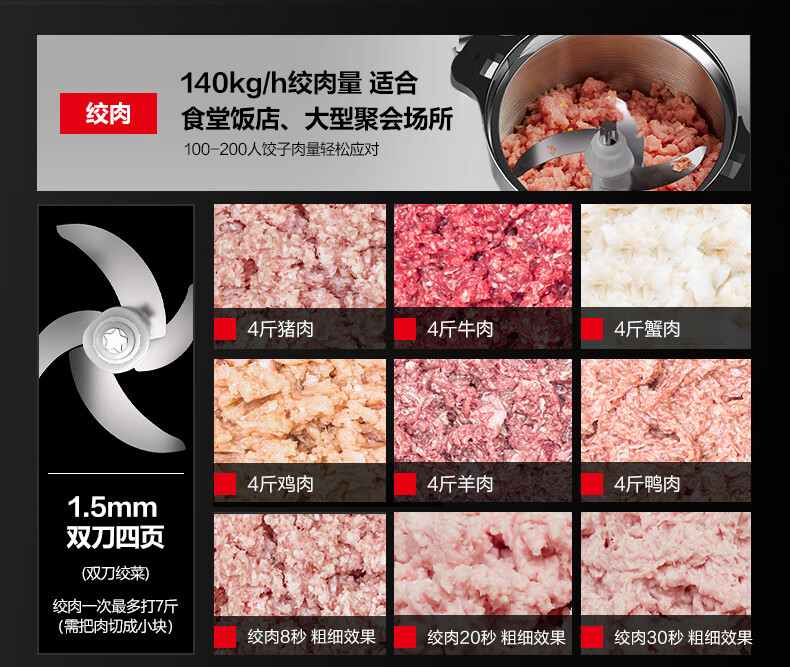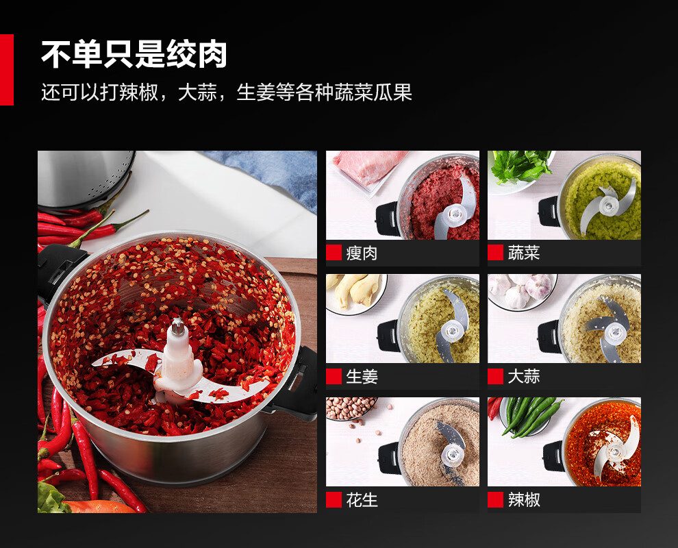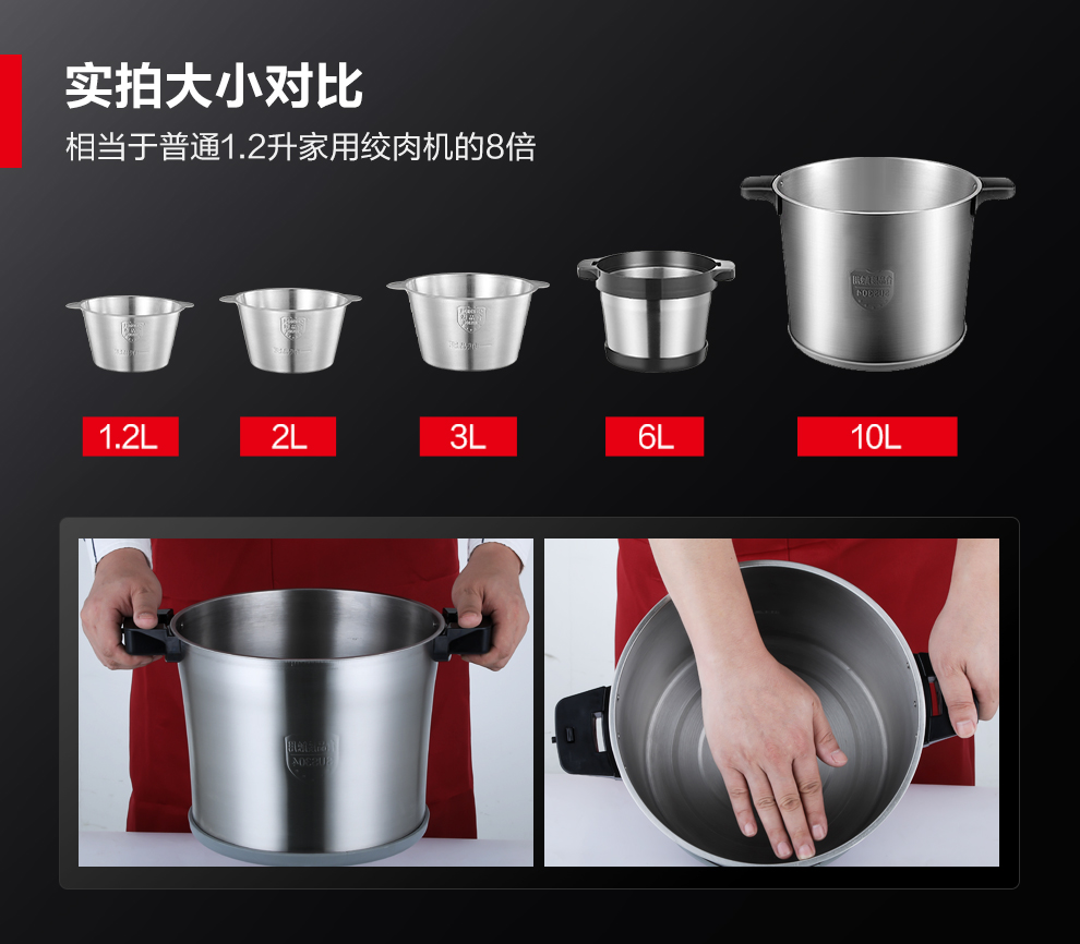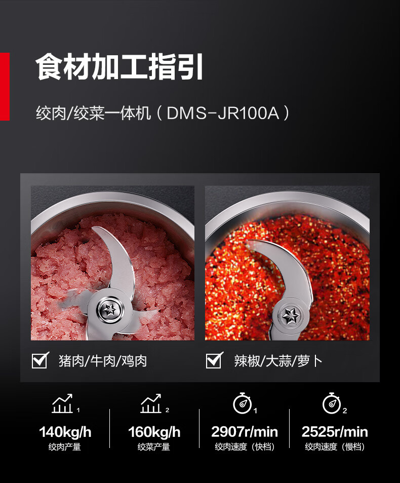 德玛仕(DEMASHI)大容量绞肉机 家用商用电动不锈钢大功率绞馅机 碎肉打肉料理机JR100A(10升容量)