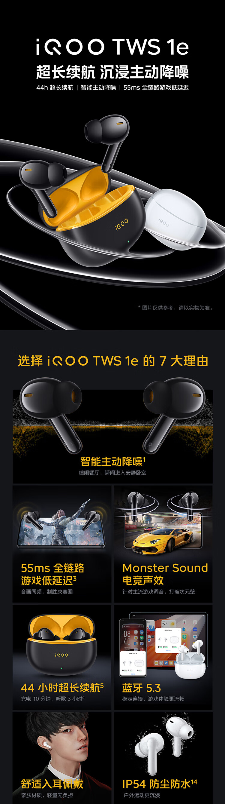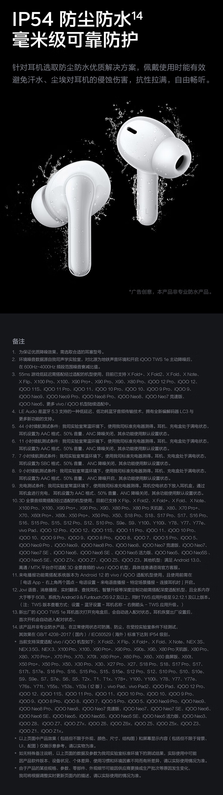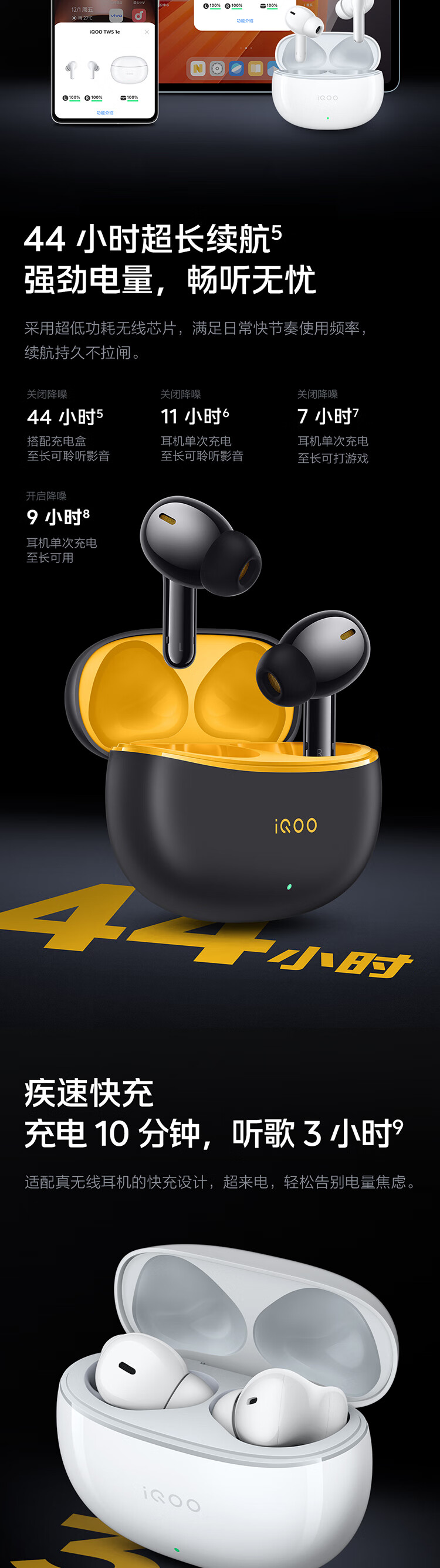 vivo iQOO TWS 1e 44H超长续航 智能主动降噪 超低游戏延迟适配小米苹果荣耀手机 机甲白 情人节送礼物