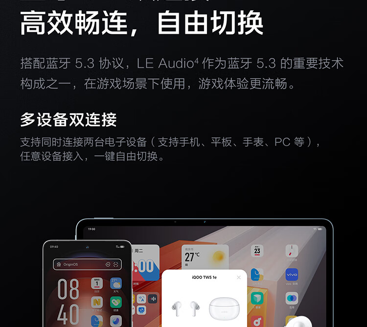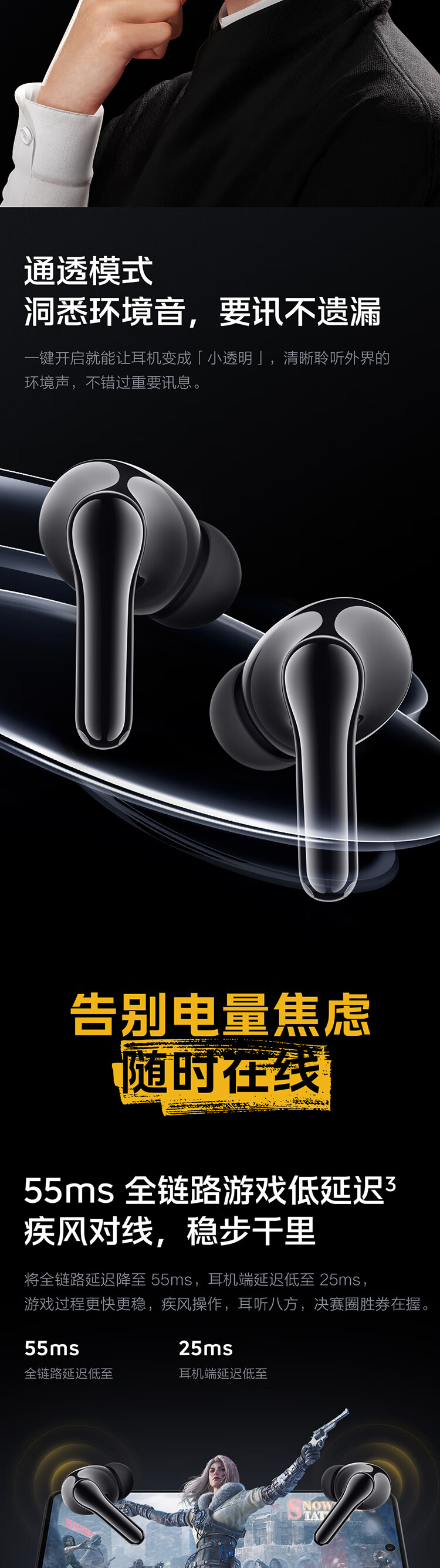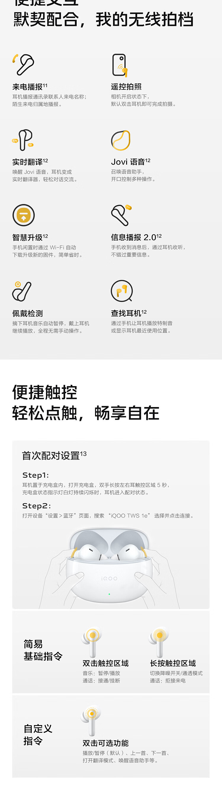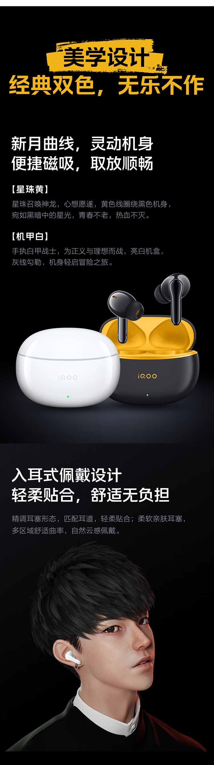 vivo iQOO TWS 1e 44H超长续航 智能主动降噪 超低游戏延迟适配小米苹果荣耀手机 机甲白 情人节送礼物