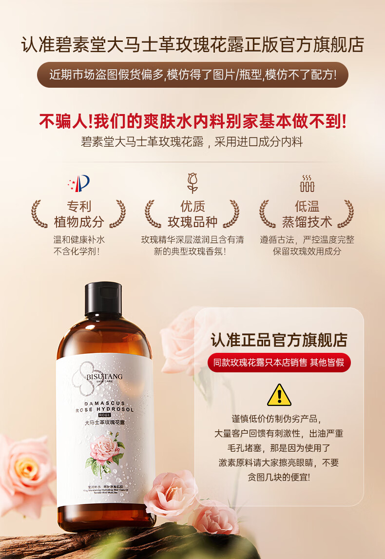 碧素堂大马士革爽肤水玫瑰花水纯露湿敷嫩肤提亮美容补水保湿女护肤品 500ml 【急救】闪速补水