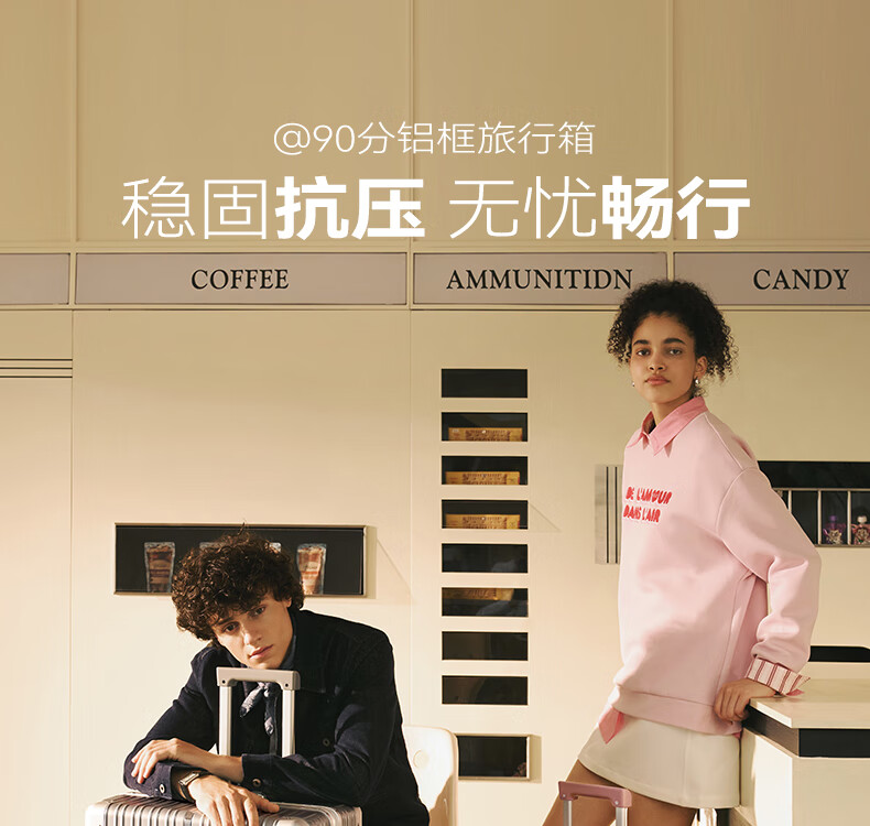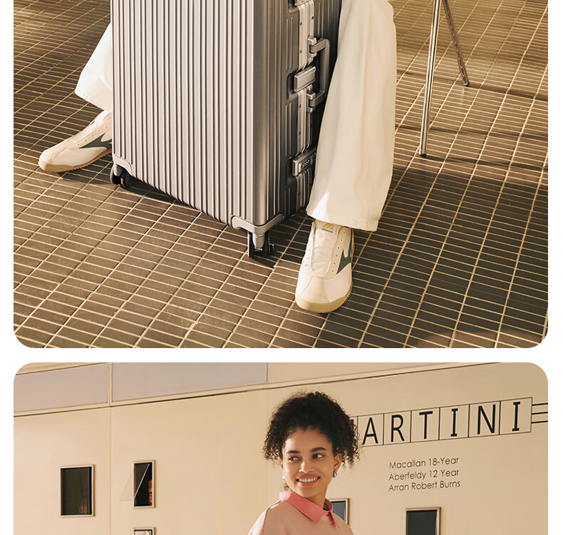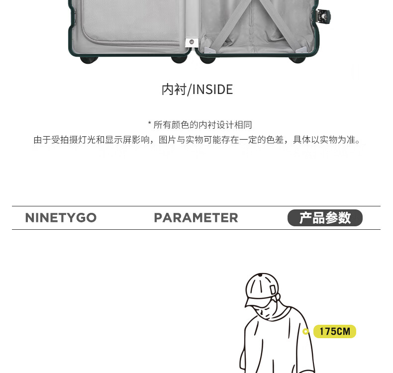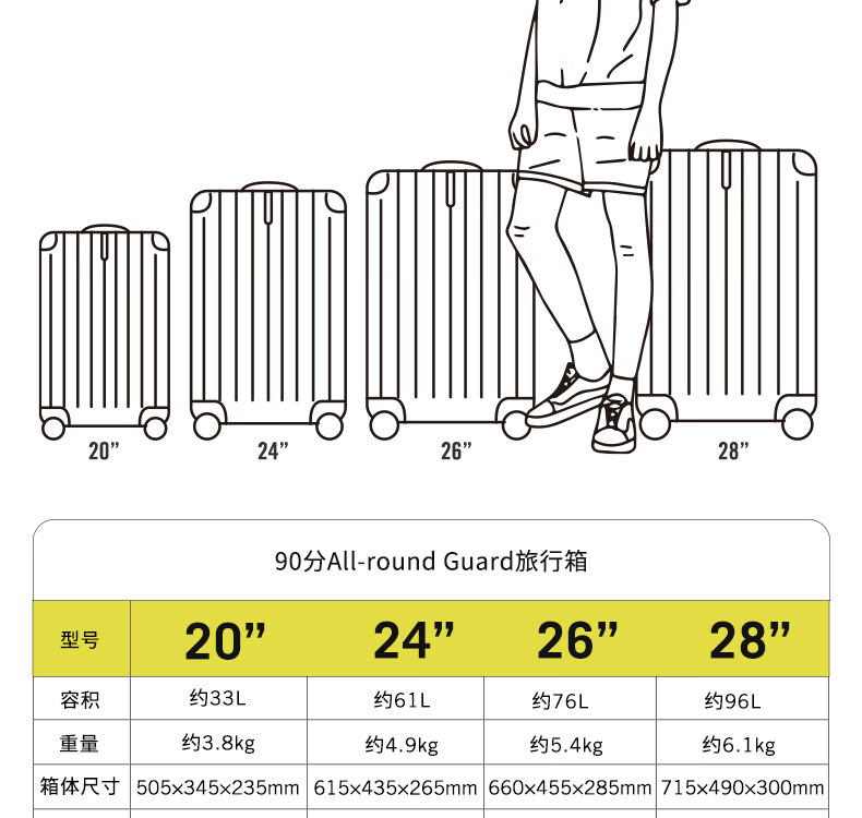 90分PC旅行箱铝框行李箱20英寸商旅两用可登机拉杆箱登机箱曜石黑