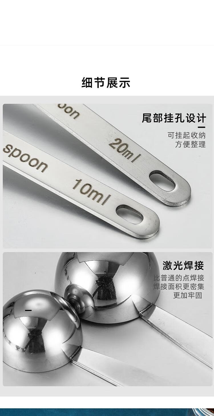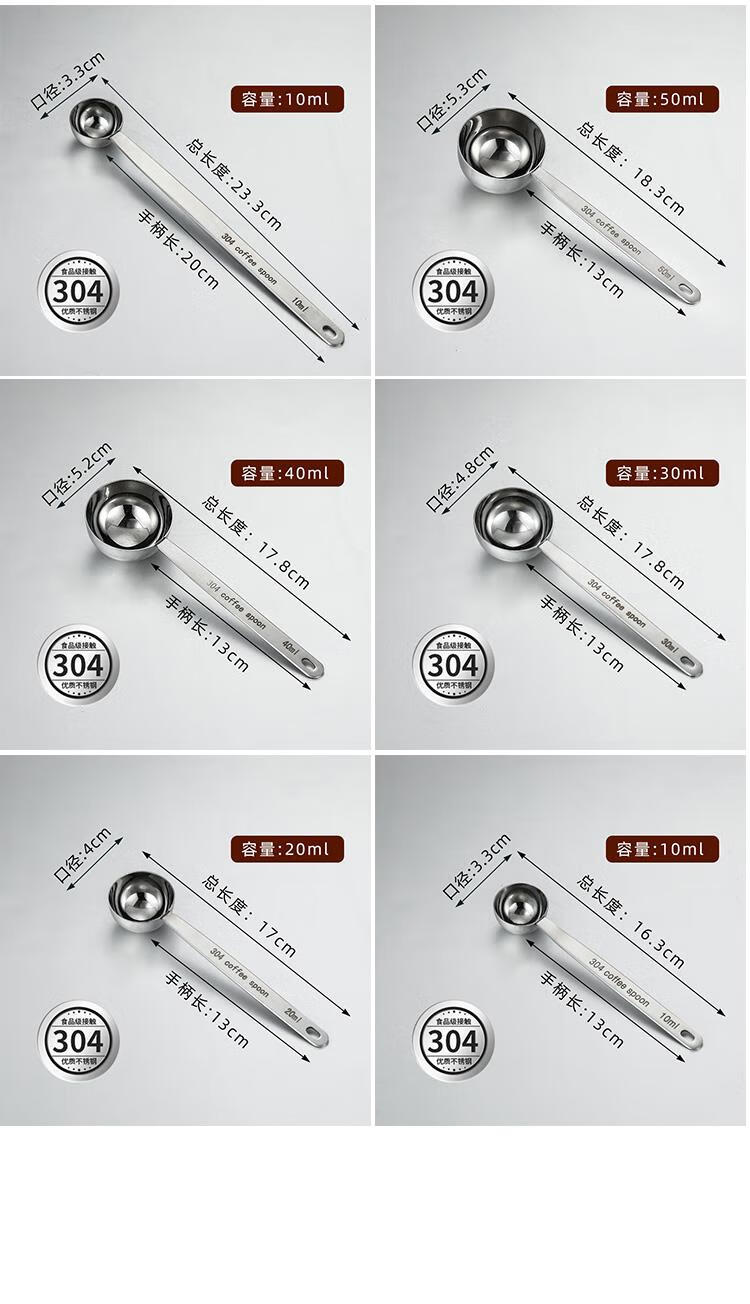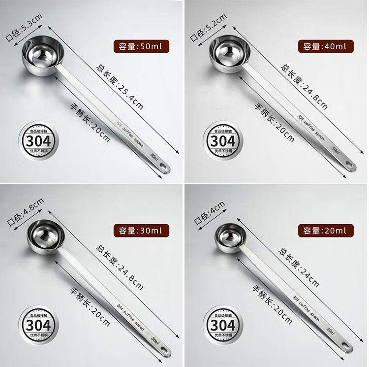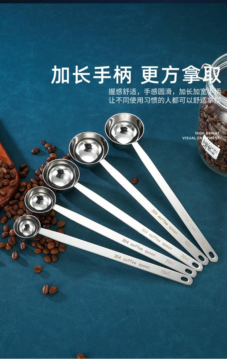 DEATKN德国不锈钢长柄量勺咖啡勺10克定量勺304果粉勺调味料勺50ml计量 304量勺-10ml