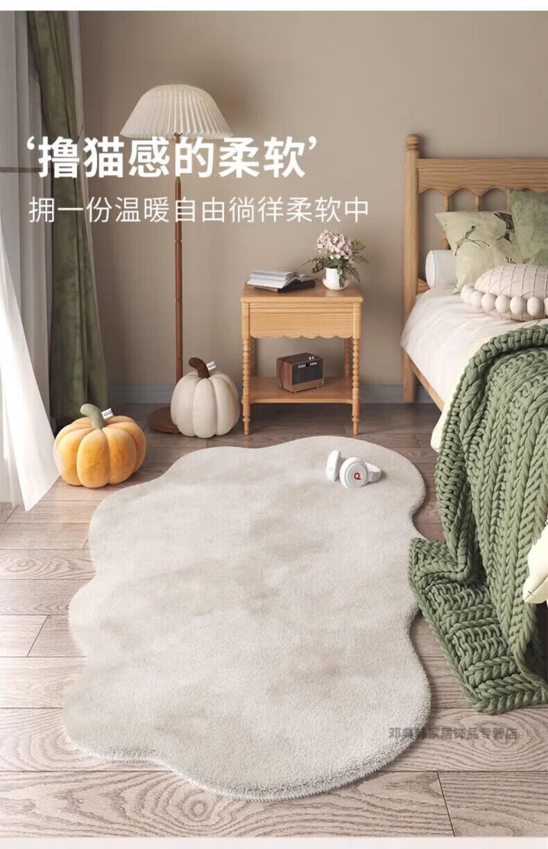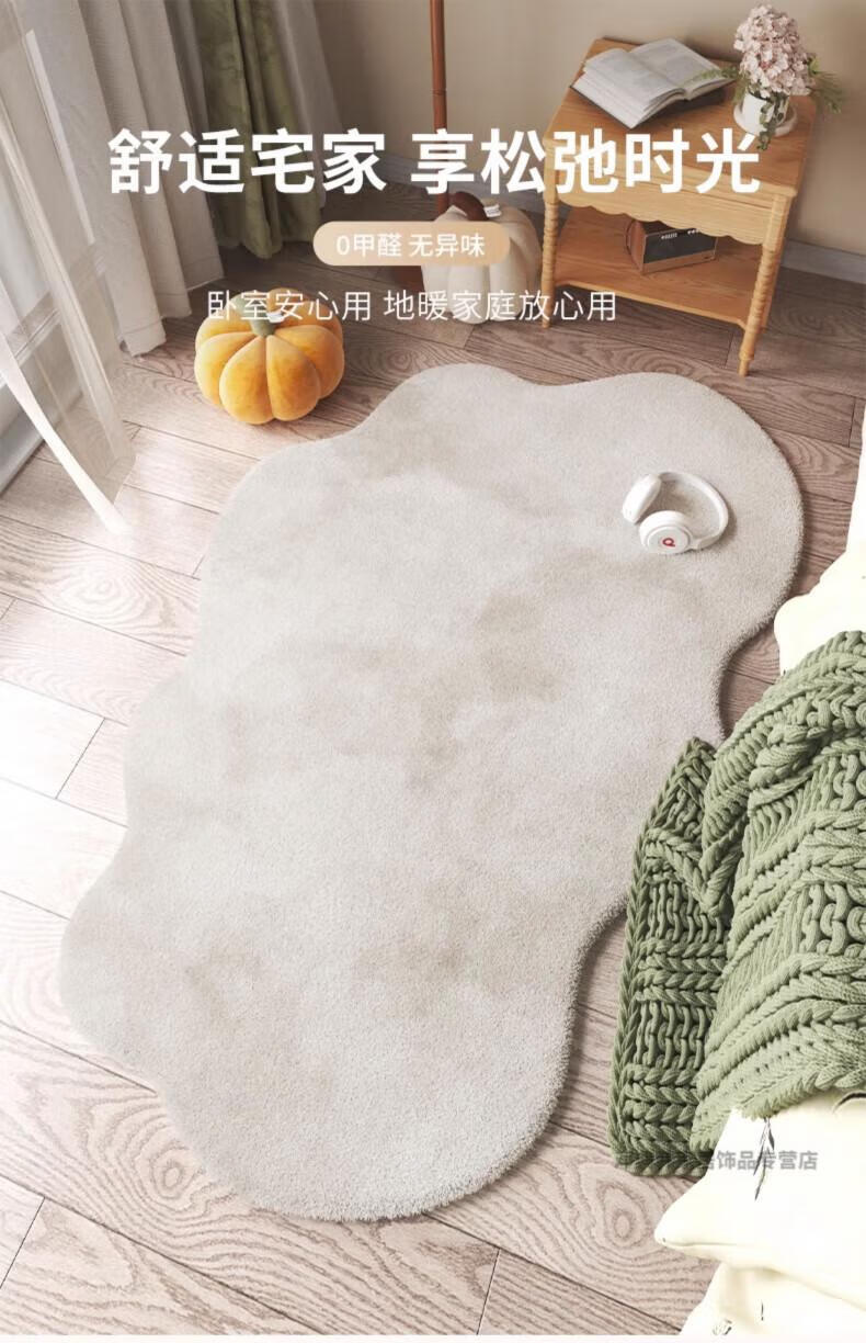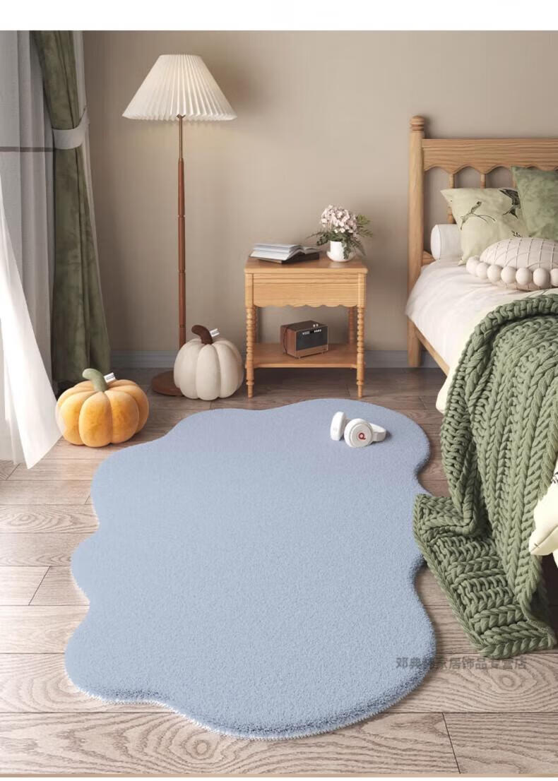 DEATKN德国地毯卧室女孩床边毯房间2025新款感简约不规则大面积地垫 晕染灰白色 60cm*180cm 踏足云端_柔软舒适