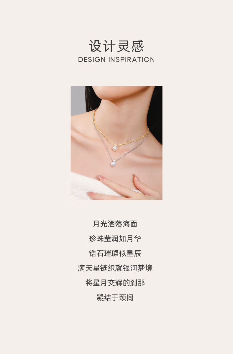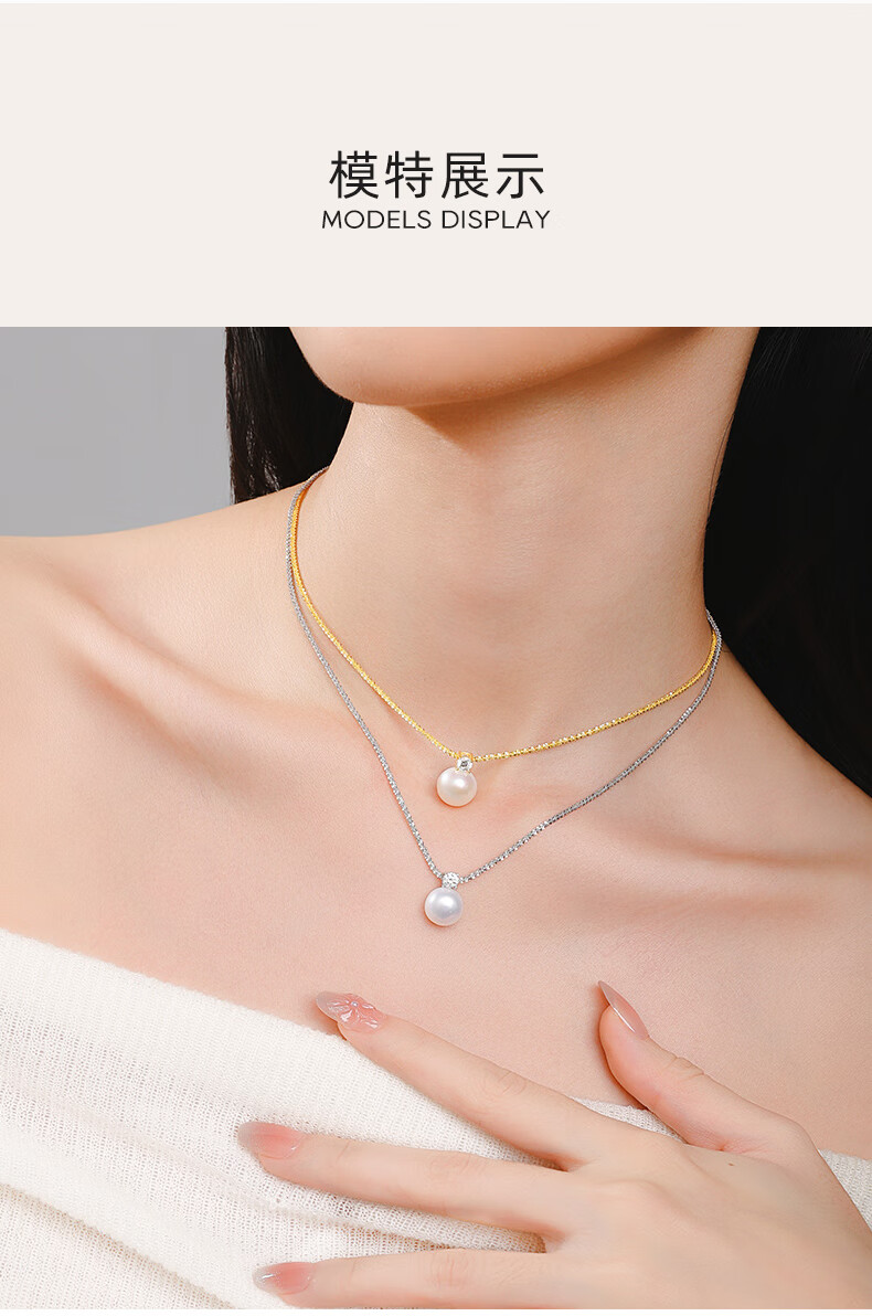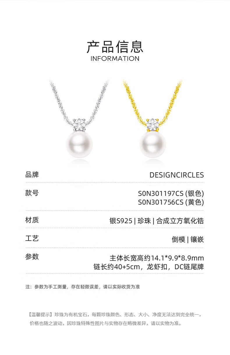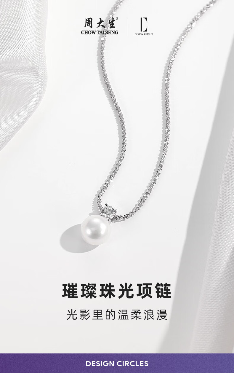 周大生*DC碎银子珍珠项链女款银项链轻奢锁骨链生日礼物女士 银色