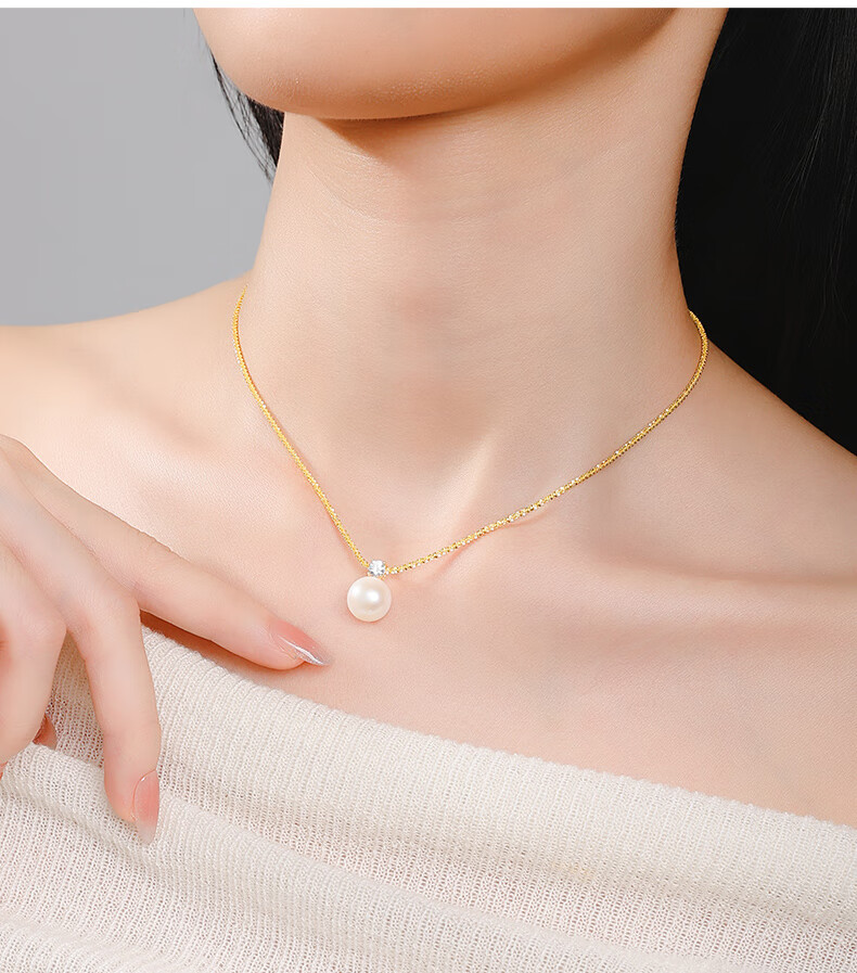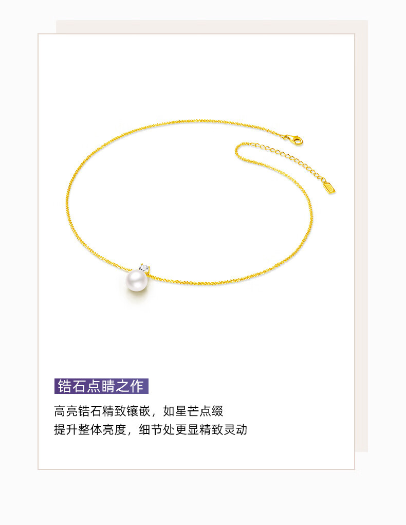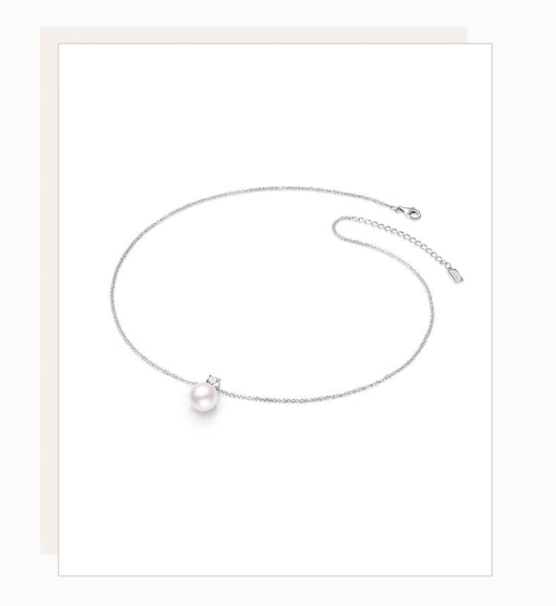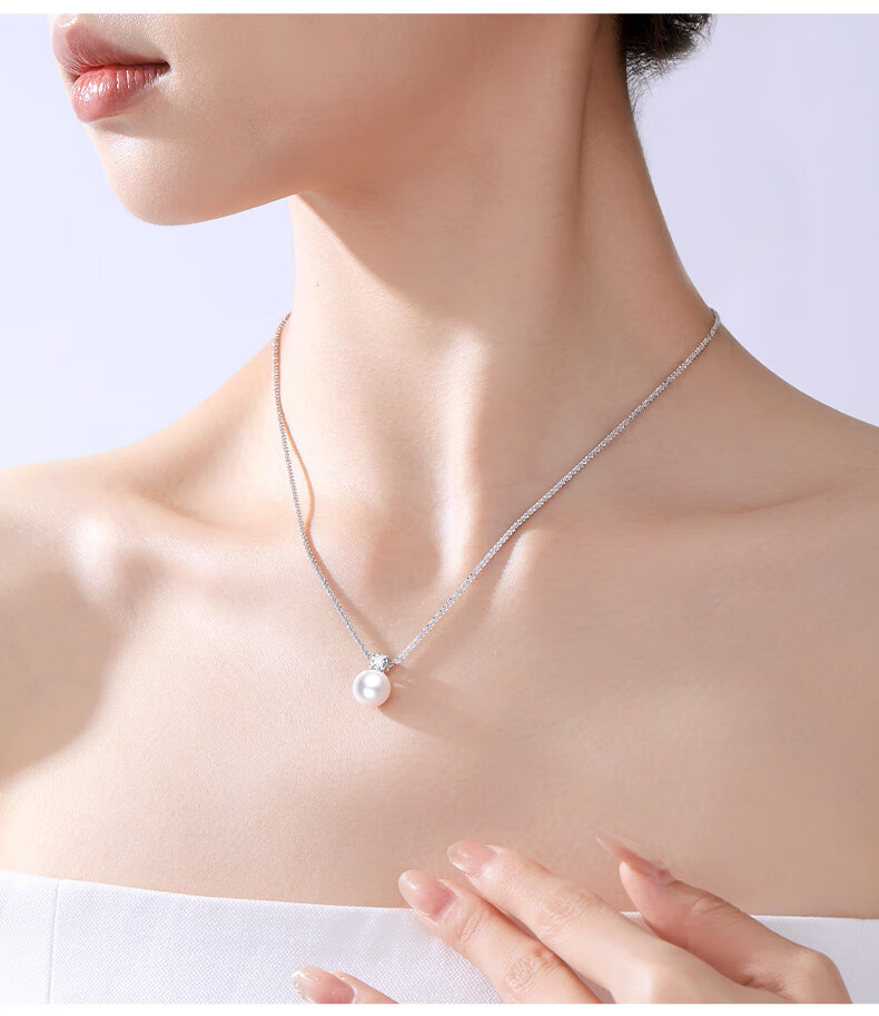 周大生*DC碎银子珍珠项链女款银项链轻奢锁骨链生日礼物女士 银色