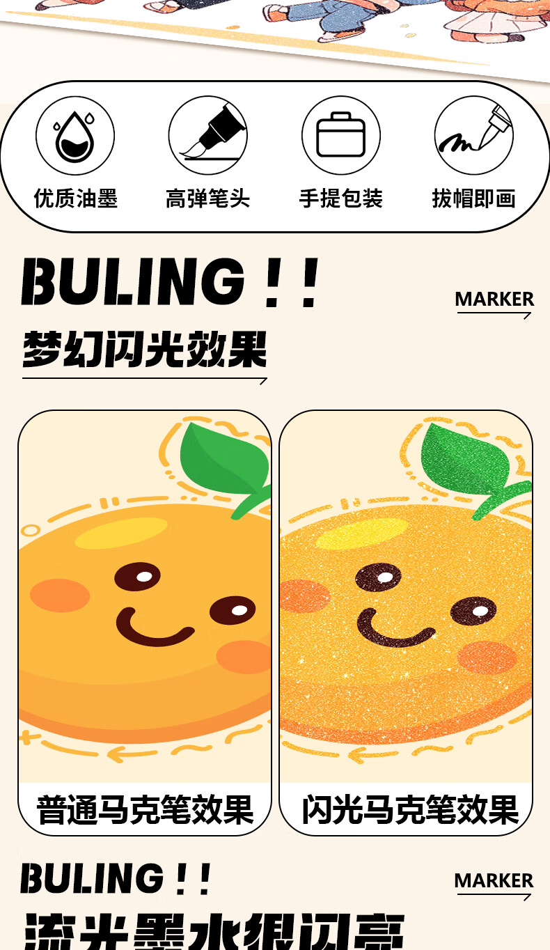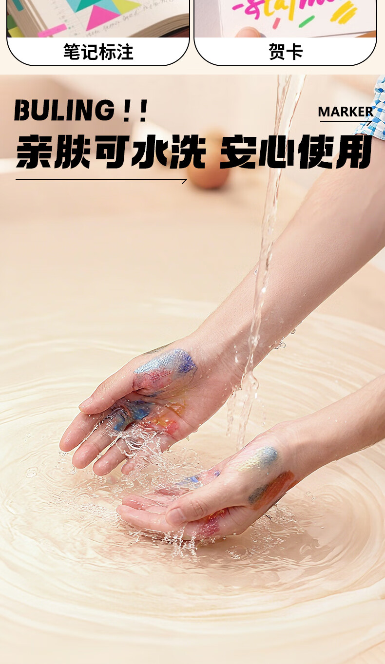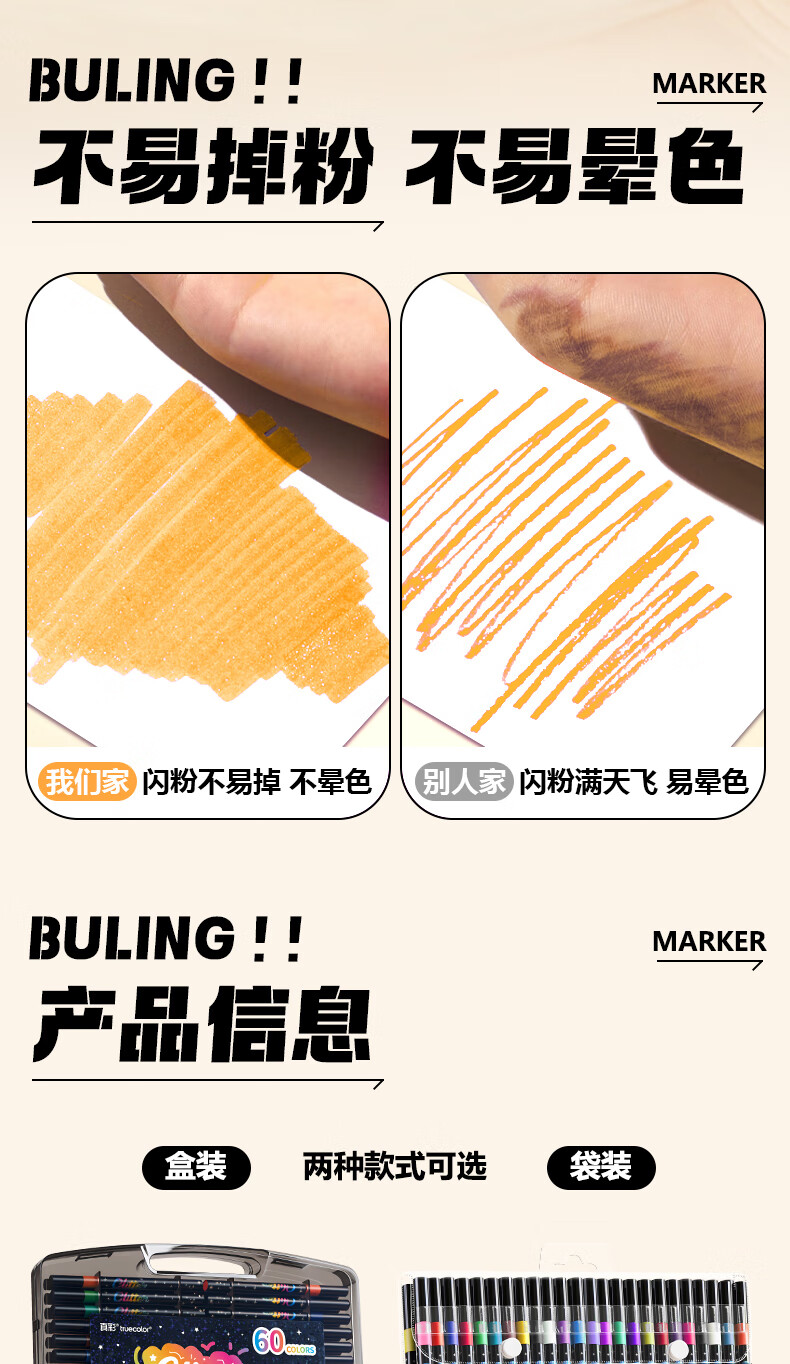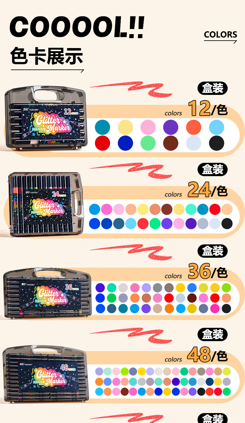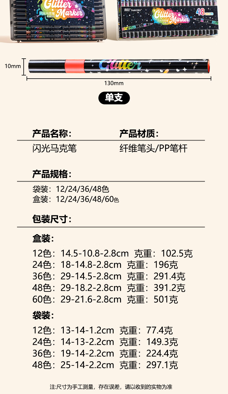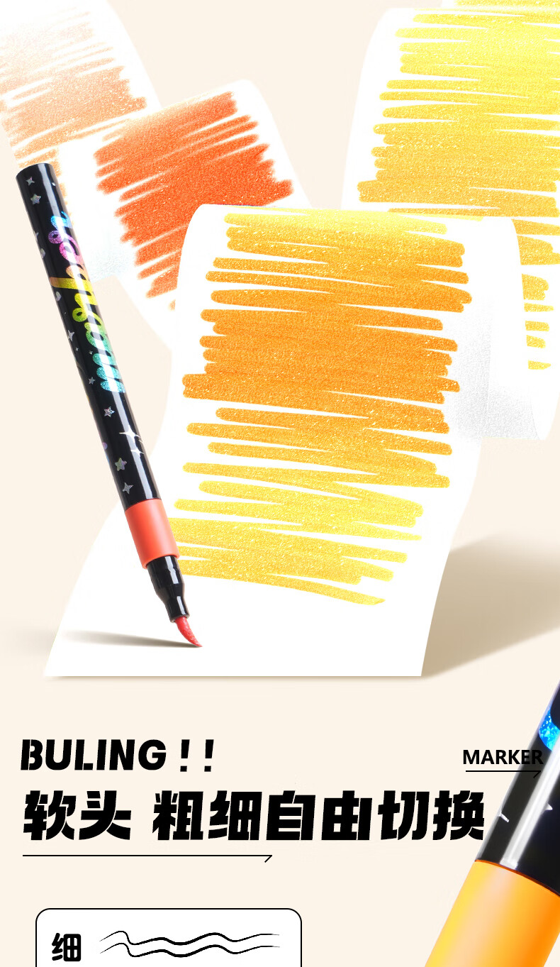 真彩(TRUECOLOR)12色闪光软头马克笔小学生美术专用幼儿园画画不透色可叠色爆闪水性彩色笔儿童无毒款珠光流沙6606