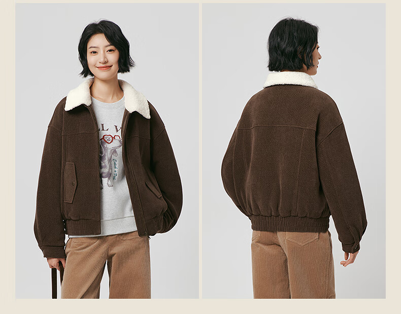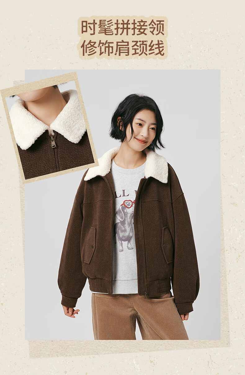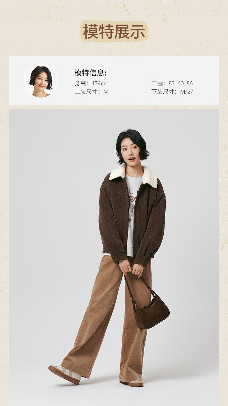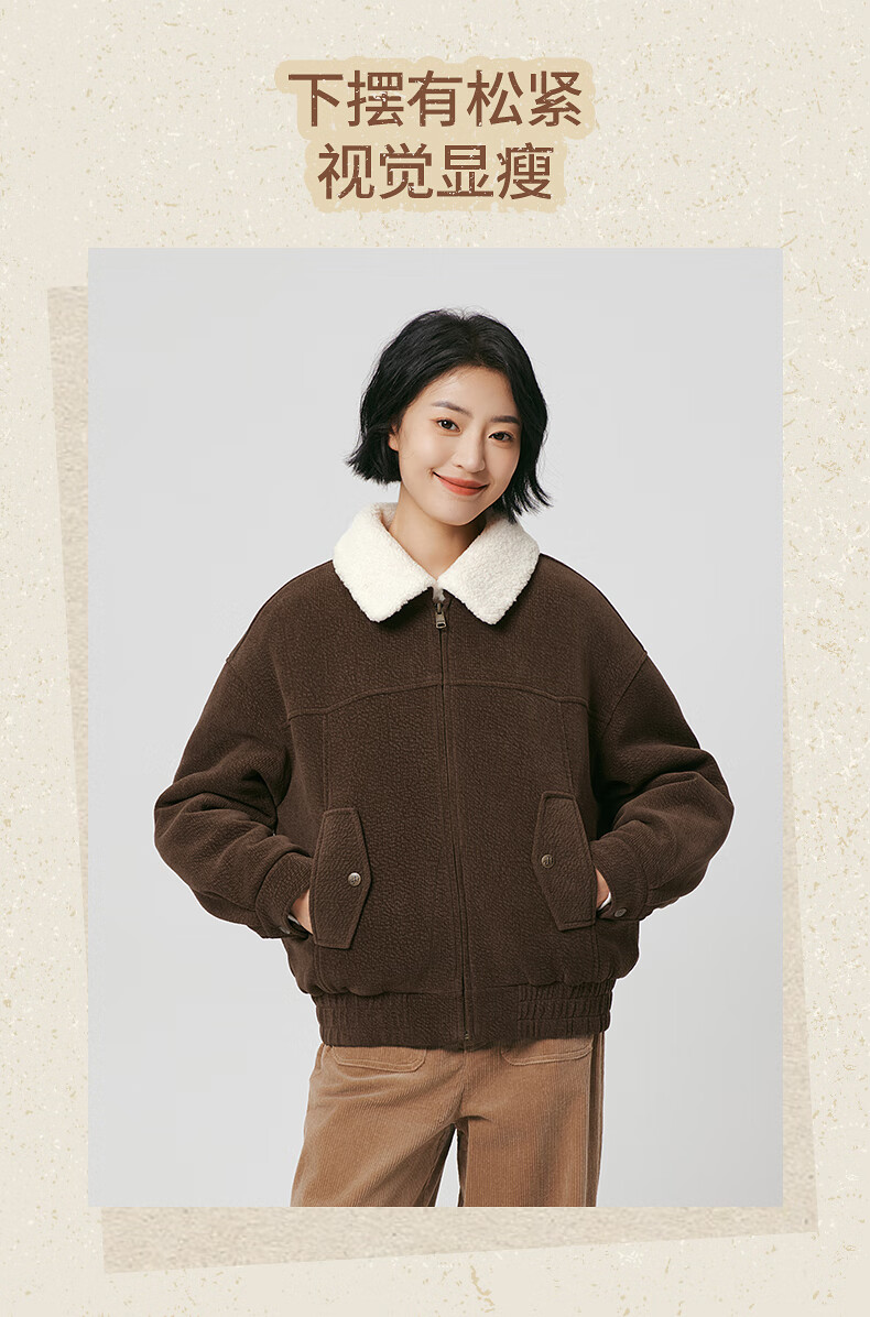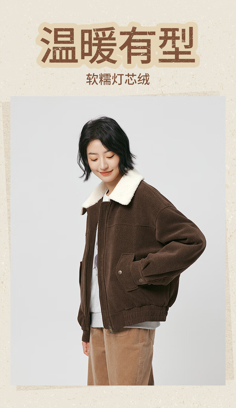 热风(Hotwind)【商场同款】女士夹克棉衣2025年冬季新款潮流翻领灯芯绒复古外套 16浅棕 S