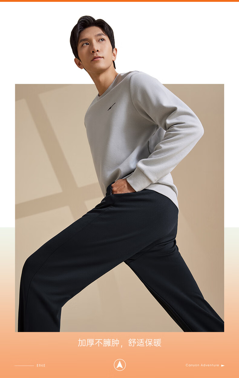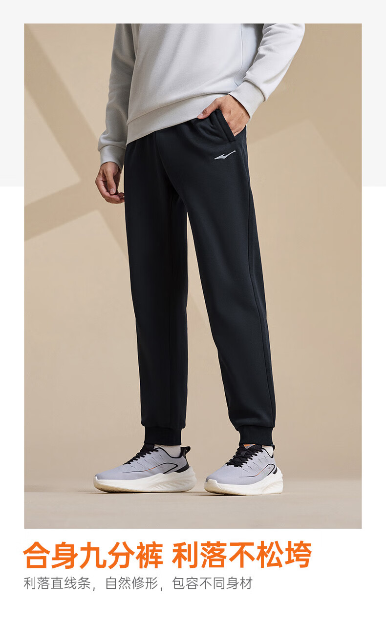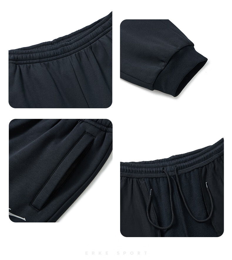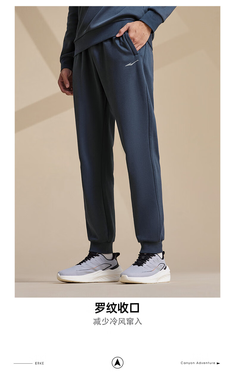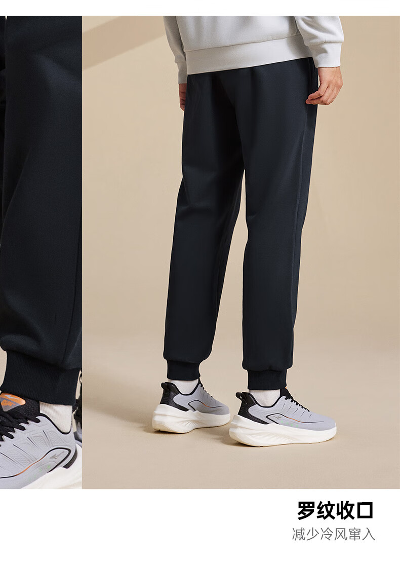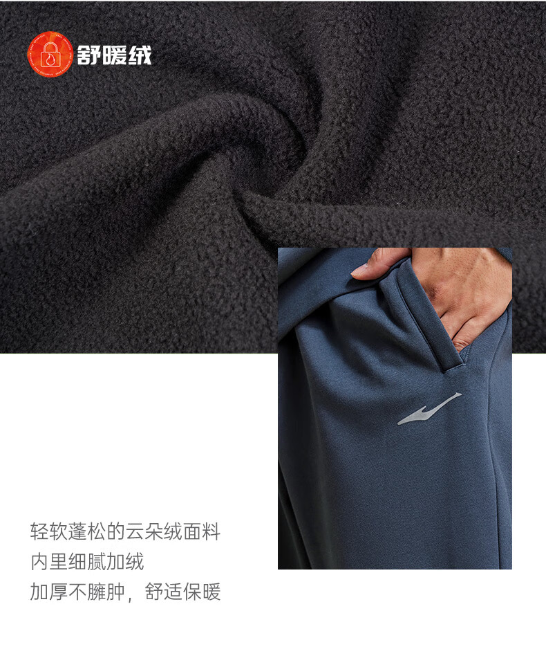 鸿星尔克运动裤男秋冬加厚加绒针织长裤束脚收口跑步男裤保暖休闲裤子男