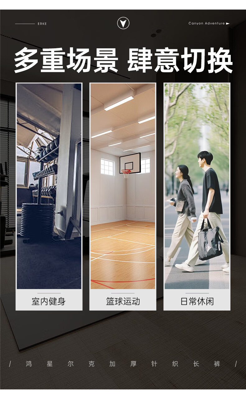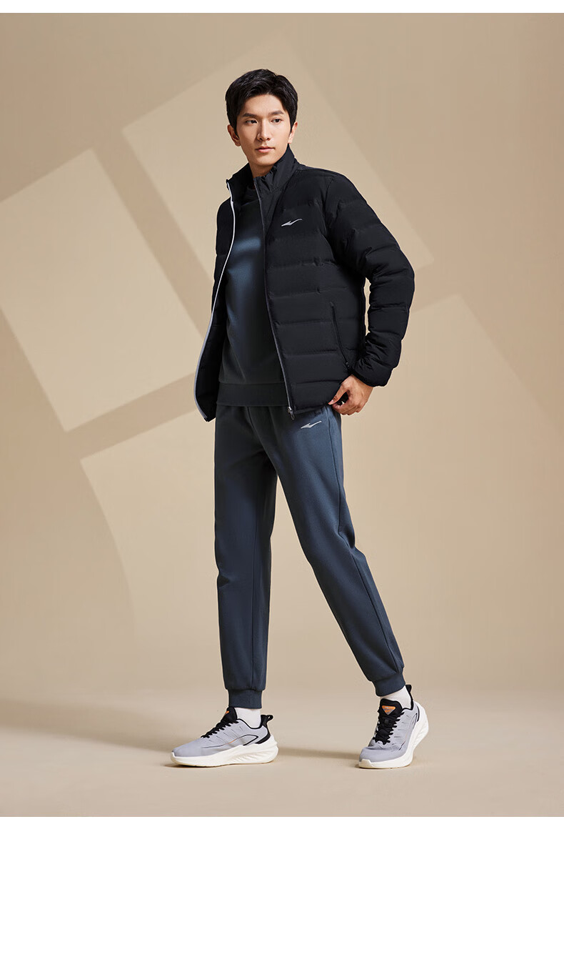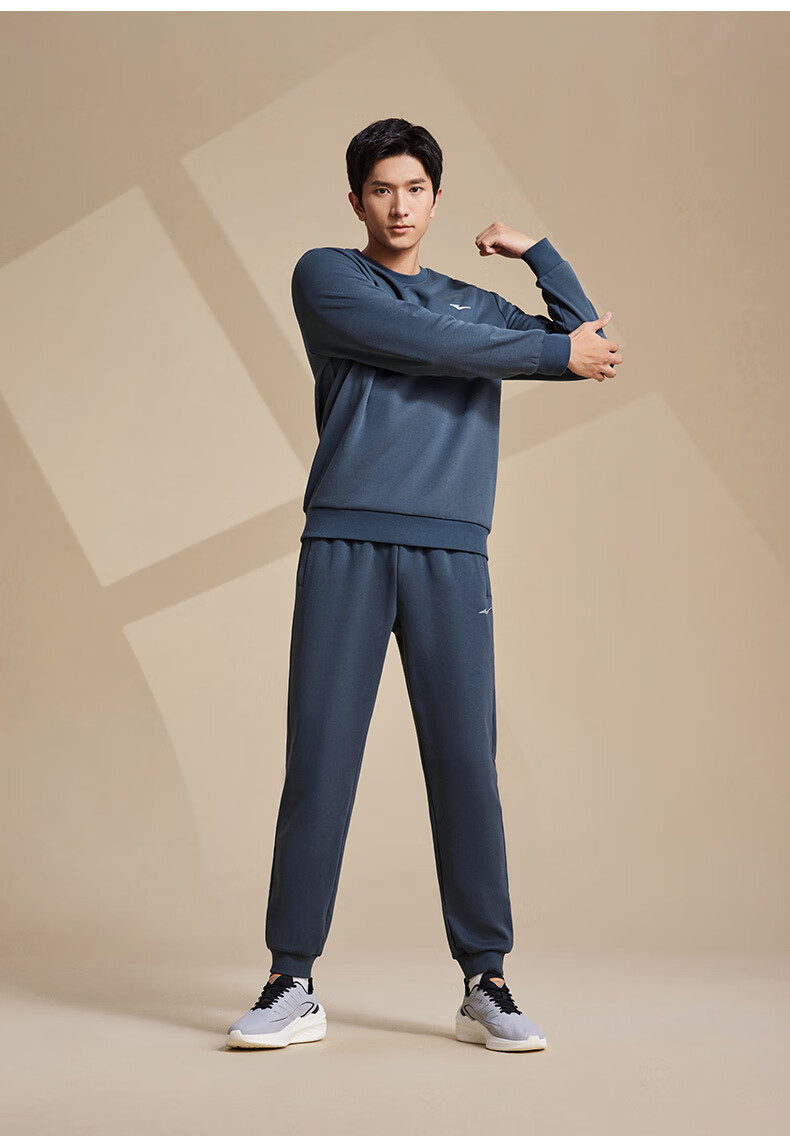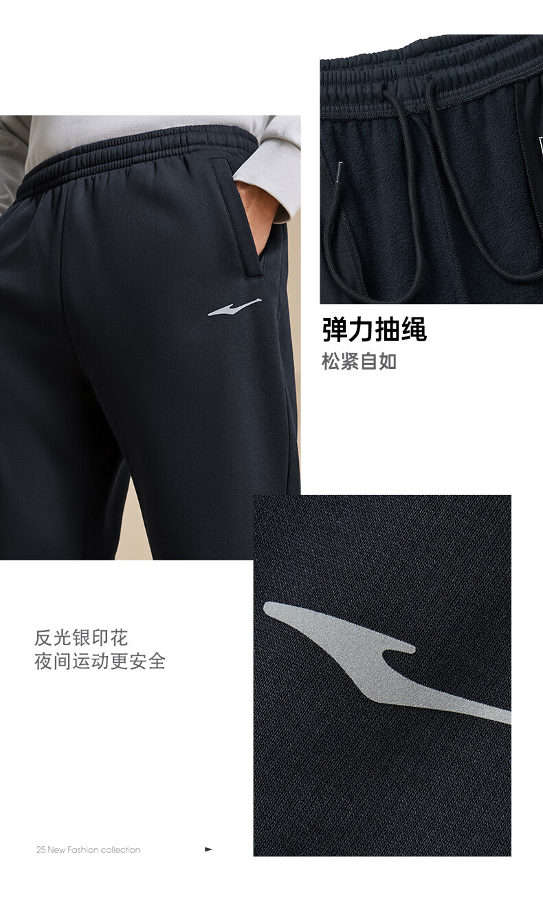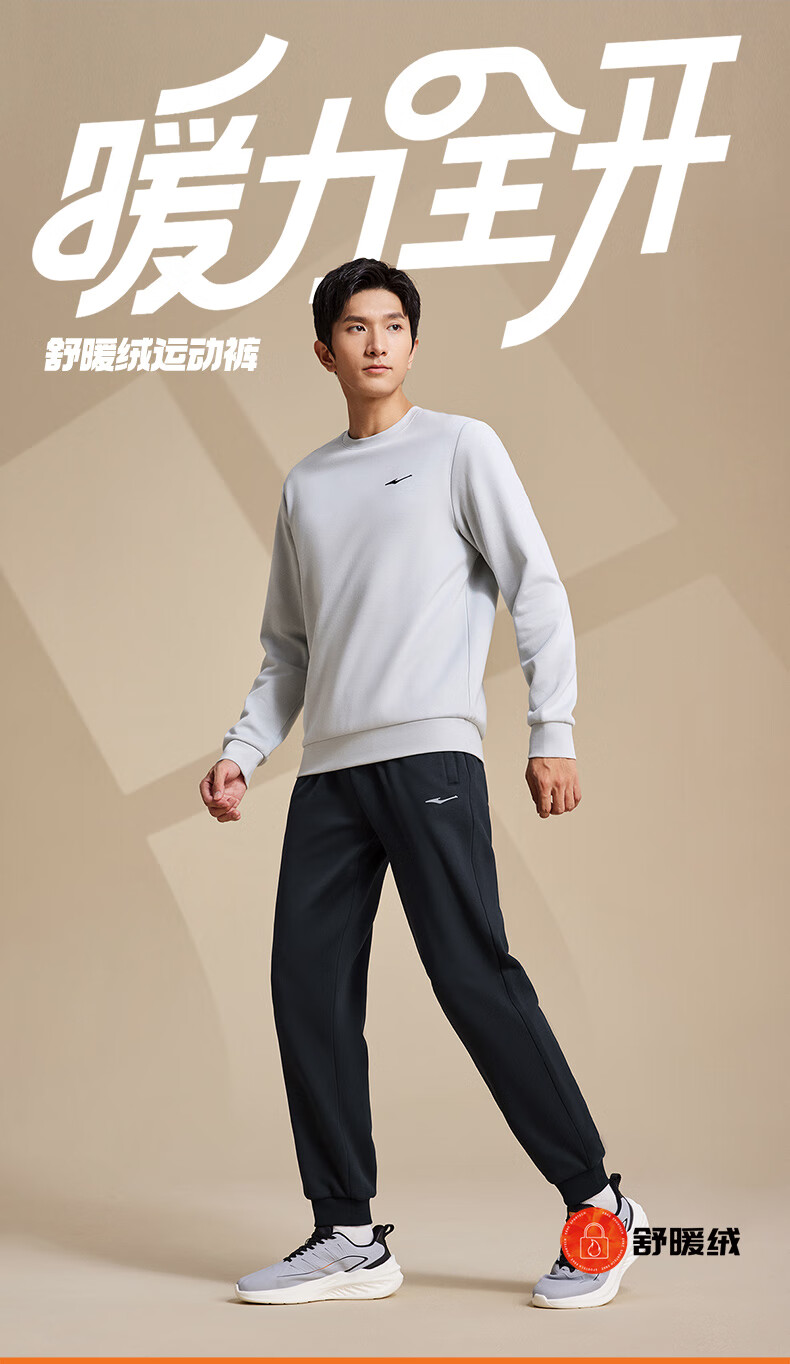 鸿星尔克运动裤男秋冬加厚加绒针织长裤束脚收口跑步男裤保暖休闲裤子男