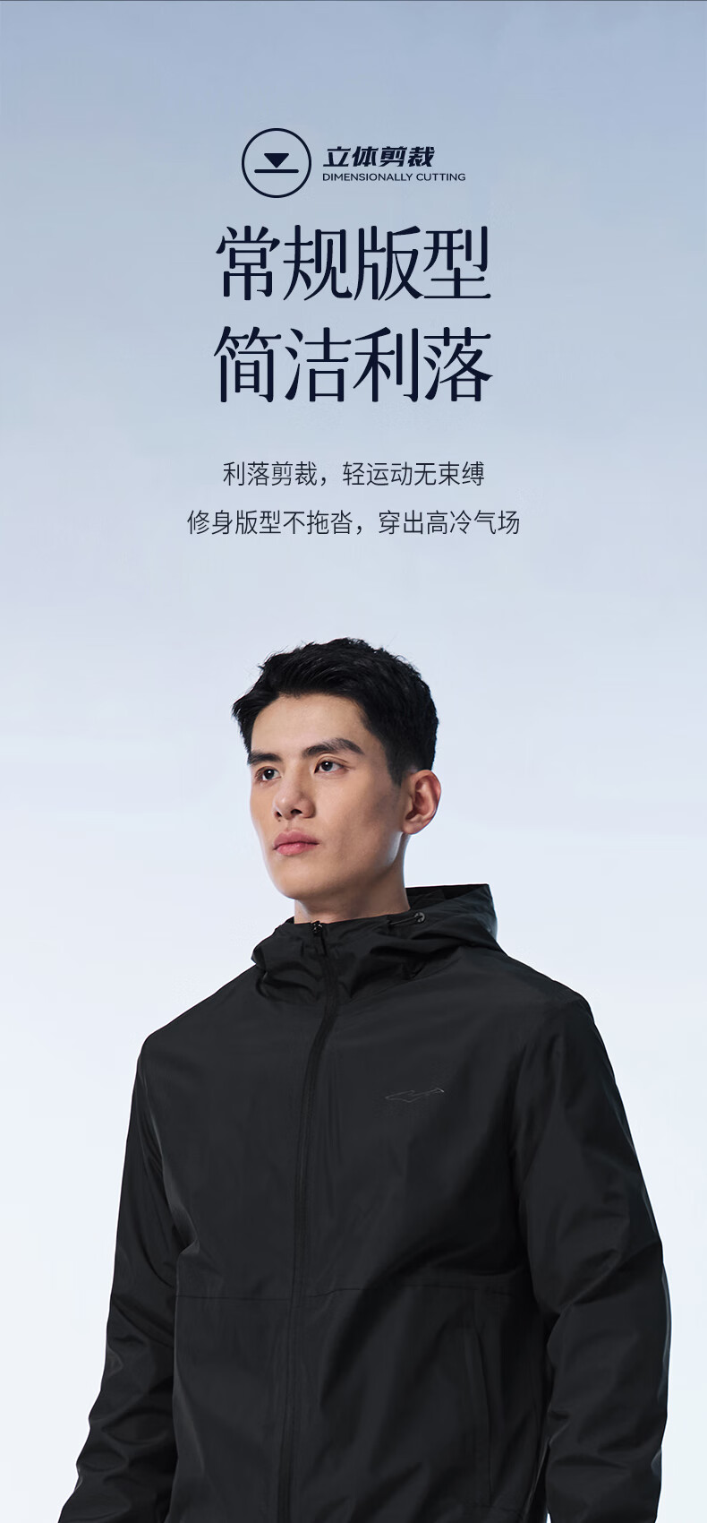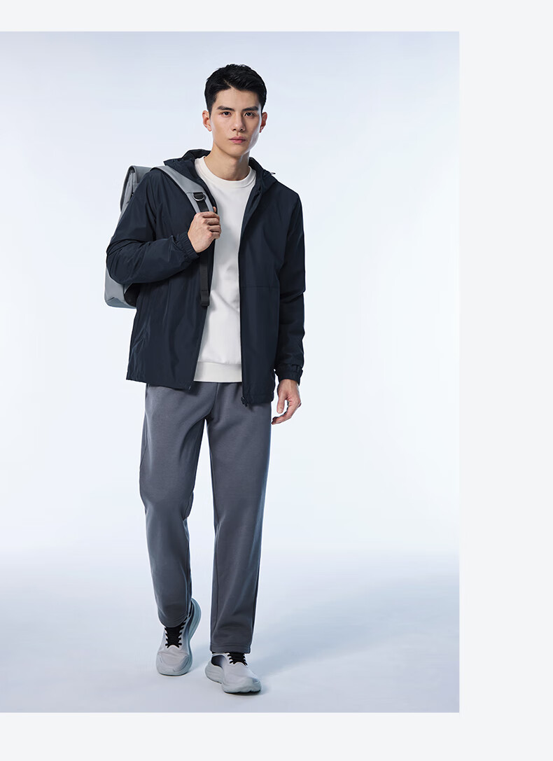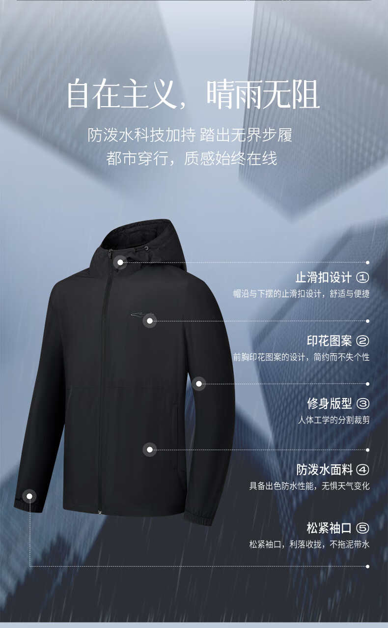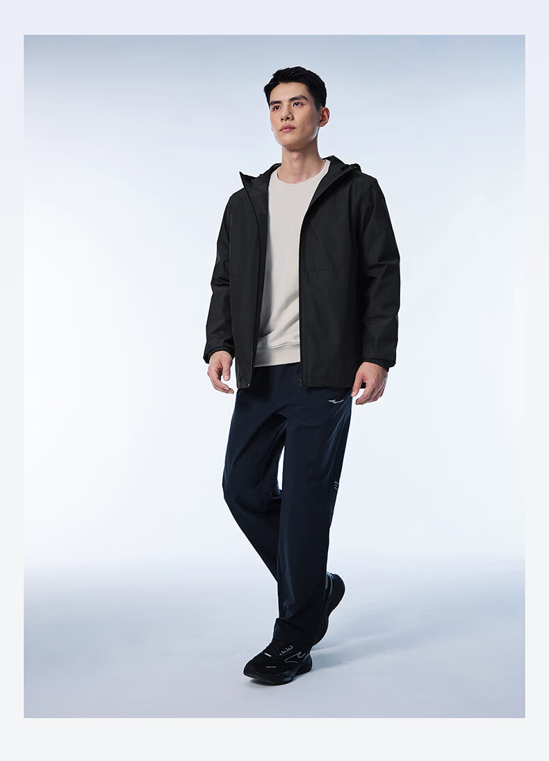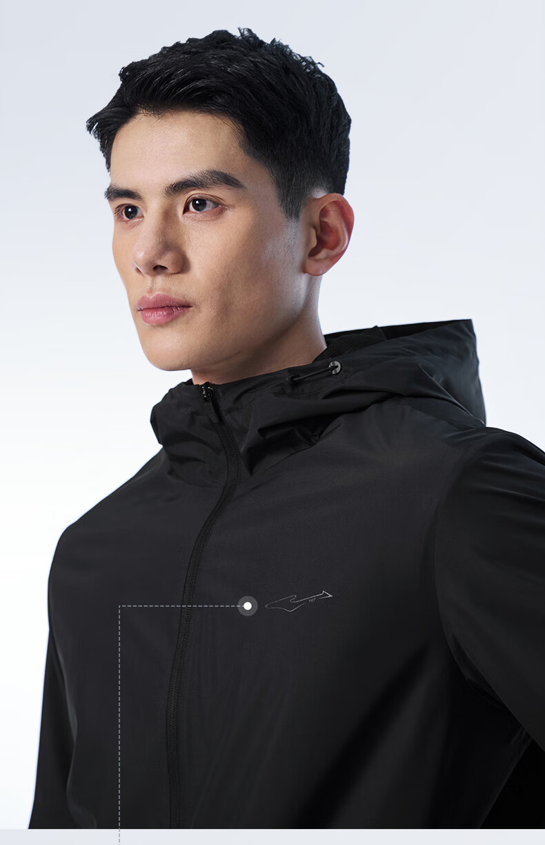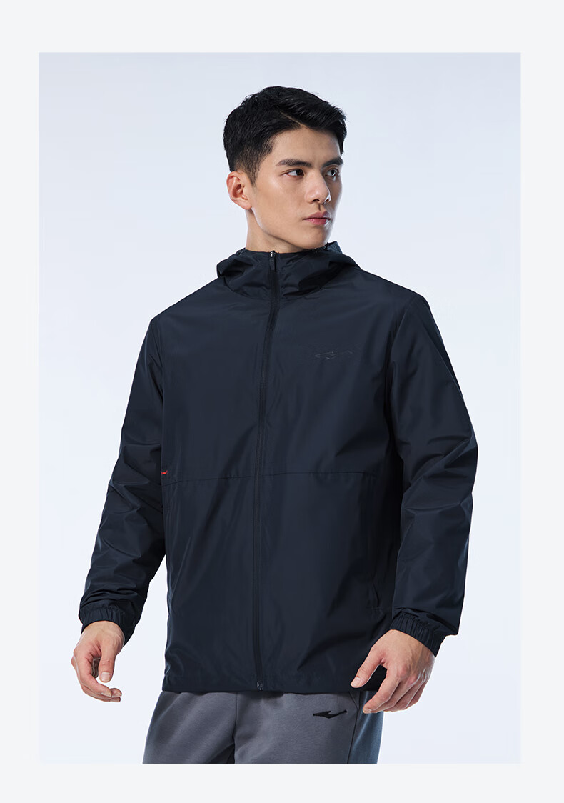 鸿星尔克防泼水夹克风衣外套秋季新品连帽上衣防风骑行慢跑服时尚百搭男装
