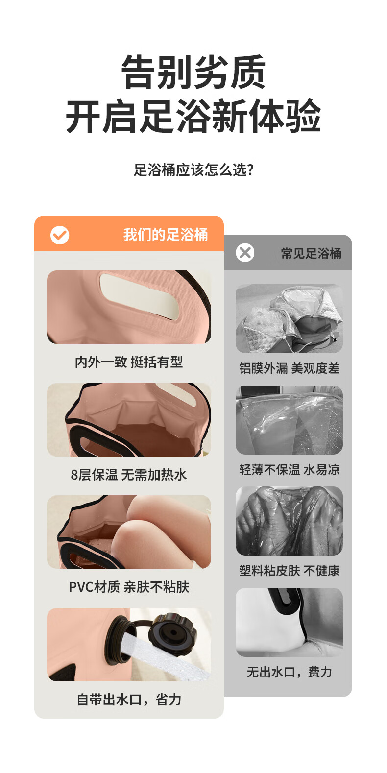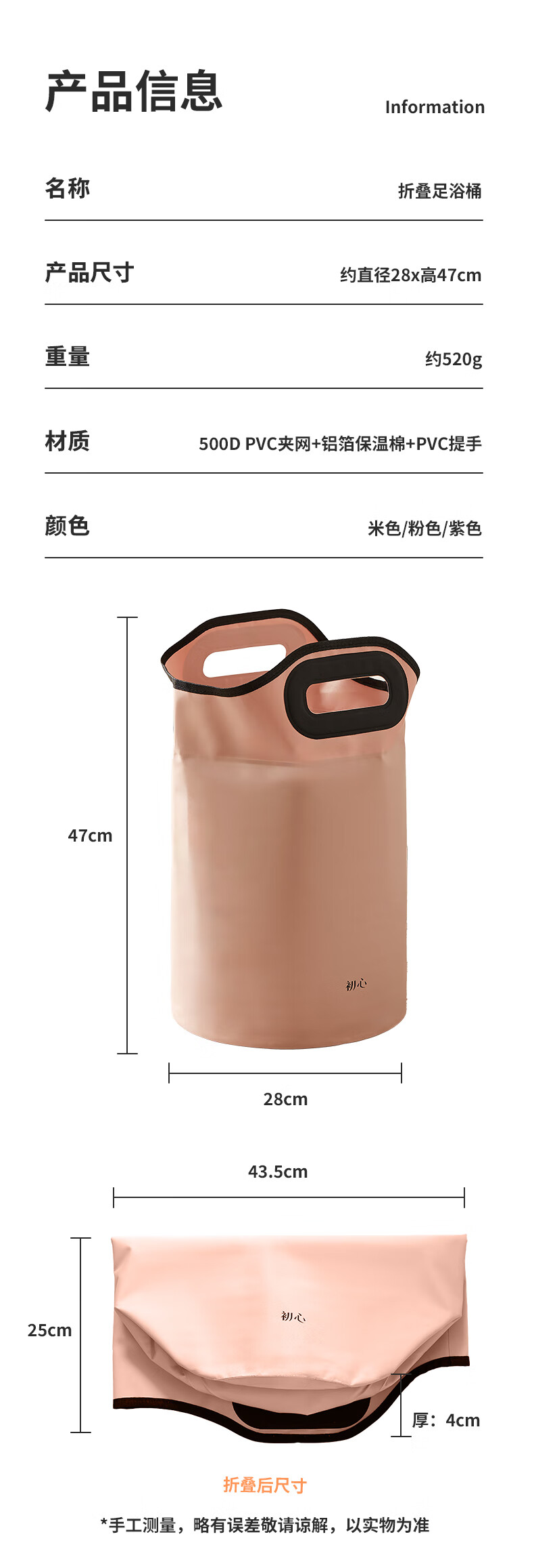 初心可折叠泡脚桶加厚保温便携式加高桶泡脚养生袋洗脚桶足浴盆过小腿