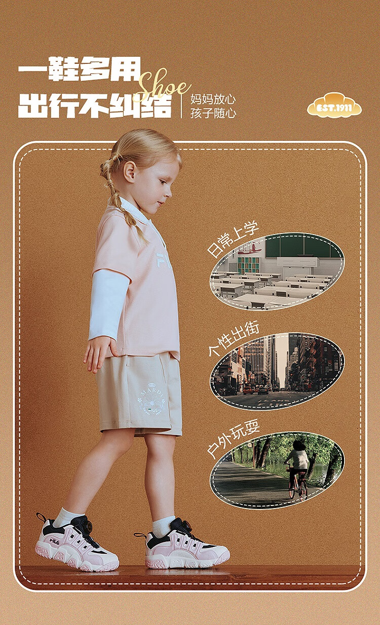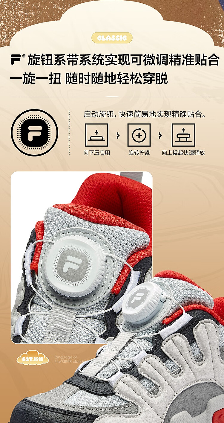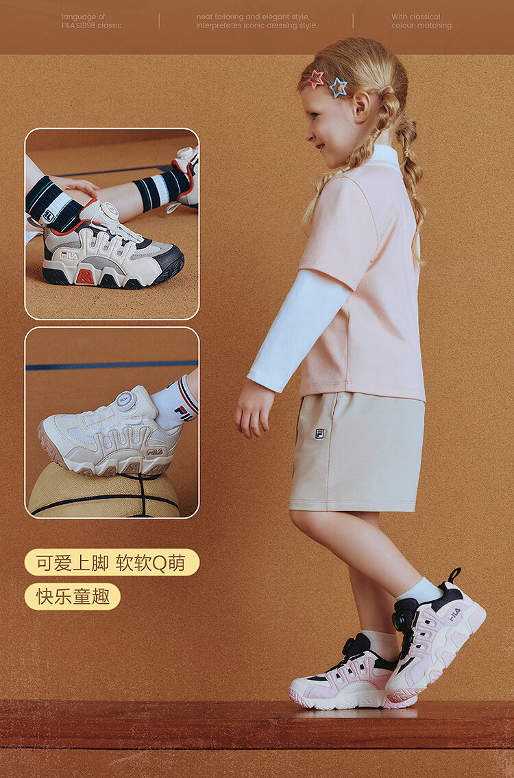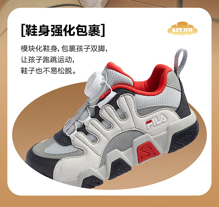 FILA斐乐可颂童鞋儿童BOA旋钮运动鞋2025秋季男女小童篮球鞋