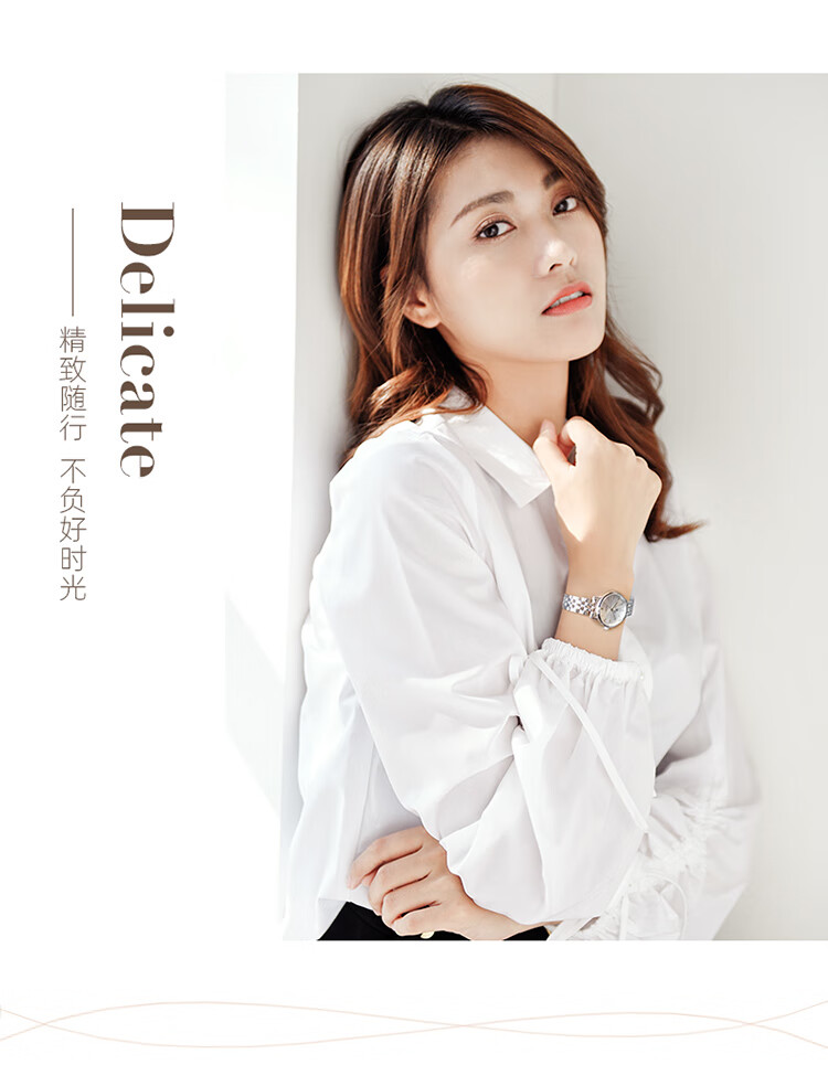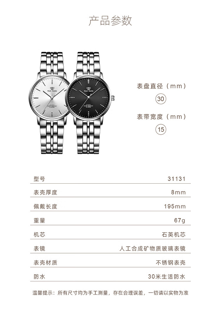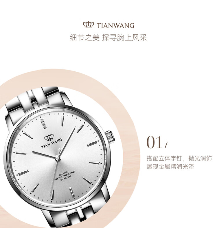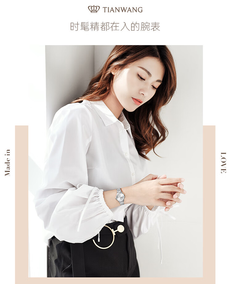 天王(TIAN WANG)手表女 生日礼物沧海系列简约钢带石英女表白色LS31131S.S.S