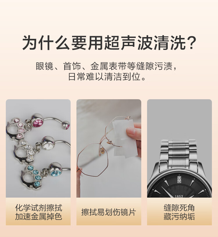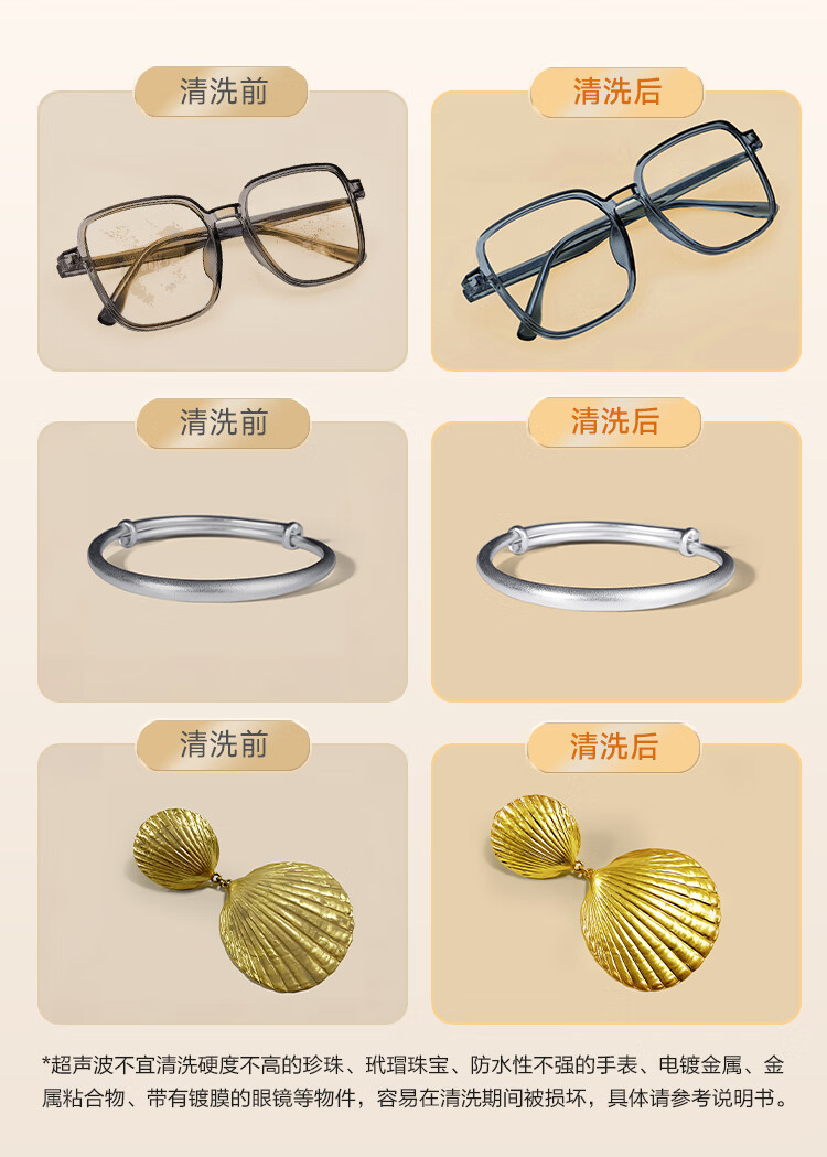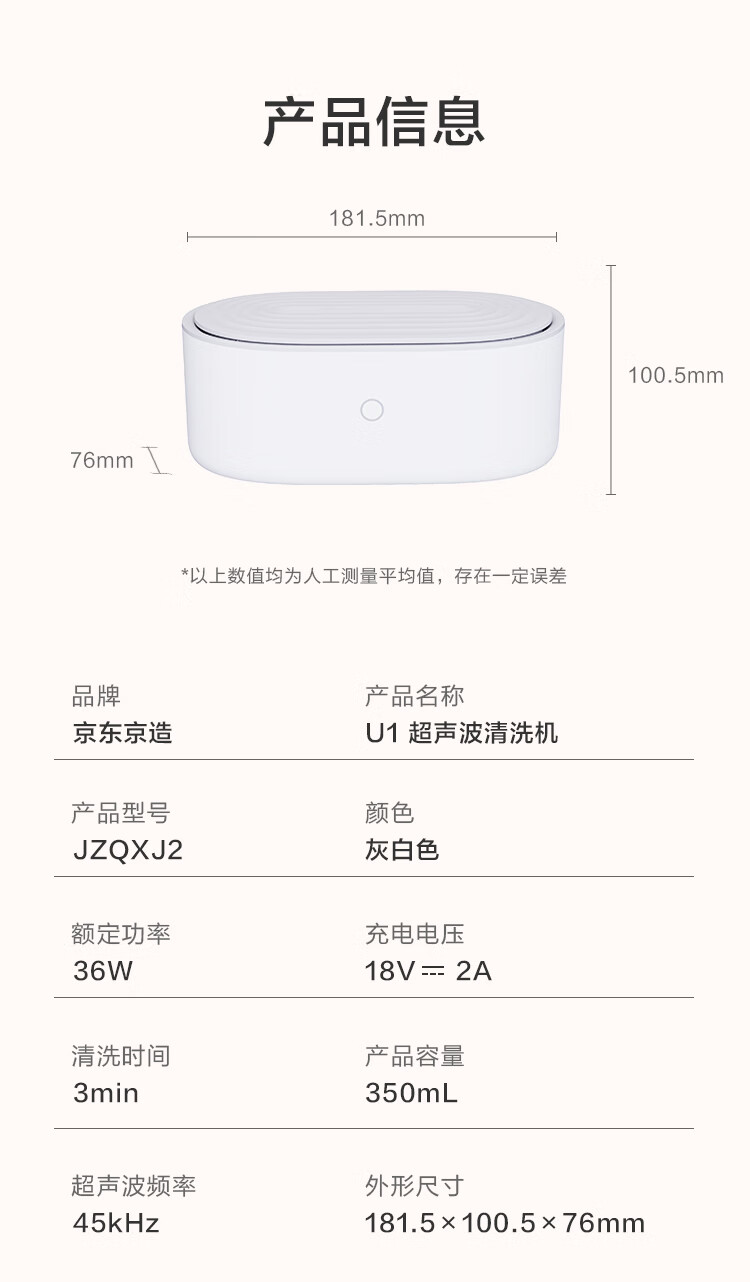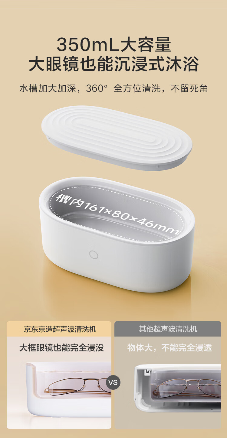 京东京造超声波清洗机 眼镜清洗机 首饰表带假牙牙套手表清洗机 全自动350ml容量家用便携 U1