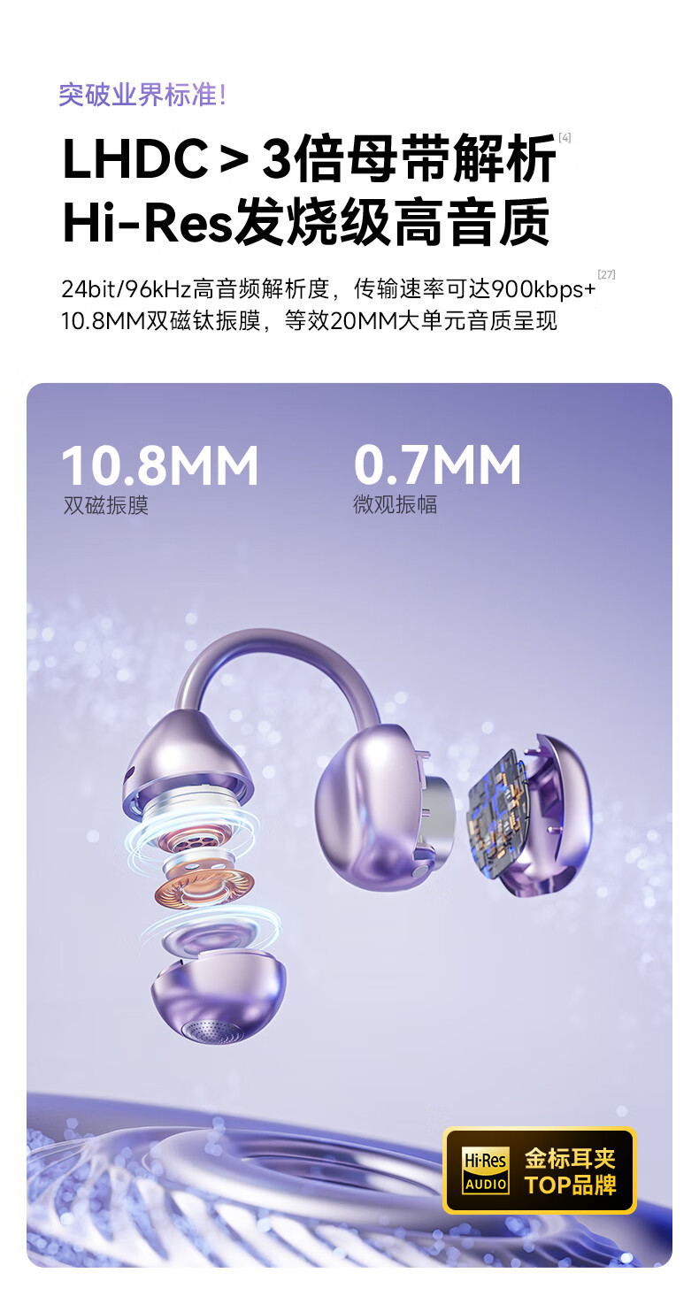 瓷音未来Mars X耳夹开放式真无线蓝牙耳机骨传导概念HiFi音质挂耳运动跑步通话降噪Pro适用于苹果安卓 云岩白