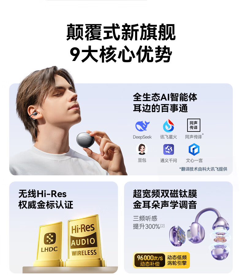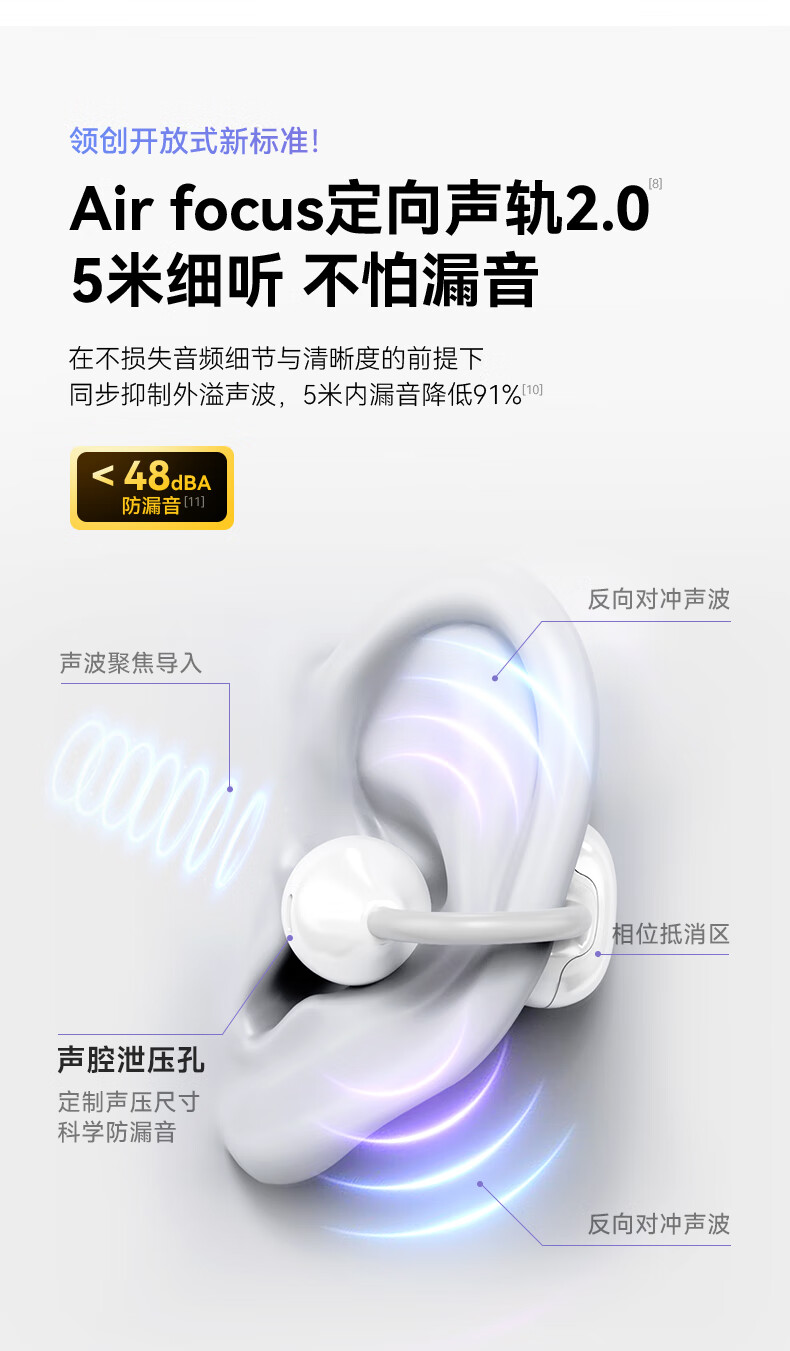 漫步者(EDIFIER)【2025新款】Comfo SE 开放式真无线蓝牙耳机 蓝牙V6.1 AI翻译 不入耳 运动跑步耳机 优雅白