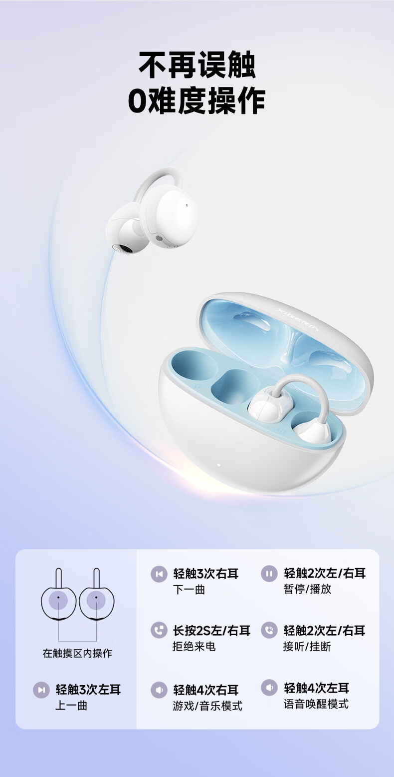 西伯利亚(XIBERIA)【明星同款】羽MC01蓝牙耳机耳夹式无线开放式运动耳机AI翻译耳机通话降噪骨传导挂耳珍珠白