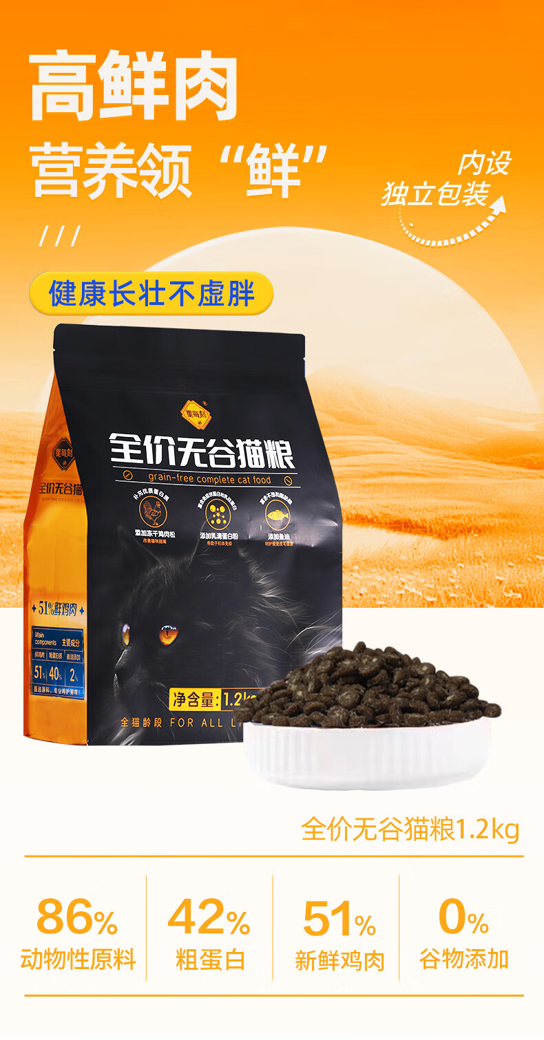 星每刻高品质鲜肉全价无谷猫粮全期干粮便携袋独立小包装 1.2千克(送1袋40克试吃装)