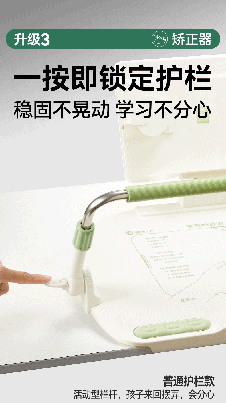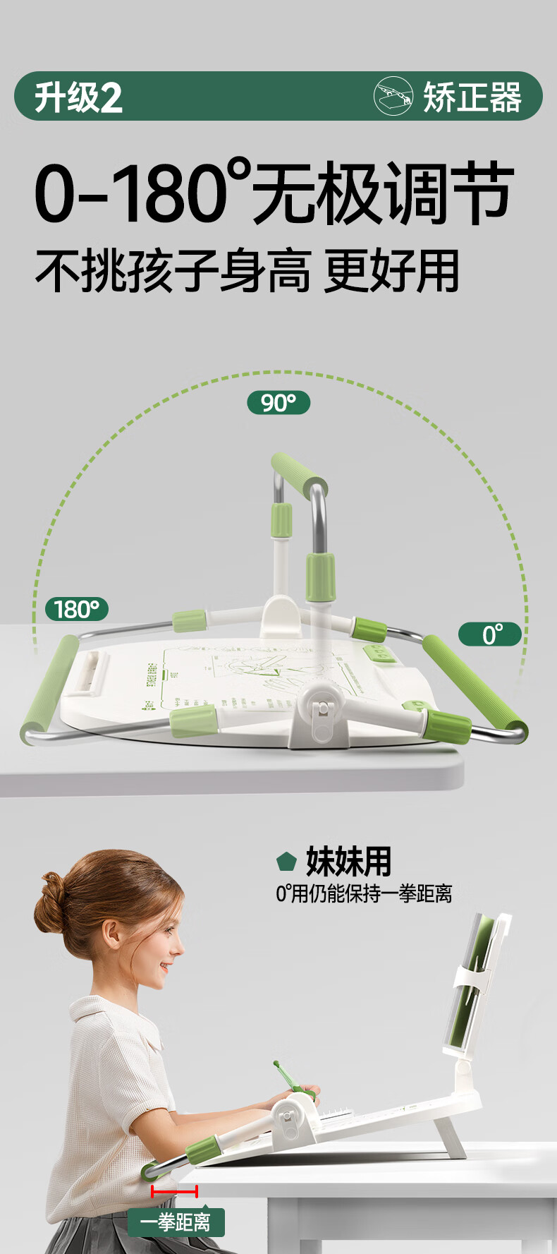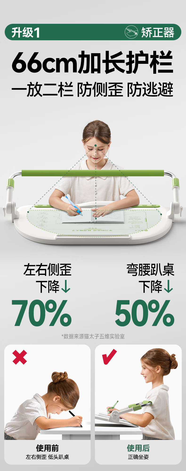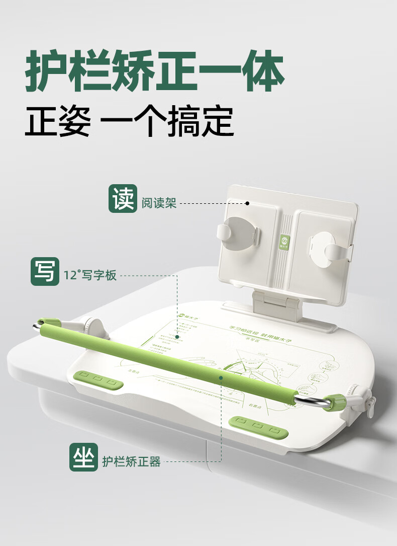 猫太子护栏坐姿矫正器儿童防低头写字矫正器小学生保护近视弯腰驼背幼儿姿势学习纠正阅读支架读写台 绿