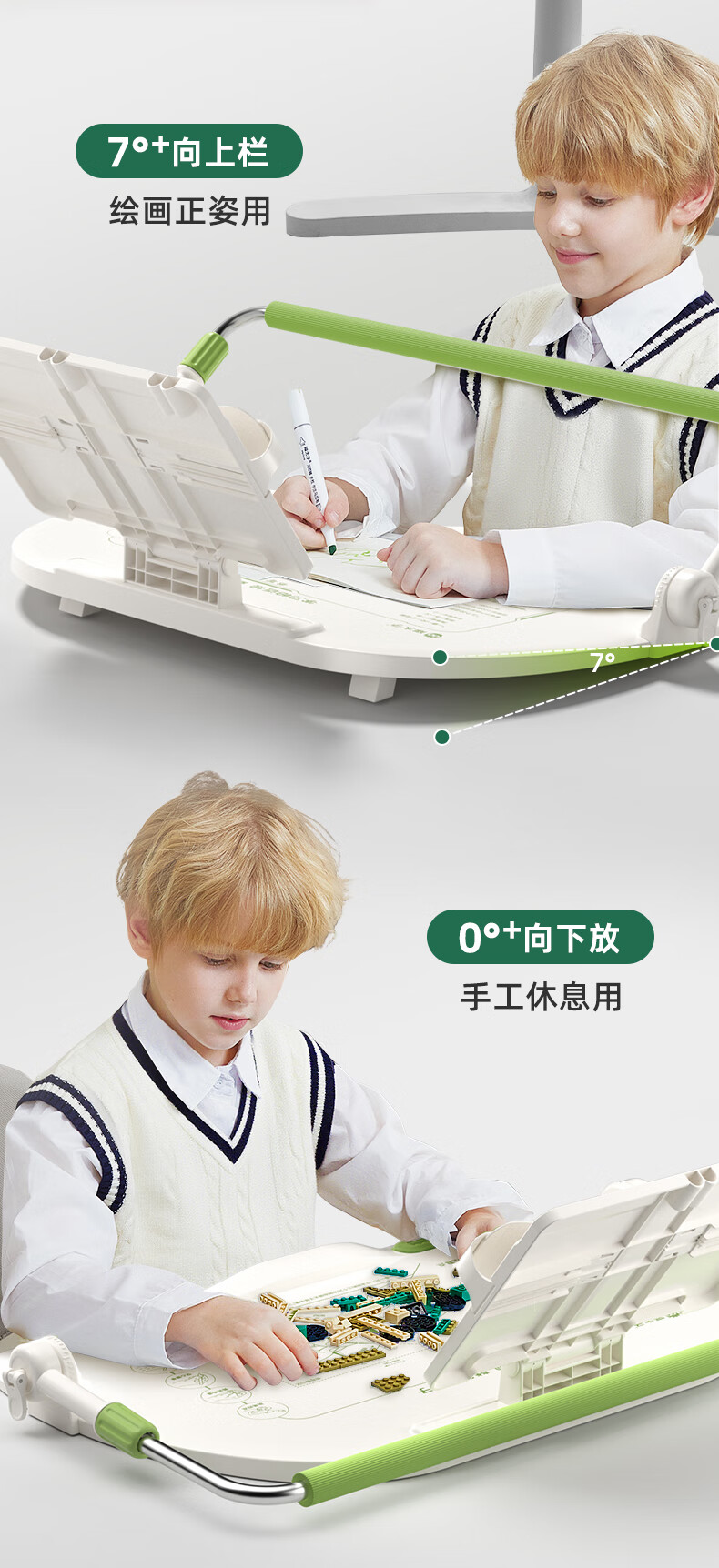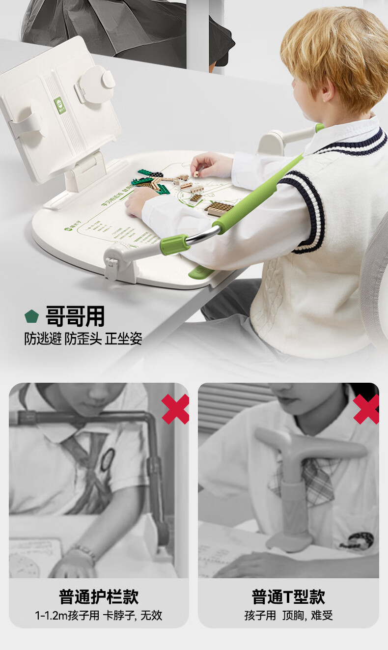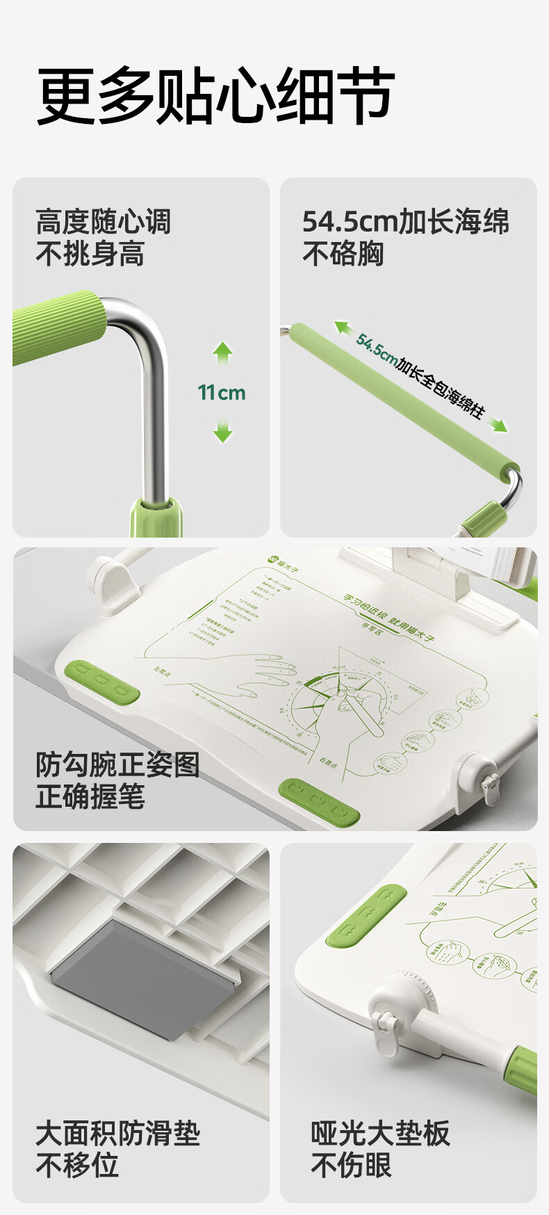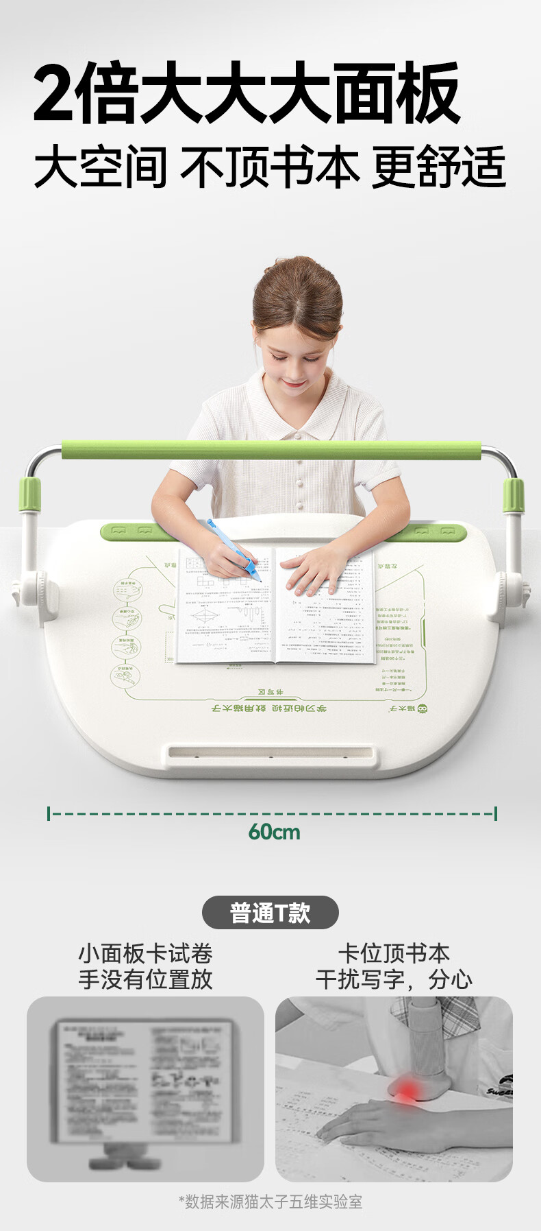 猫太子护栏坐姿矫正器儿童防低头写字矫正器小学生保护近视弯腰驼背幼儿姿势学习纠正阅读支架读写台 绿