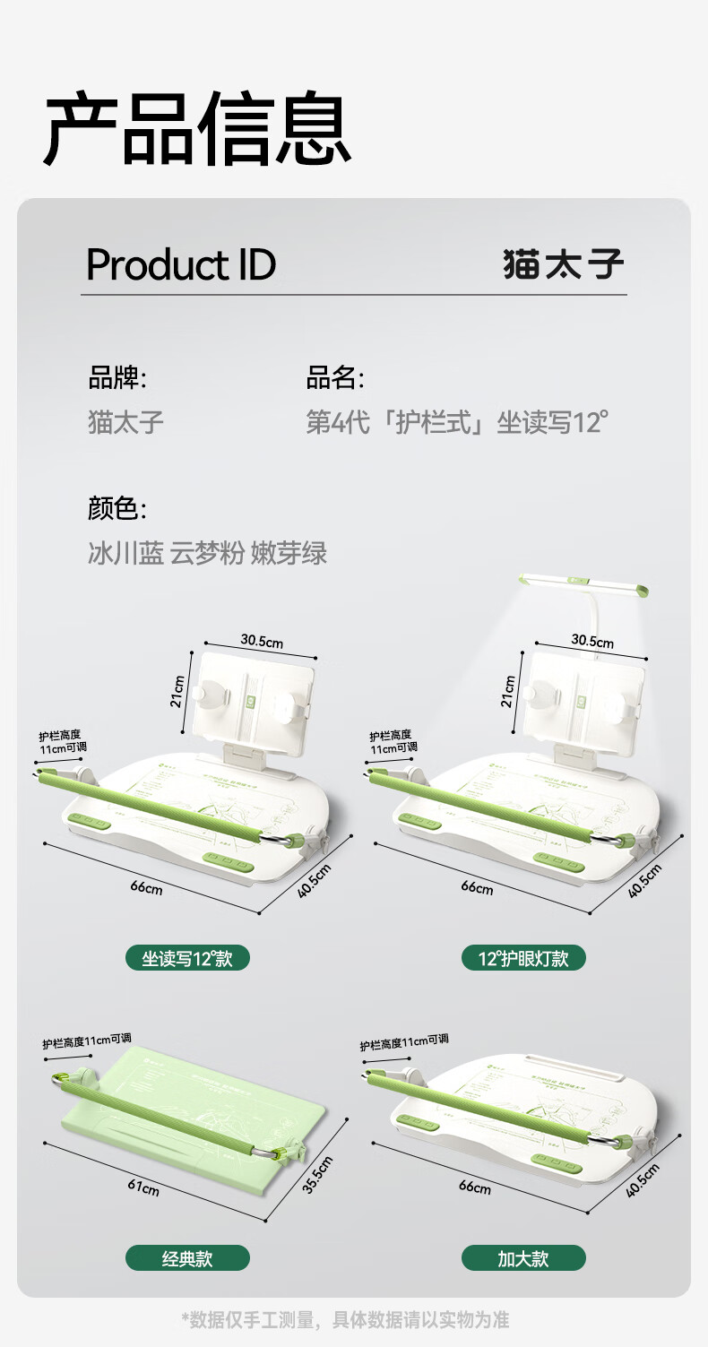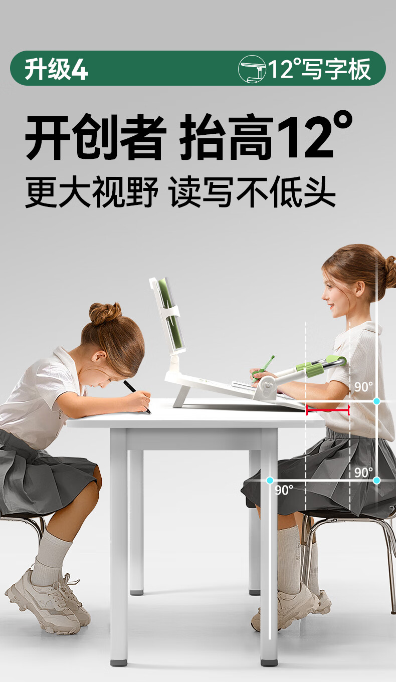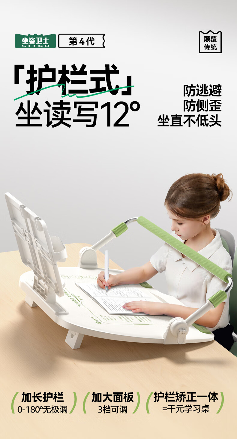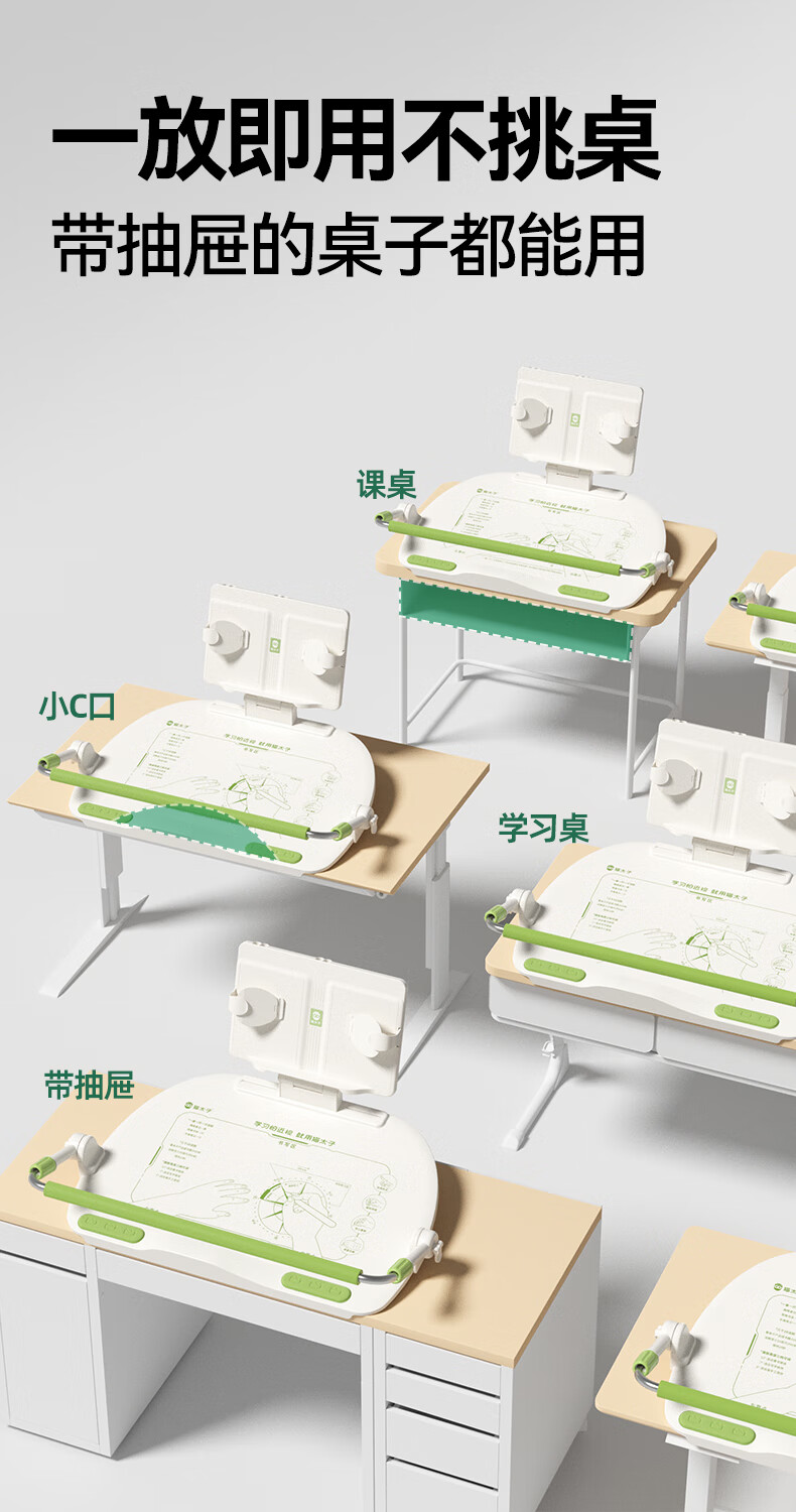 猫太子护栏坐姿矫正器儿童防低头写字矫正器小学生保护近视弯腰驼背幼儿姿势学习纠正阅读支架读写台 绿