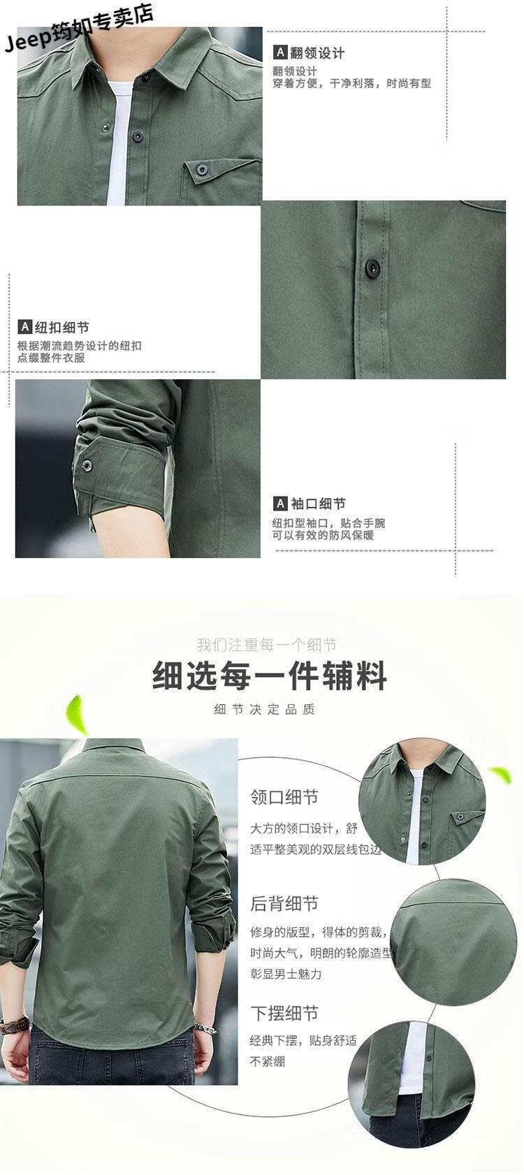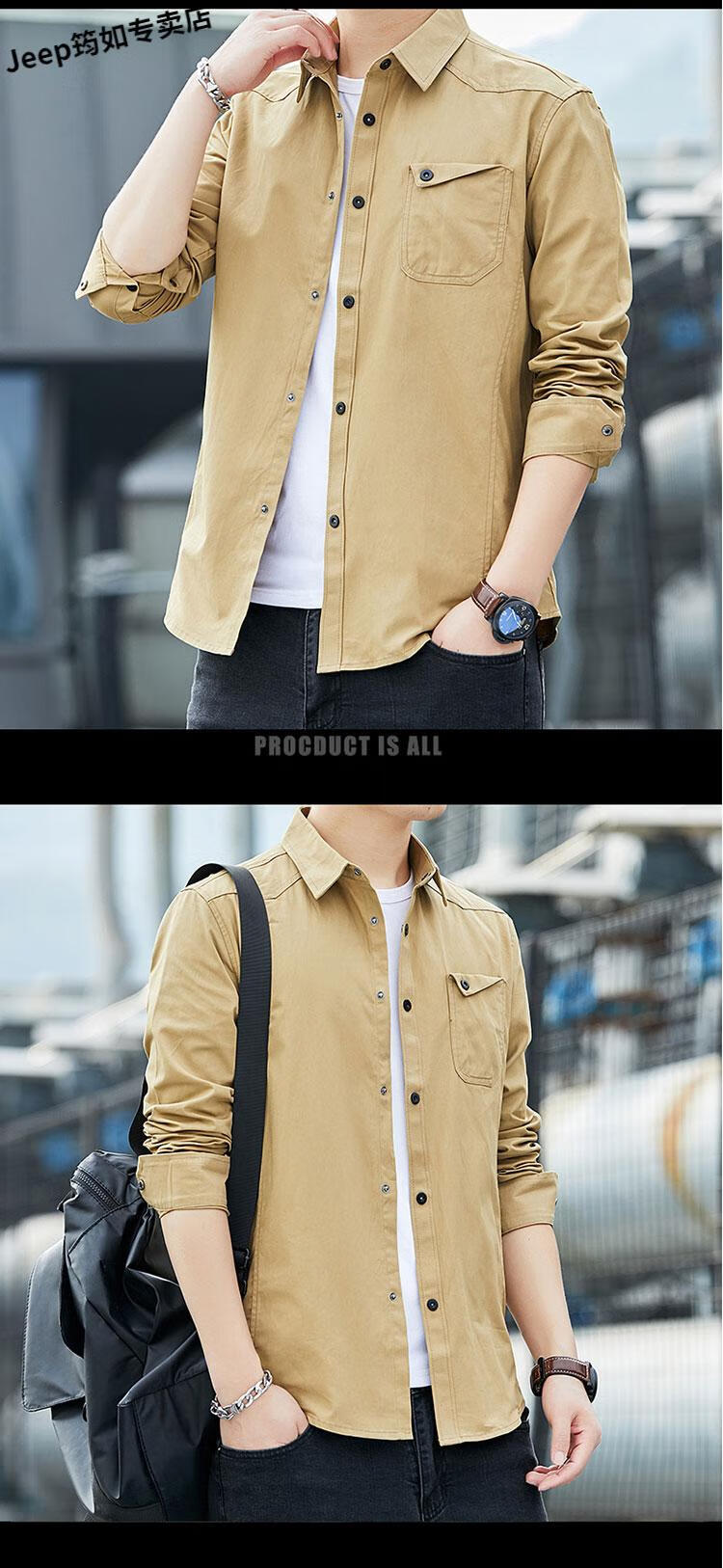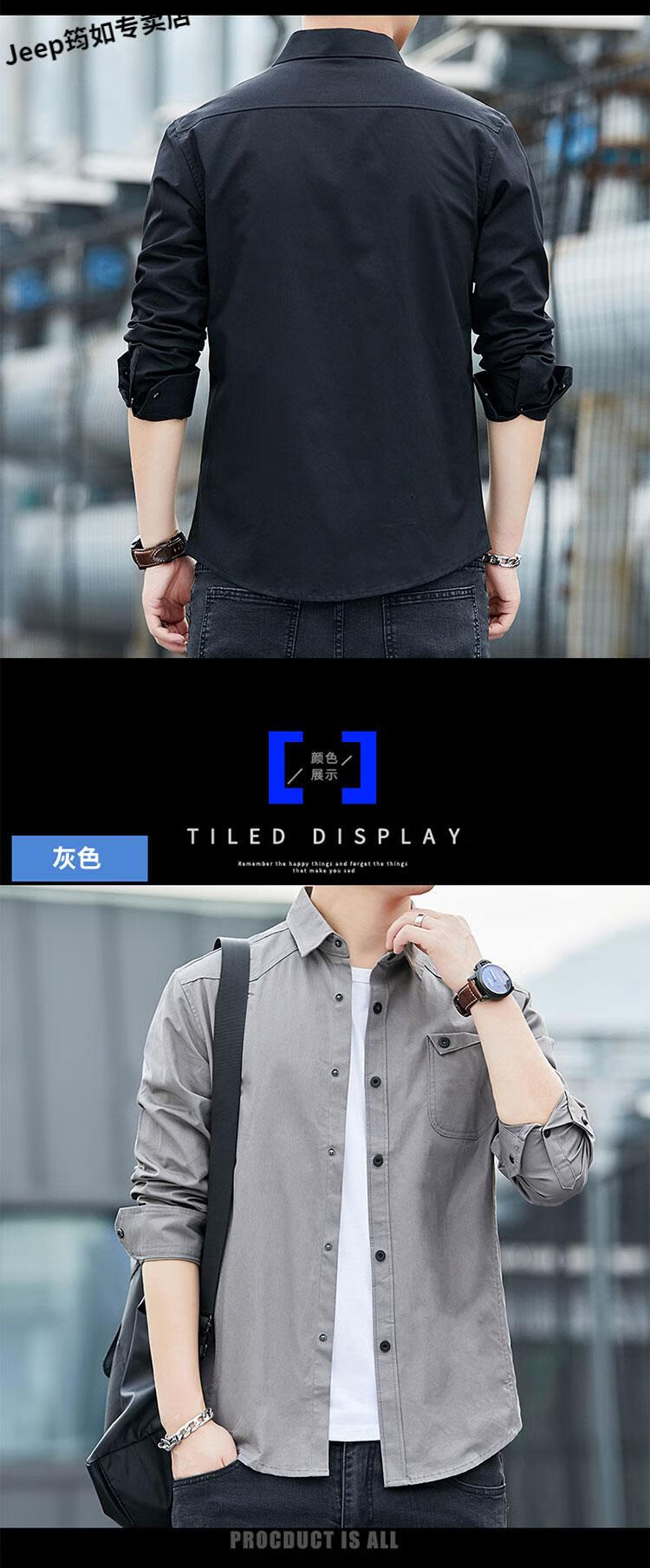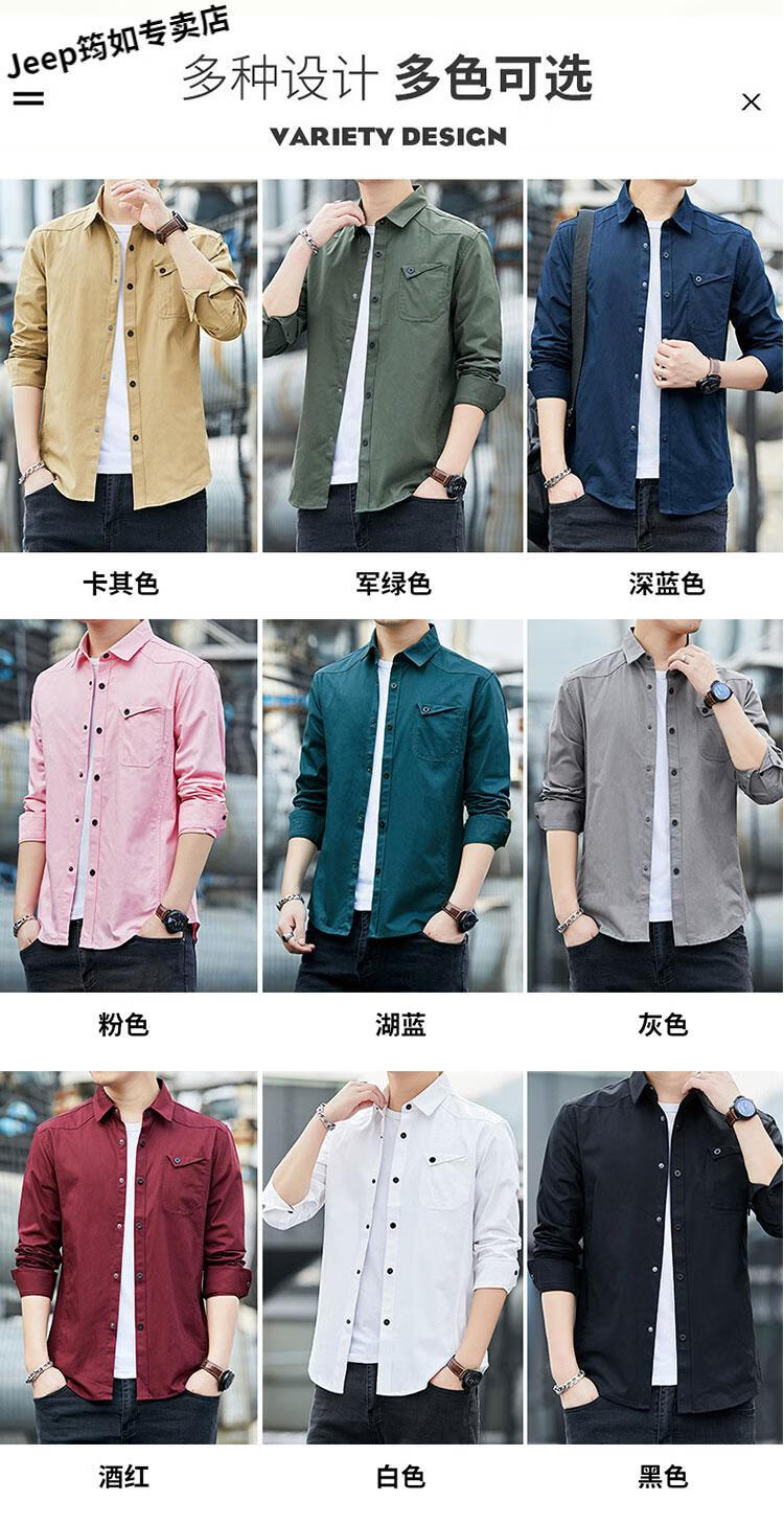 吉普(JEEP)男士2025春秋季长袖衬衫修身尖领纯色上衣日常休闲纯棉商务外套 307黑色 XL