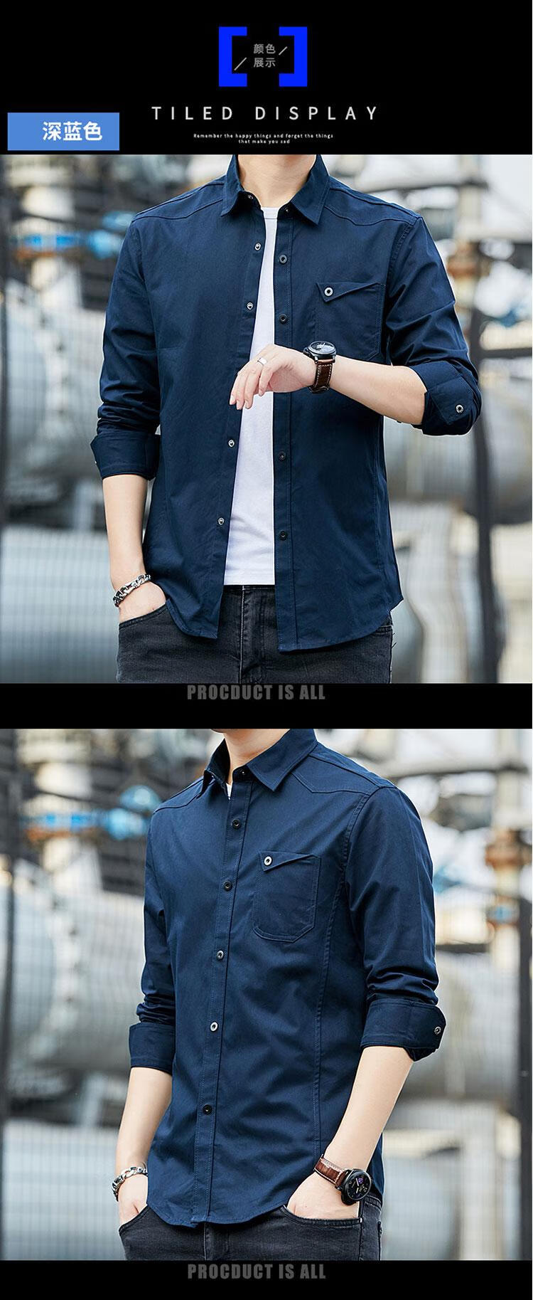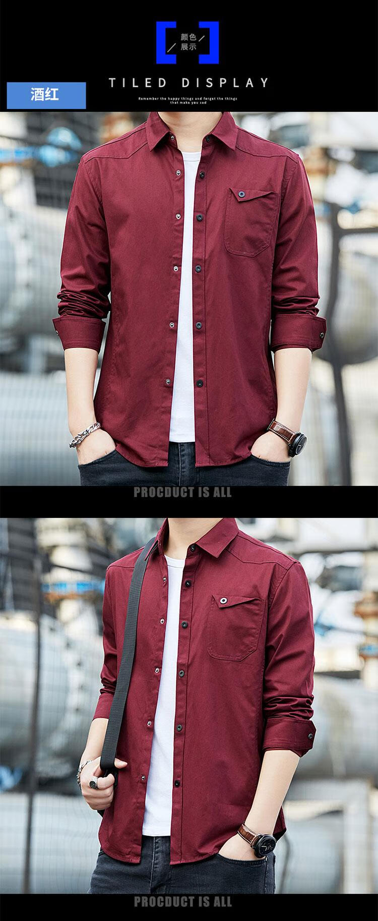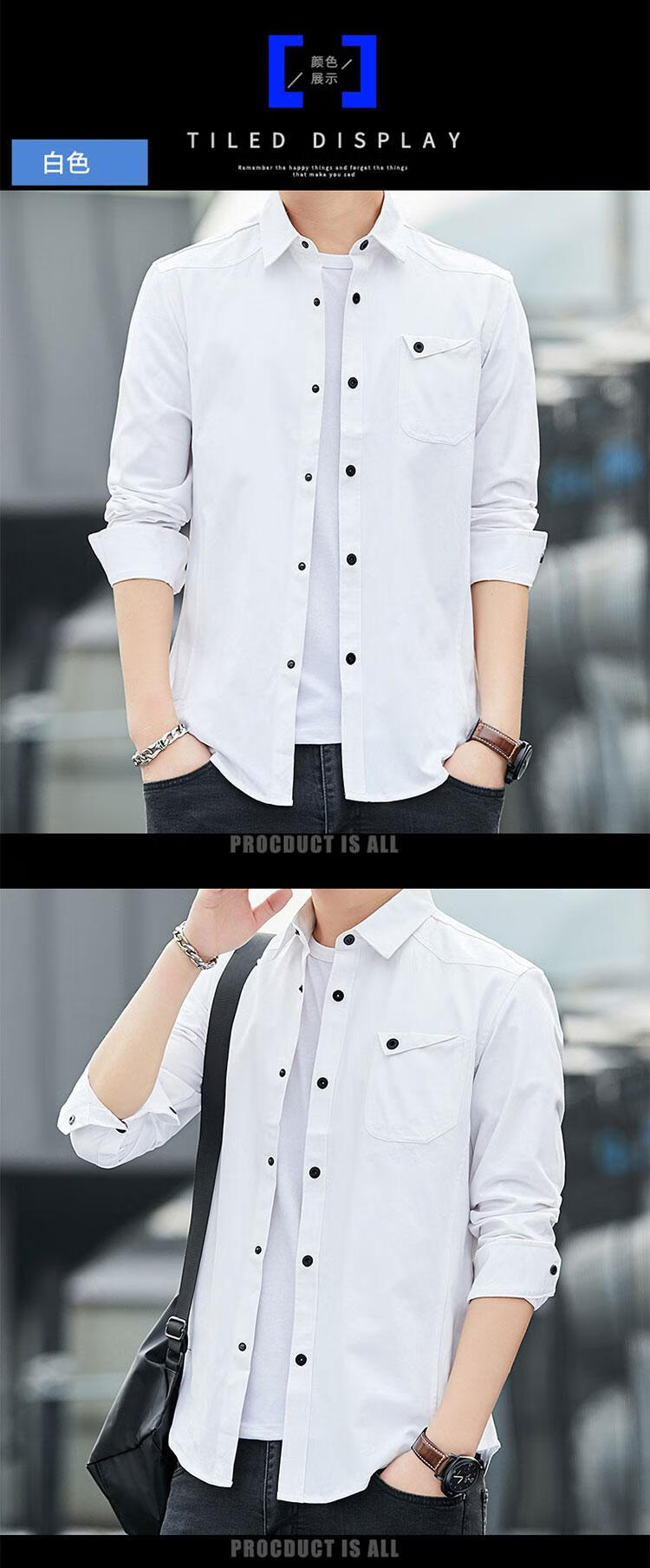 吉普(JEEP)男士2025春秋季长袖衬衫修身尖领纯色上衣日常休闲纯棉商务外套 307黑色 XL