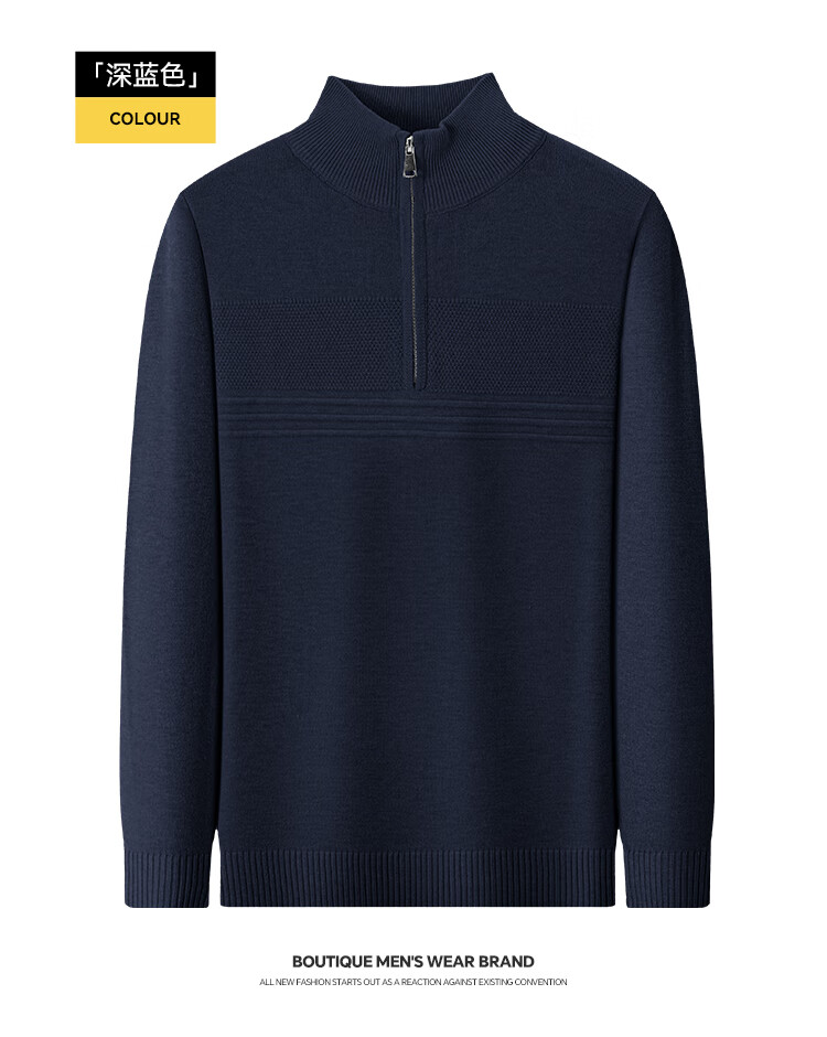 kainifu秋冬新款针织打底衫男中老年爸爸装商务休闲半拉链圆领套头保暖 2022-黑色 3XL
