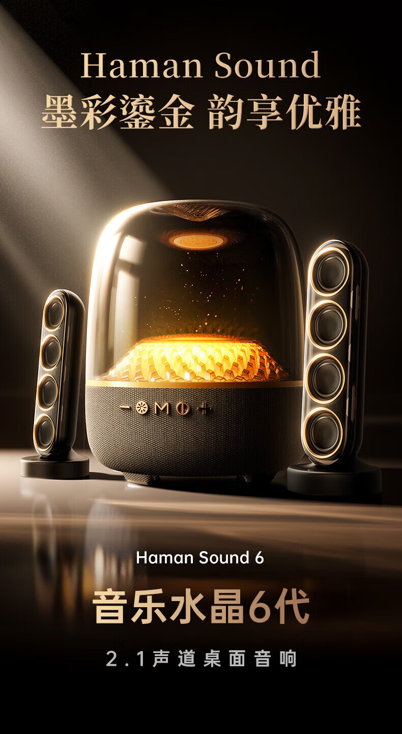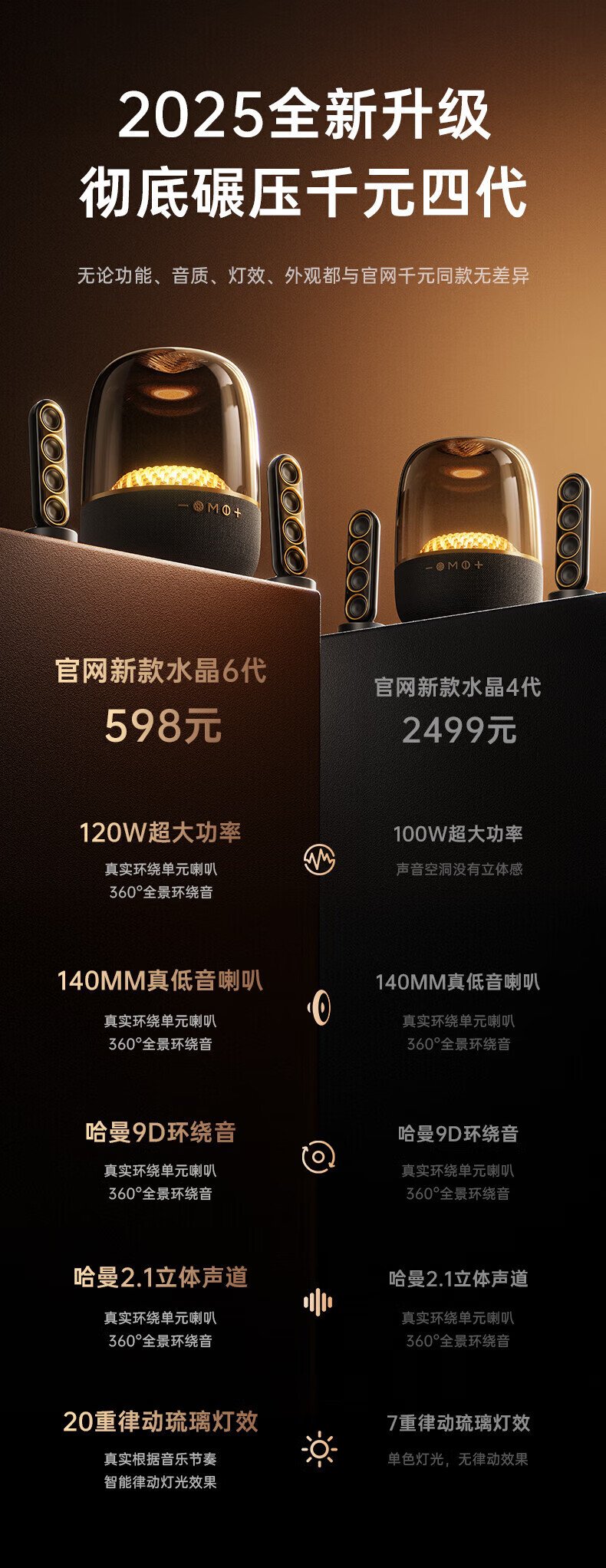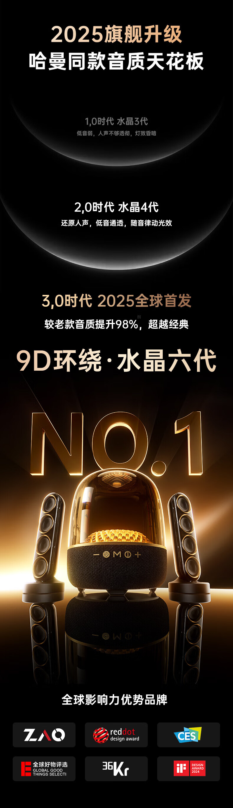 AEU【全网热销100W+丨2025新款水晶6代】大哈曼蓝牙音响水晶5代琉璃4代音箱华强北家用低音炮桌面台式 【黑金琉璃|新款6代】Pro顶配版 律动灯效+支持试听+全国联保