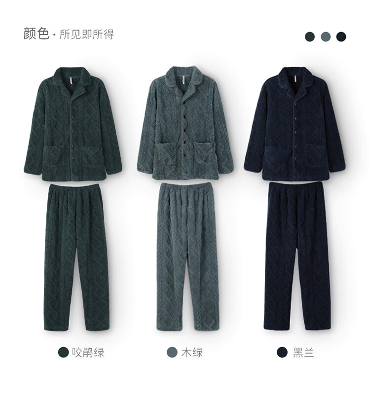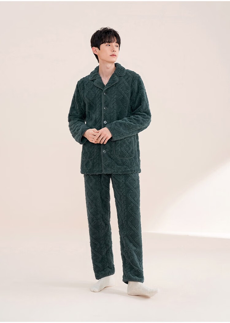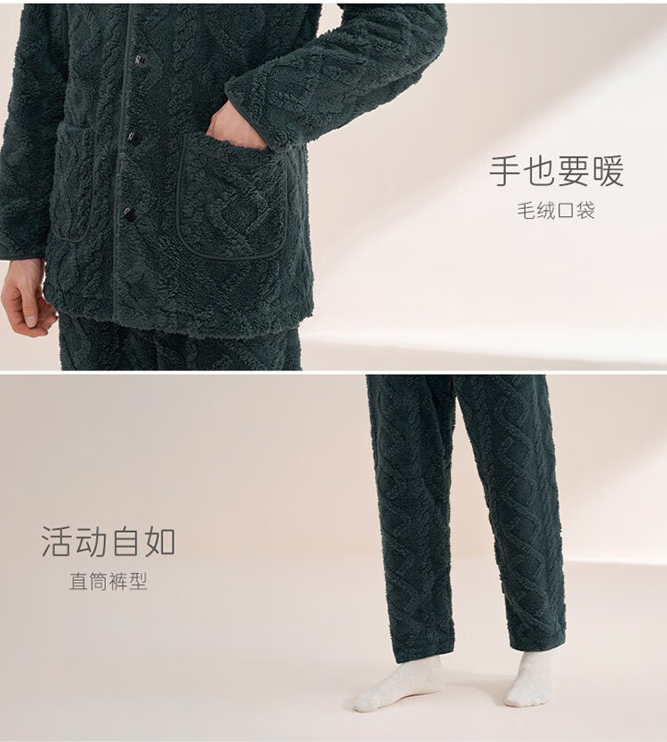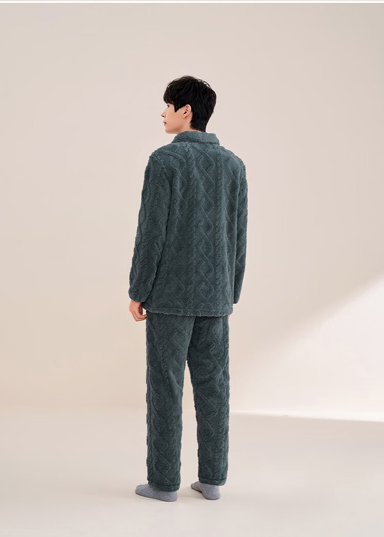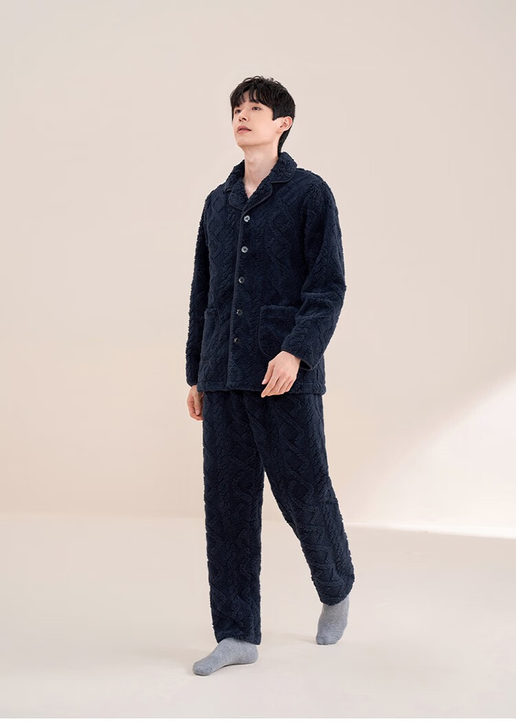 安之伴睡衣男长袖秋冬季可外穿舒适宽松版休闲青年男士家居服套装 黑兰 M