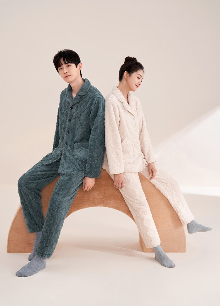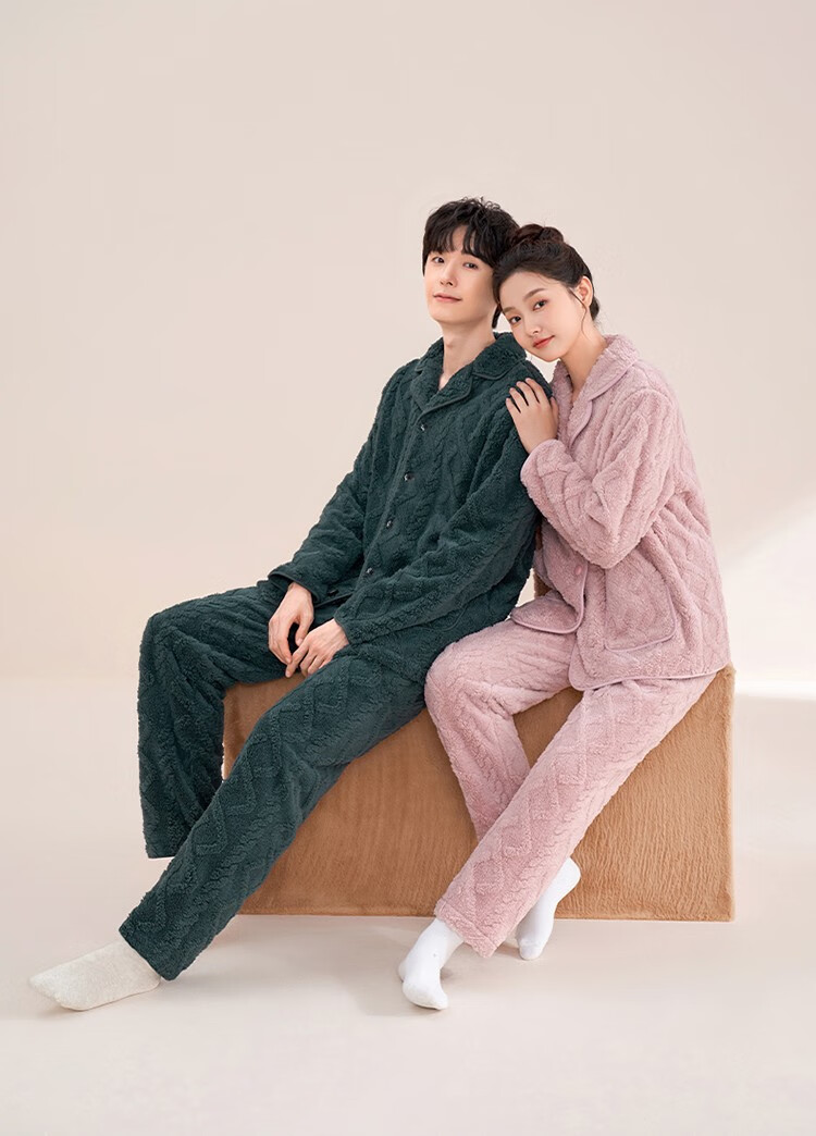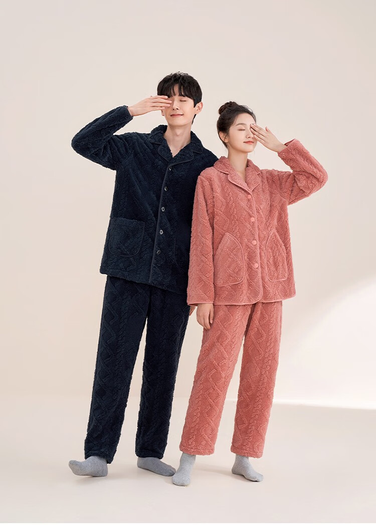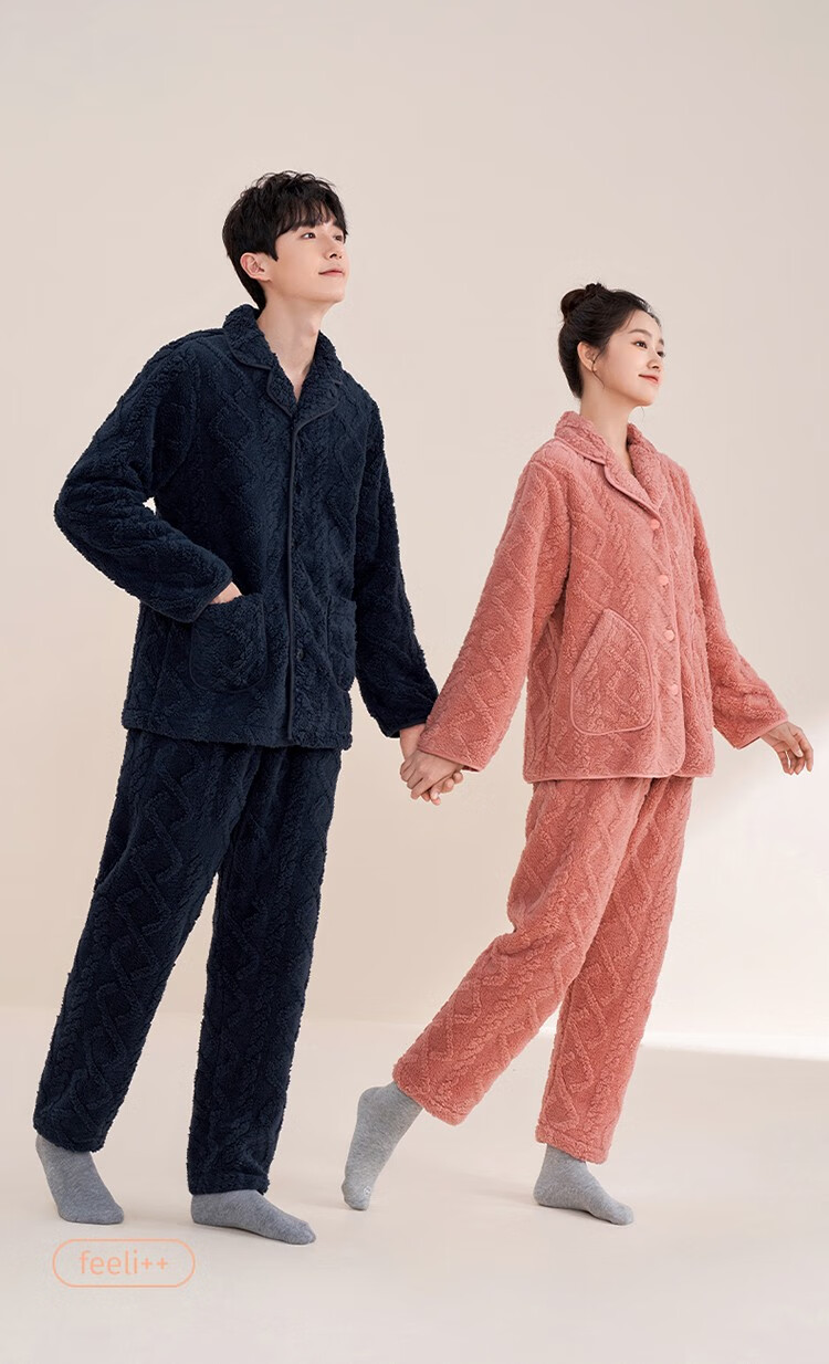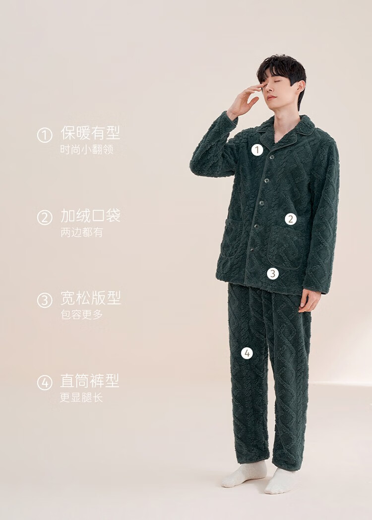安之伴睡衣男长袖秋冬季可外穿舒适宽松版休闲青年男士家居服套装 黑兰 M