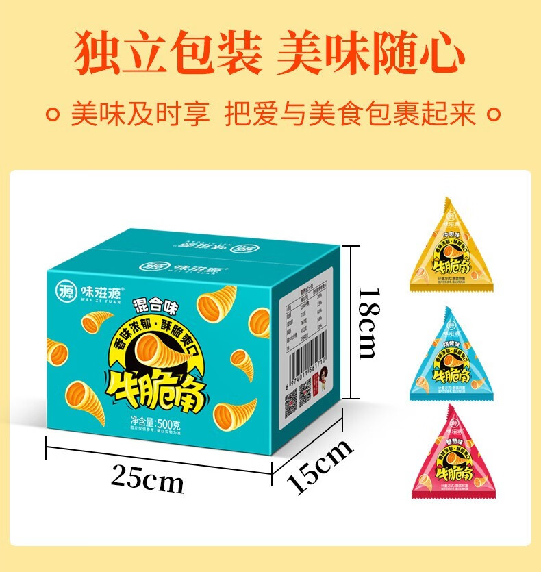味滋源 牛脆角 混合味 虎牙脆妙脆角小零食 休闲零食 肉松饼500g/箱 1件